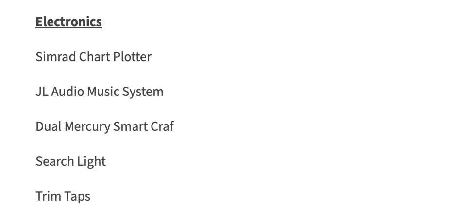 N.B. Vous pouvez acquérir ce bateau comme tout autre yacht sans avoir à payer de taxe Américaine ni Canadienne si le bateau navigue toujours hors du Canada avec une immatriculation Canadienne (Le bateau doit appartenir à un Canadien)