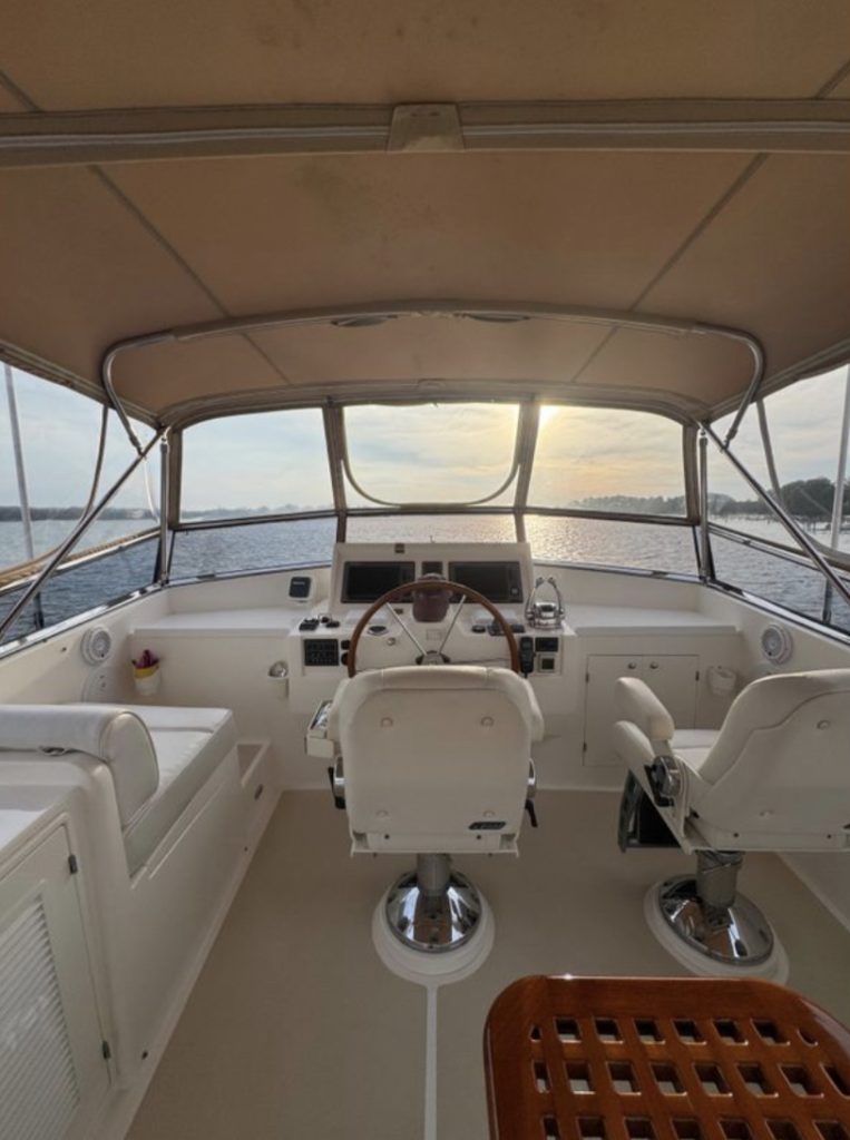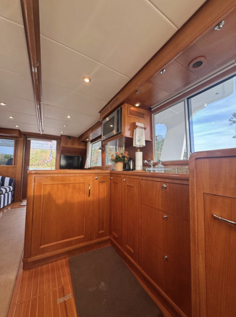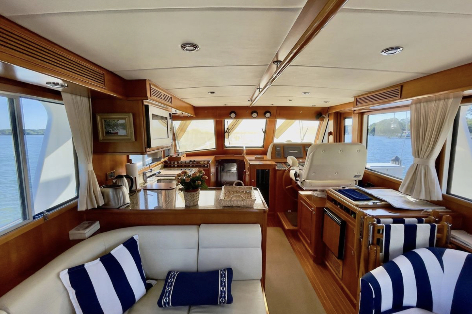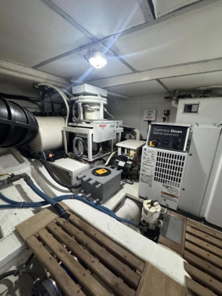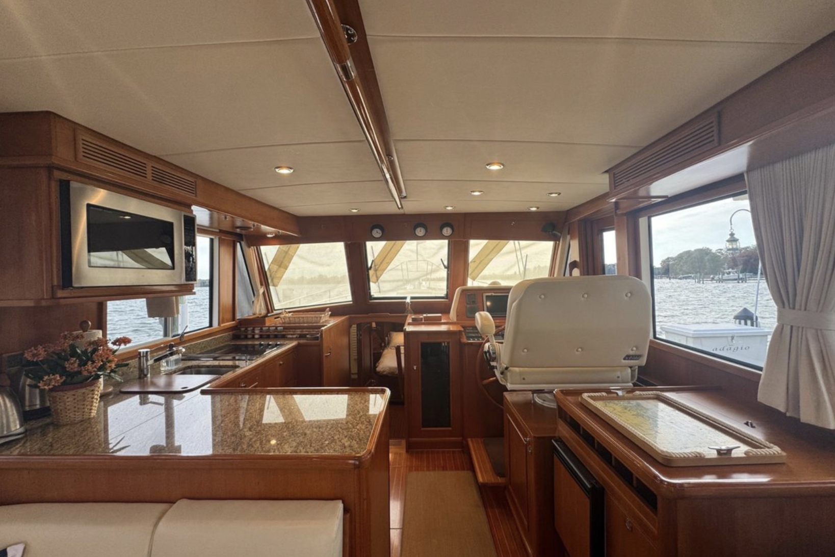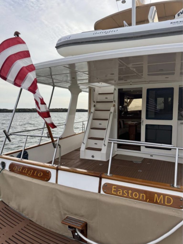 ADAGIO is factory equipped with all those special little options that make her a much finer yacht than a standard GB47EU. She is powered by Twin Cummins 550hp Straight Shafts and is fully equipped with Bow & Stern Thruster, Inverter, Flybridge Enclosure, and much more!