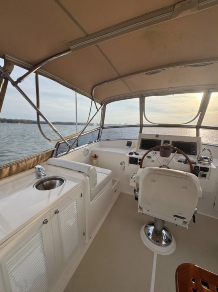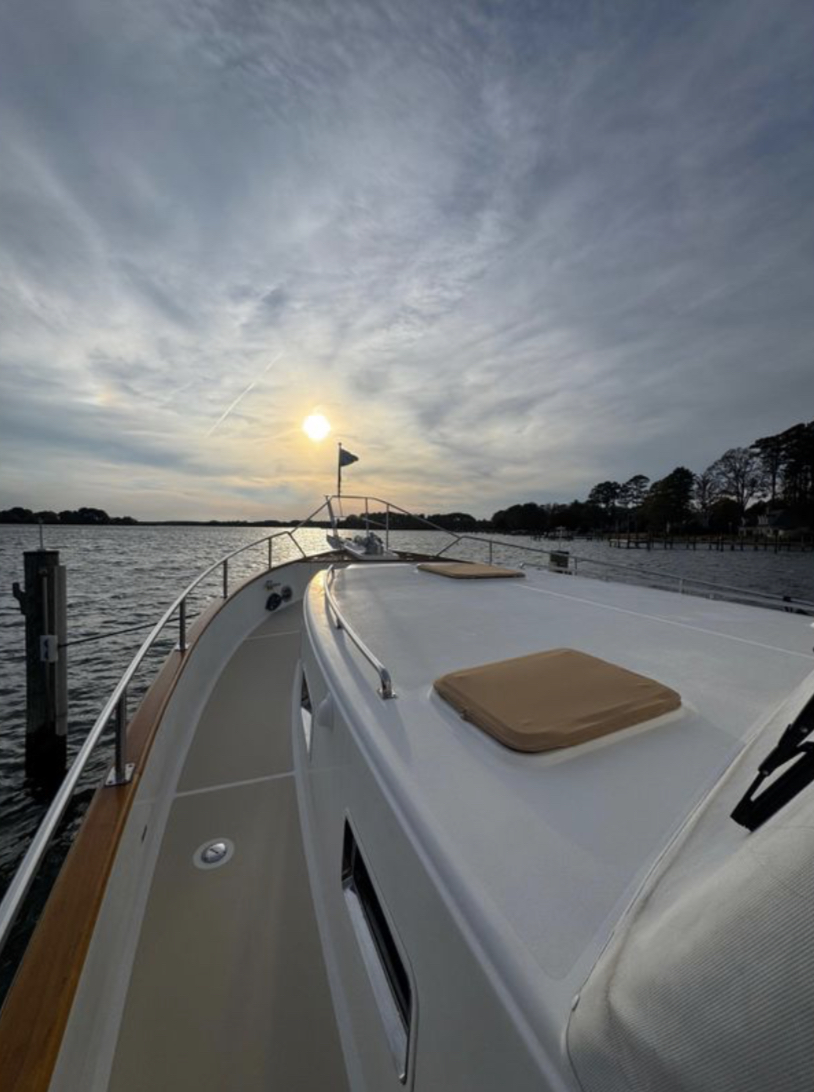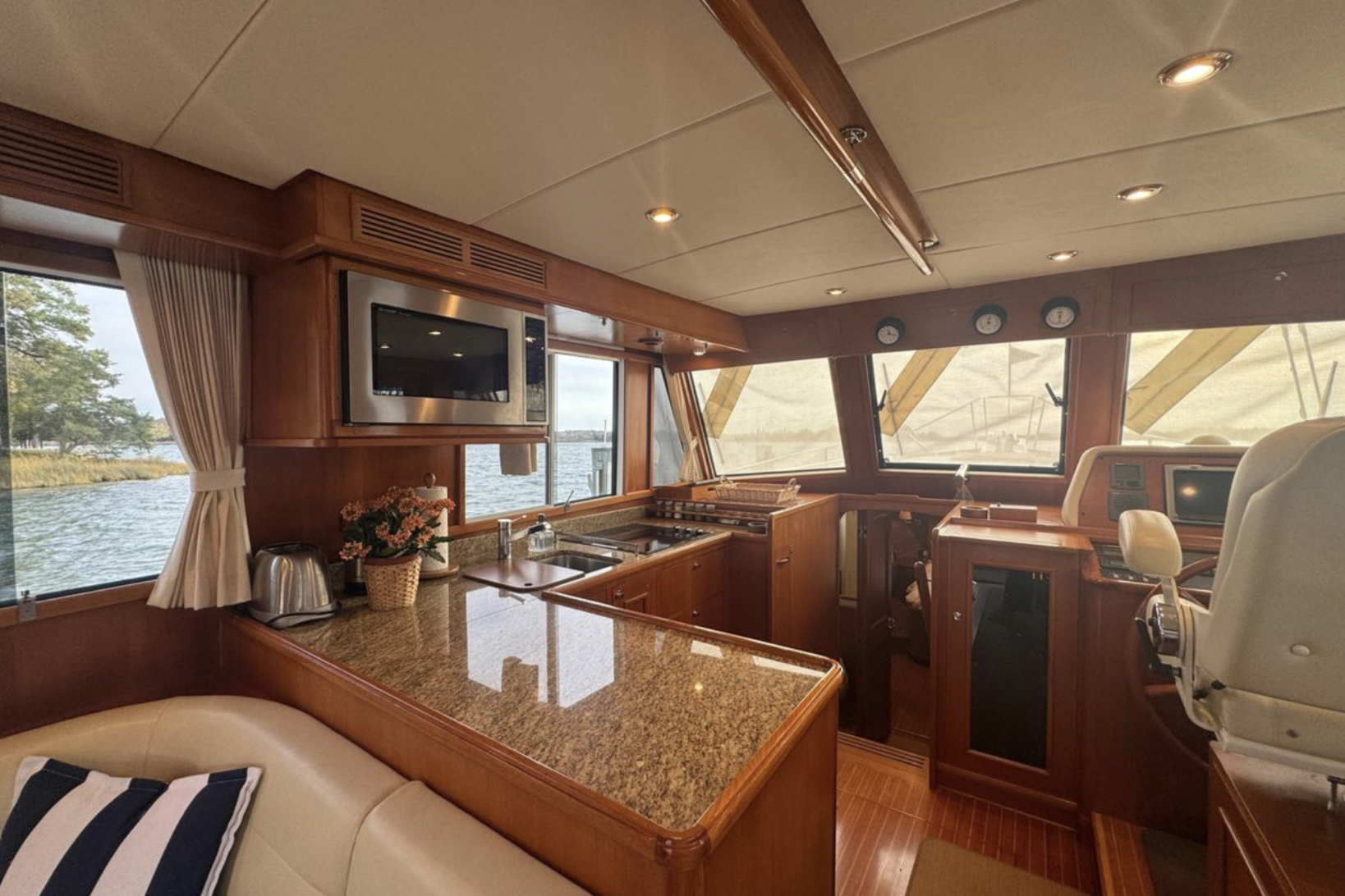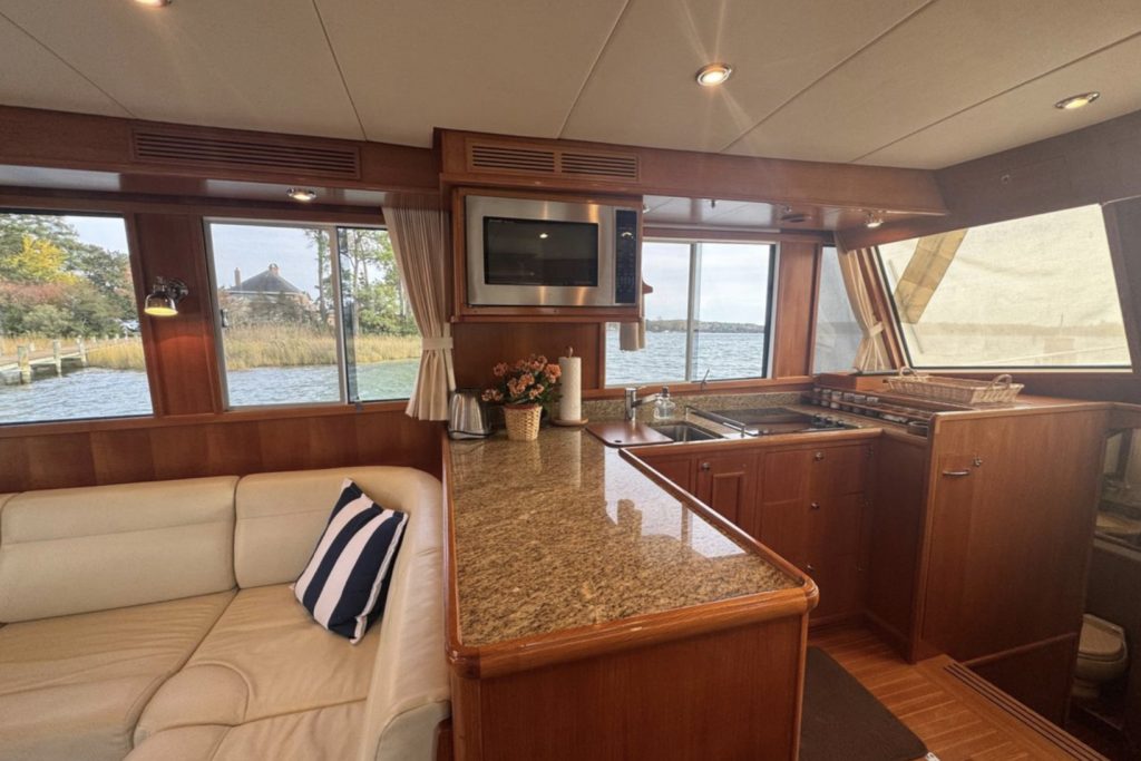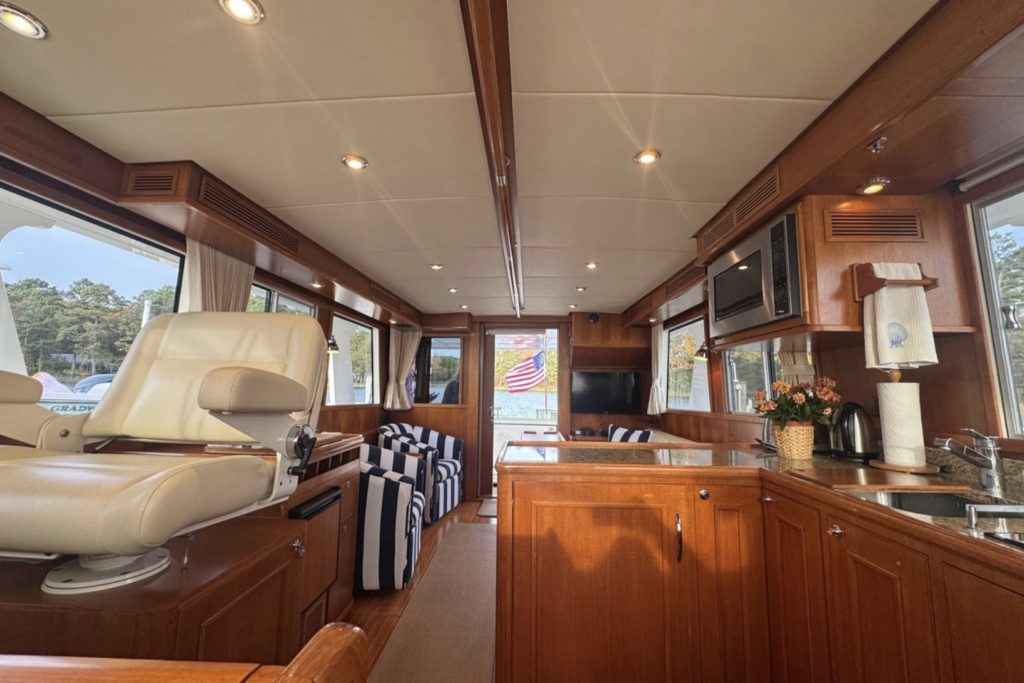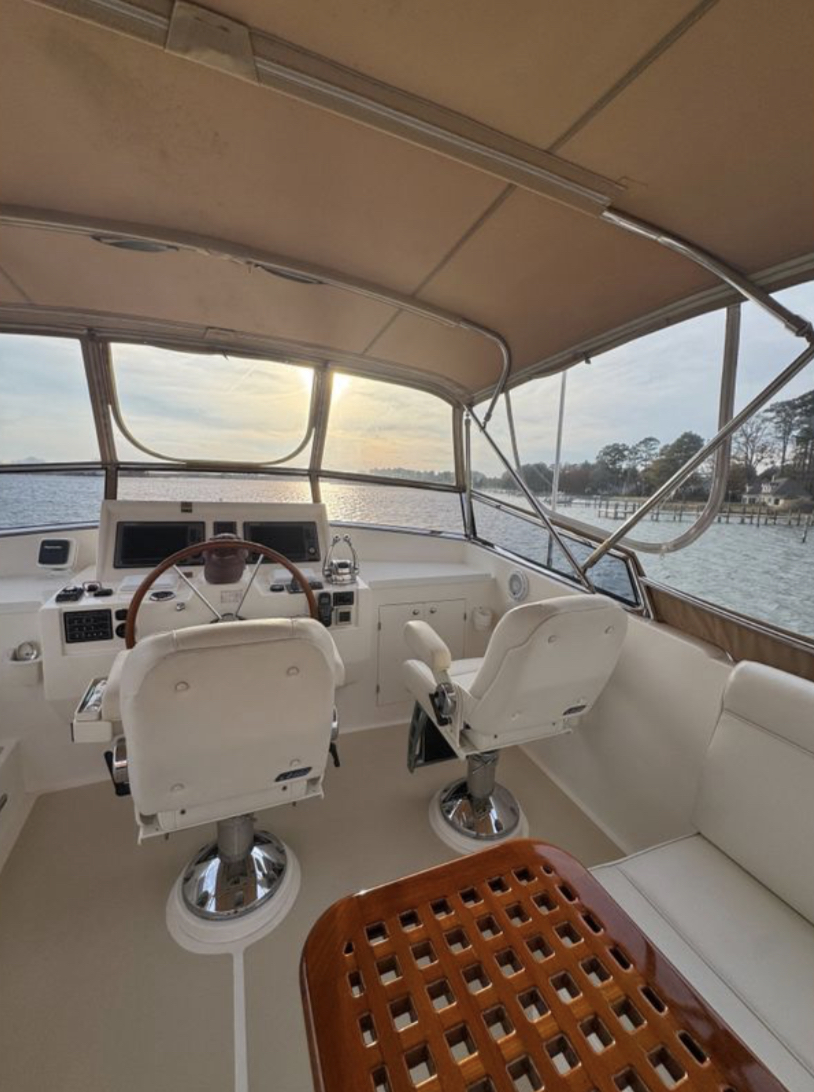 ADAGIO is factory equipped with all those special little options that make her a much finer yacht than a standard GB47EU. She is powered by Twin Cummins 550hp Straight Shafts and is fully equipped with Bow & Stern Thruster, Inverter, Flybridge Enclosure, and much more!