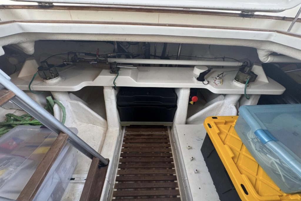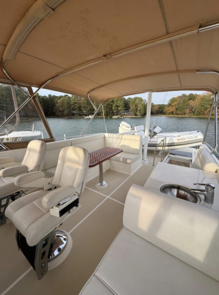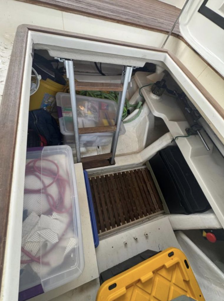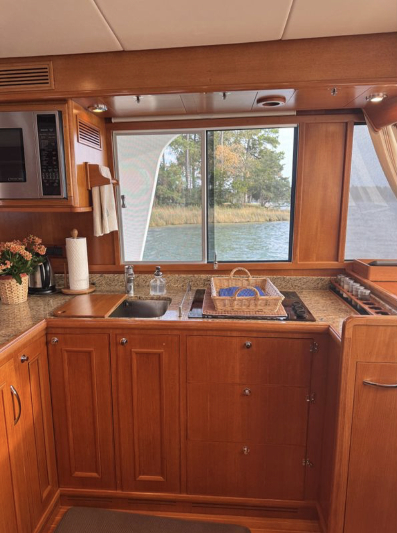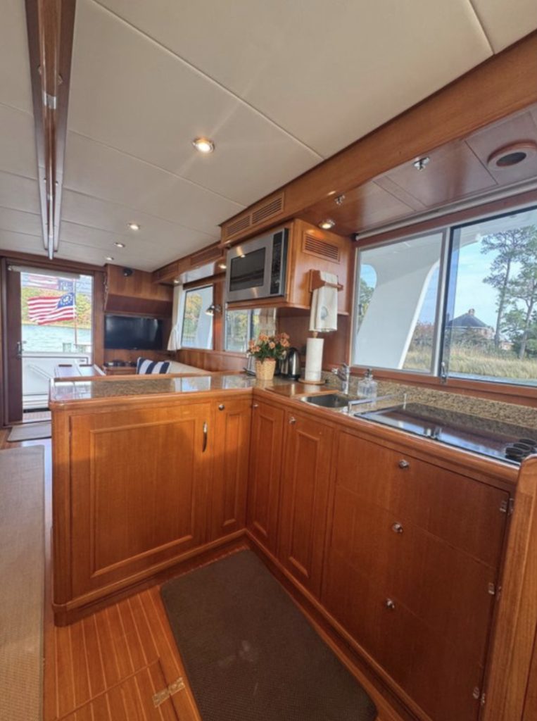 This provides extensive entertaining space and plenty of room for a large table and at least 6 chairs. It also expands the lazarette space for more storage and the galley is much larger than earlier models.