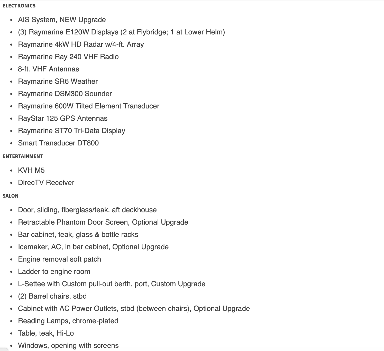 N.B. Vous pouvez acquérir ce bateau comme tout autre yacht sans avoir à payer de taxe Américaine ni Canadienne si le bateau navigue toujours hors du Canada avec une immatriculation Canadienne (Le bateau doit appartenir à un Canadien)