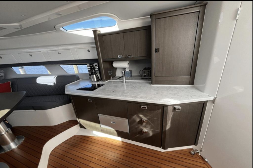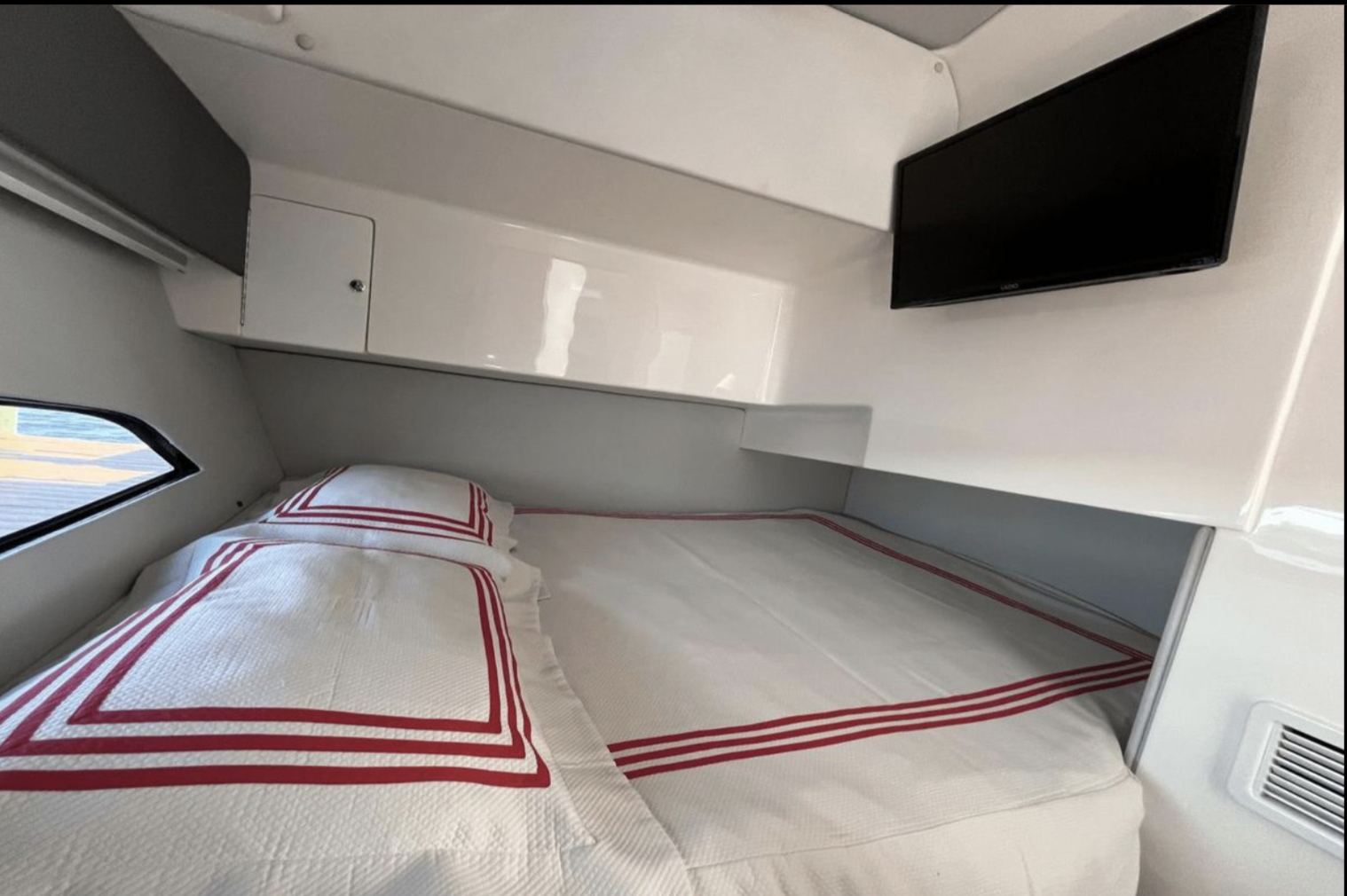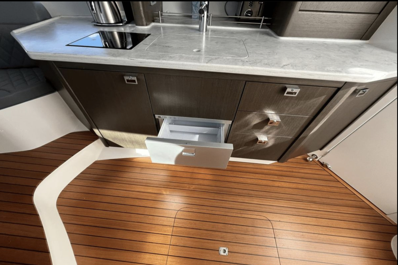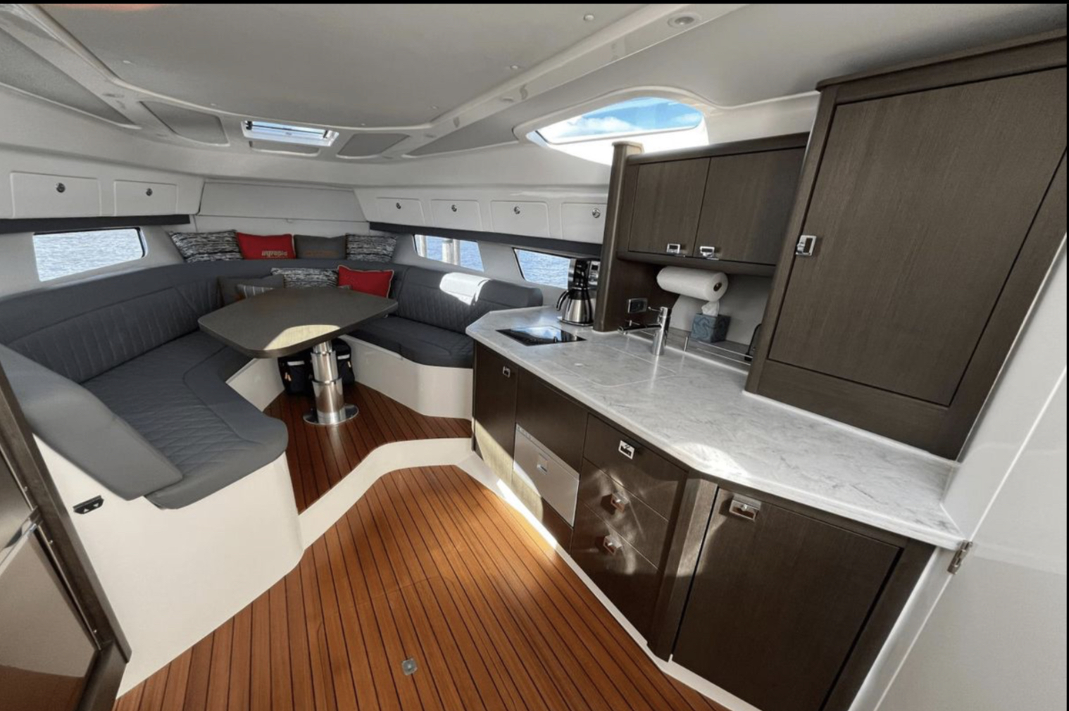 With a cabin twice as large as an inboard of similar size, this sleek, big-water day boat is the complete package – on a more compact and fuel-efficient platform.
