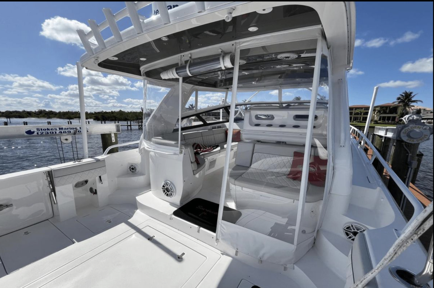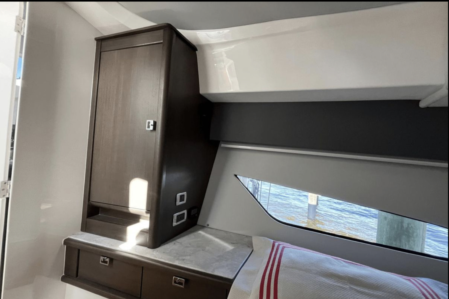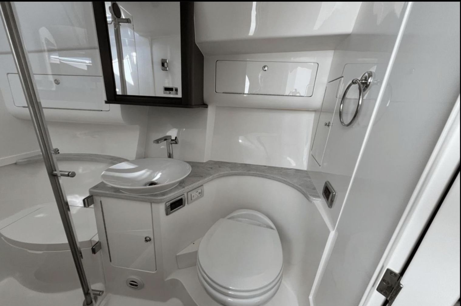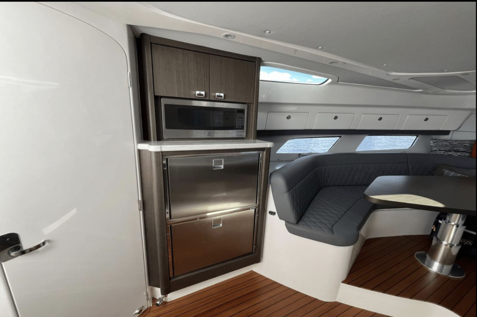 With a cabin twice as large as an inboard of similar size, this sleek, big-water day boat is the complete package – on a more compact and fuel-efficient platform.