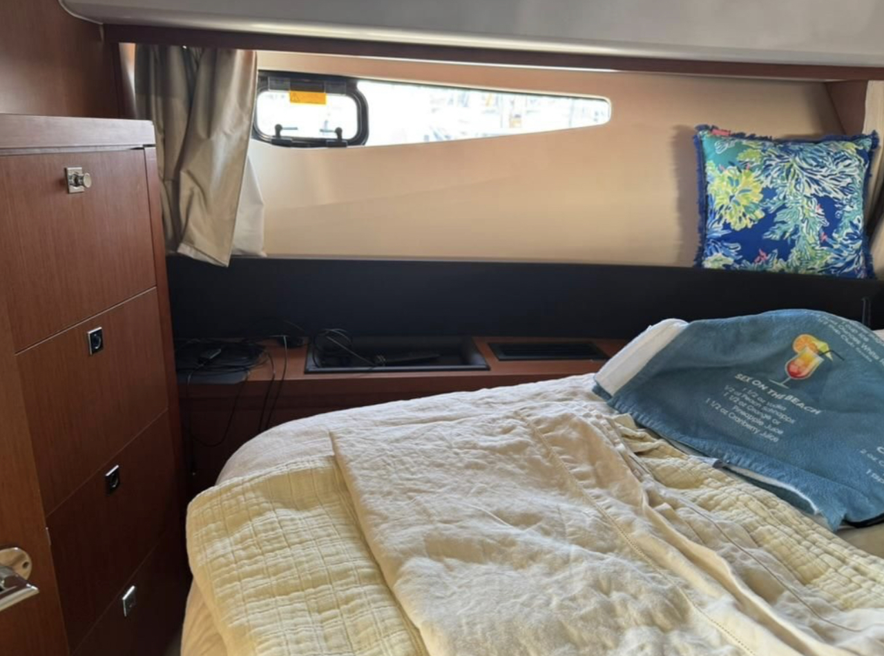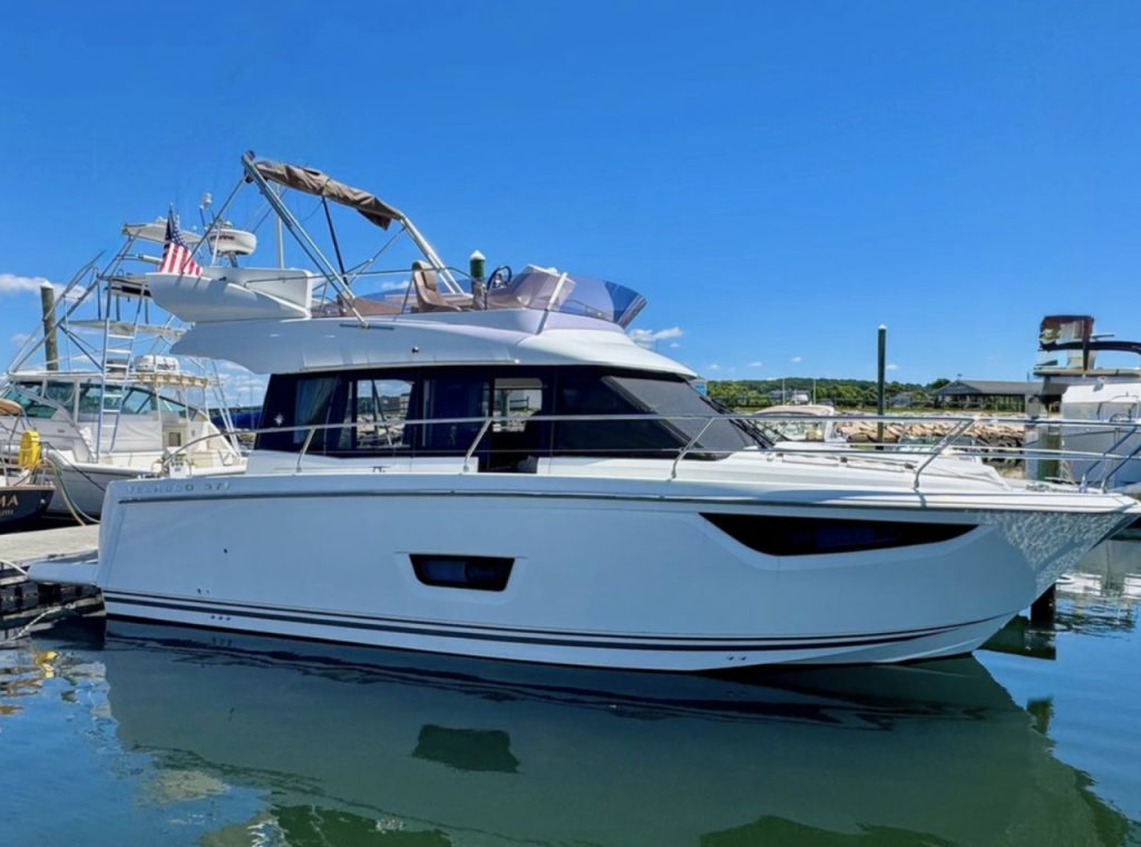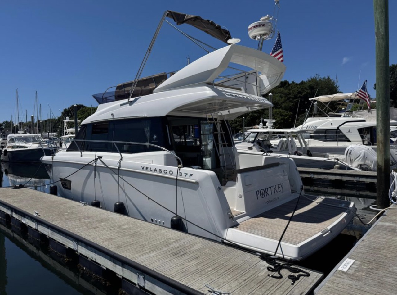 The 2016 Jeanneau Velasco 37F is a stylish, well‑appointed flybridge cruiser designed for relaxed family cruising without compromise. Measuring about 32’8” overall, with a 12′7″ beam and a sleek GRP hull, she balances generous interior space with seaworthy handling .