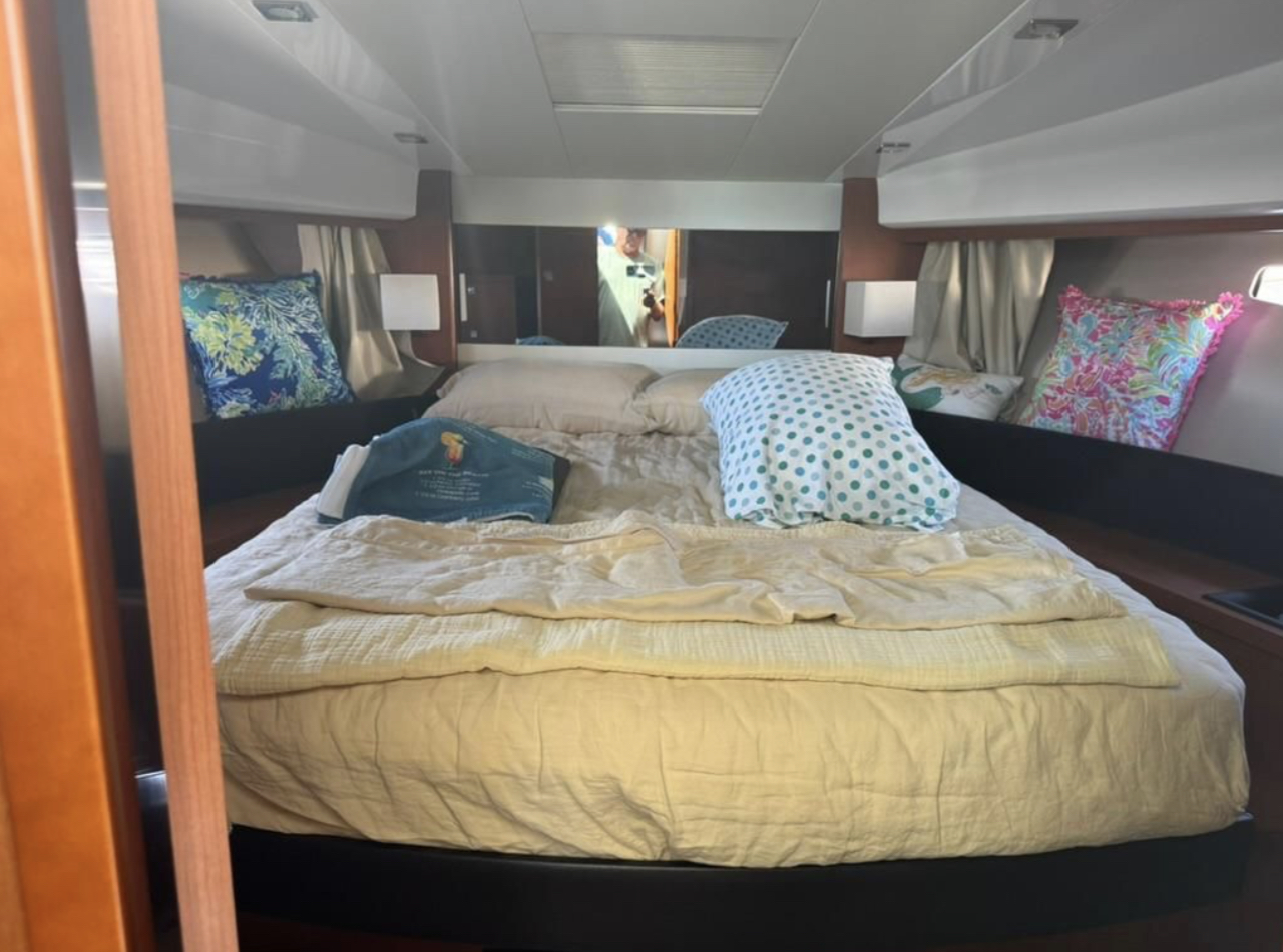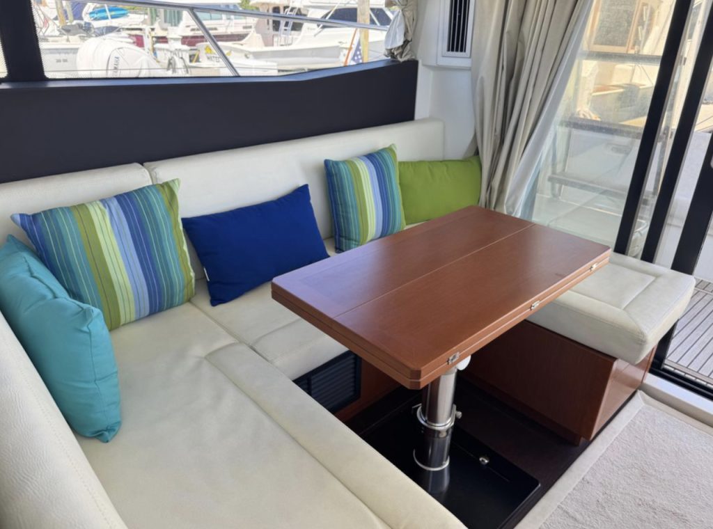 Handling is straightforward and confident thanks to bow and stern thrusters, accessible sidedeck entry from helm, and sea‑friendly hull form. Predictable steering and soft ride make the 37F a reliable, safe platform for family voyages .