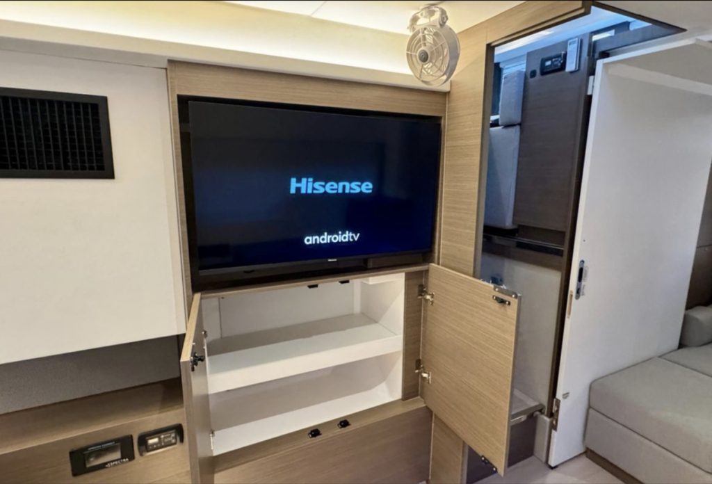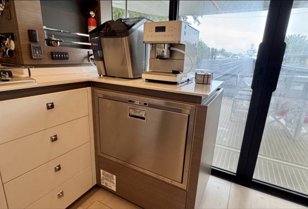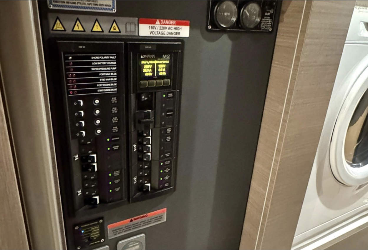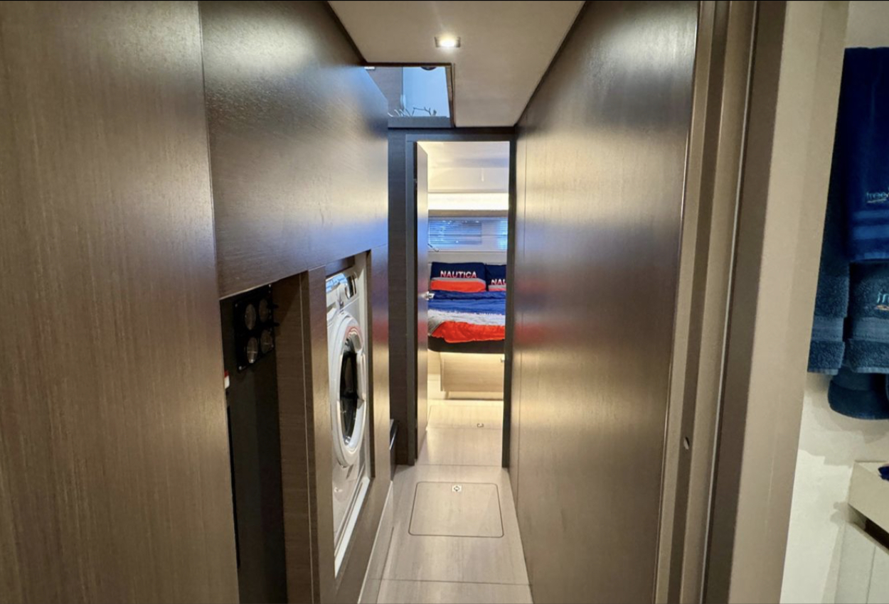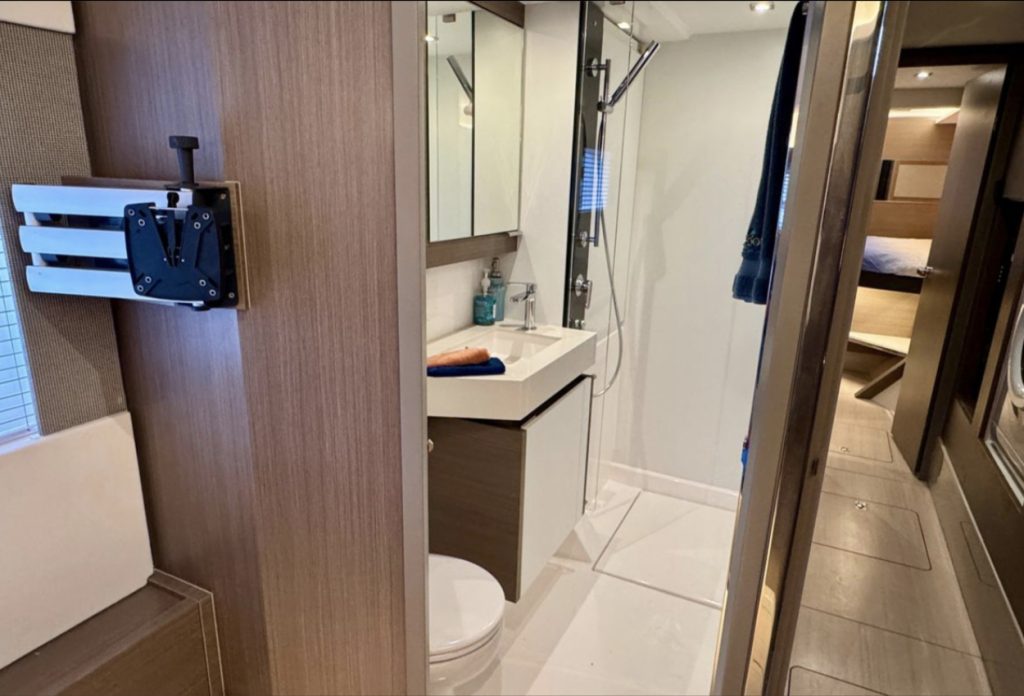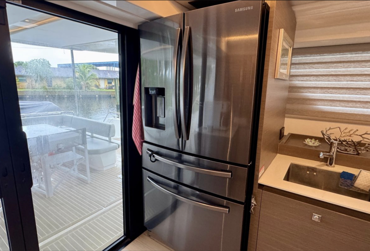 Equipped from the factory for serious cruising, Freedom features upgraded 12kW shore power, a convenient washer/dryer, a Spectra Newport watermaker, powerful Frigomar 70,000 BTU Air Conditioning, a reliable Northern Lights generator, and a comprehensive suite of Raymarine Electronics at both helm stations.