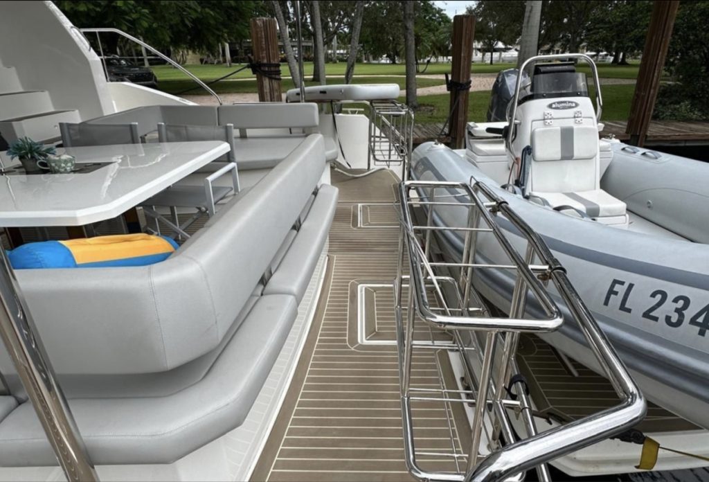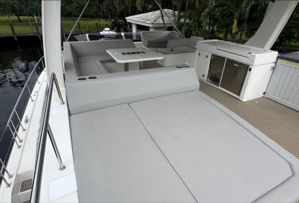 Designed for unforgettable experiences, Freedom has explored the waters of the Bahamas and South Florida, hosting many cherished moments with family. Her spacious flybridge, complete with a full wet bar and grill, offers breathtaking 360-degree views—an ideal setting for impressing guests.