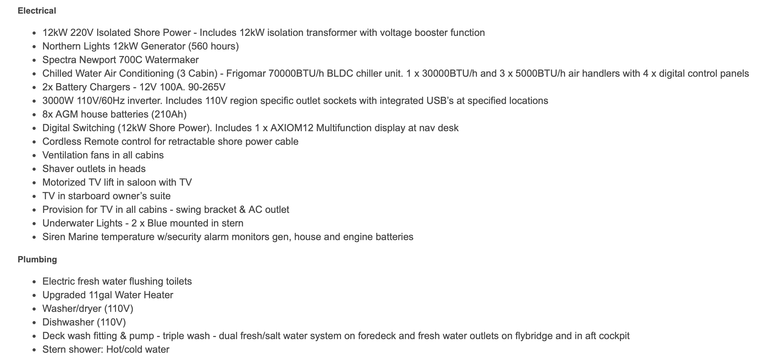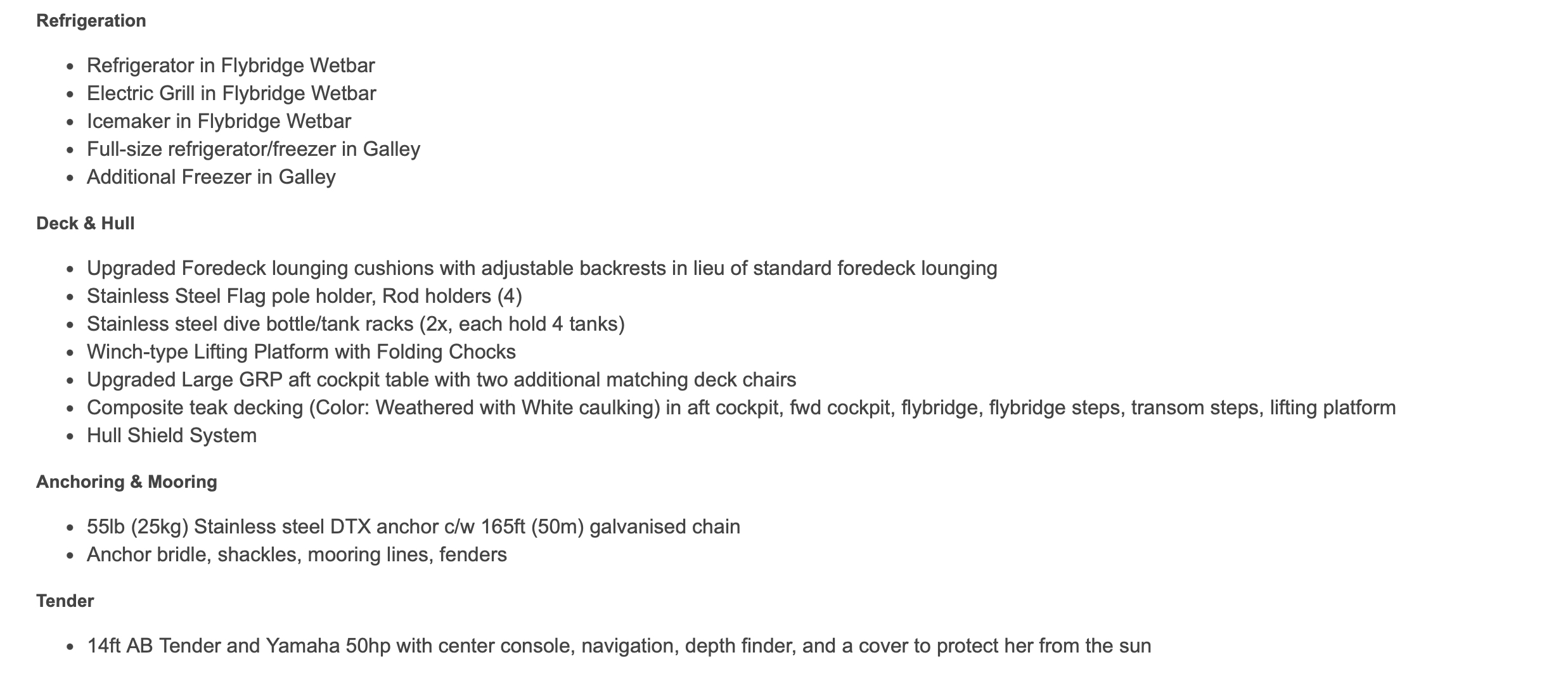 N.B. Vous pouvez acquérir ce bateau comme tout autre yacht sans avoir à payer de taxe Américaine ni Canadienne si le bateau navigue toujours hors du Canada avec une immatriculation Canadienne (Le bateau doit appartenir à un Canadien)