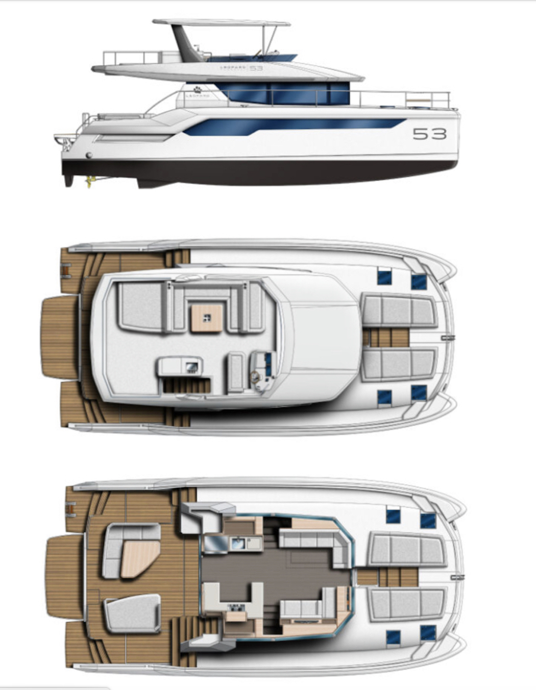 N.B. Voir l’onglet PIECES JOINTES pour tous les détails de ce catamaran Leopard 53