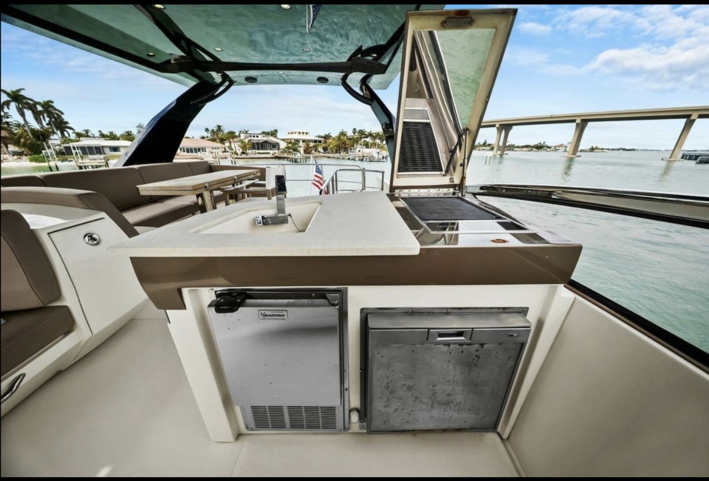 – Wetbar complet sur le flybridge (Grill + réfrigérateur et machine à glaçons)