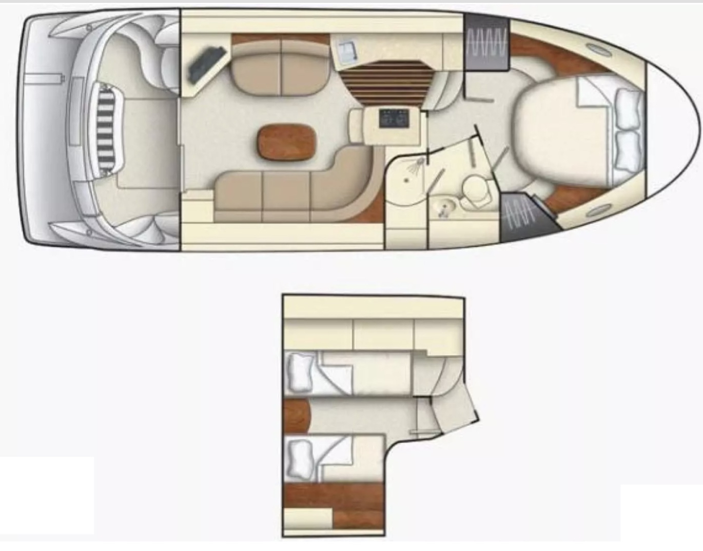 This cruisability incorporates accommodations for four in two spacious staterooms, a full-service galley with all the amenities and an airy salon with opening windows allowing panoramic views. The 341 from Meridian redefines just how much cruising comfort you can design into a compact sedan.