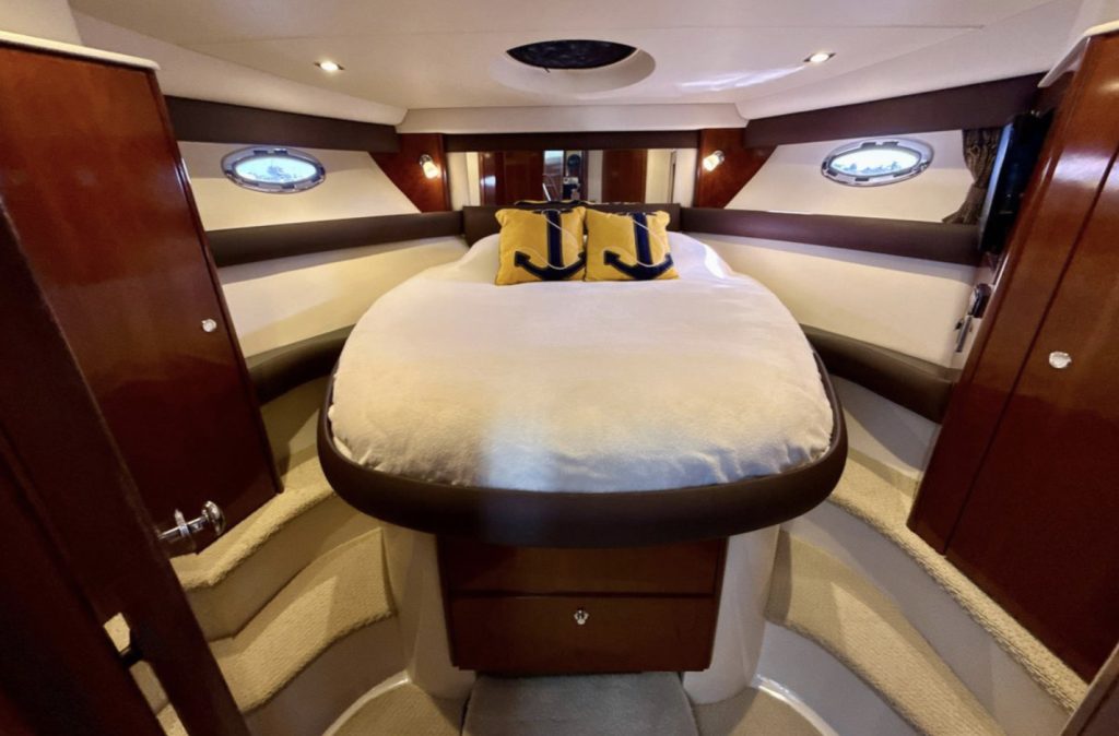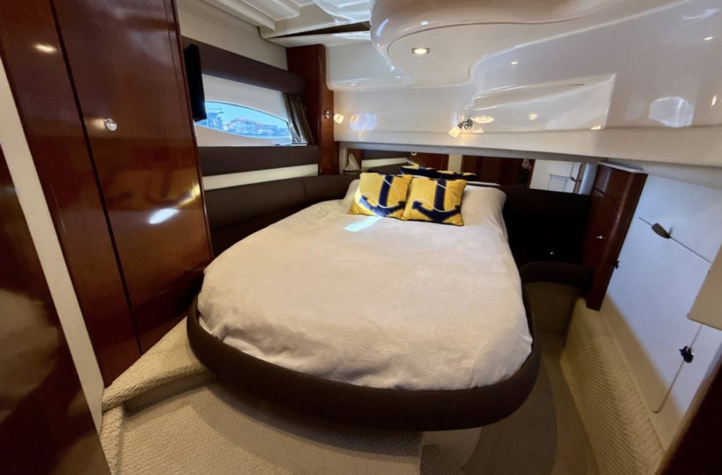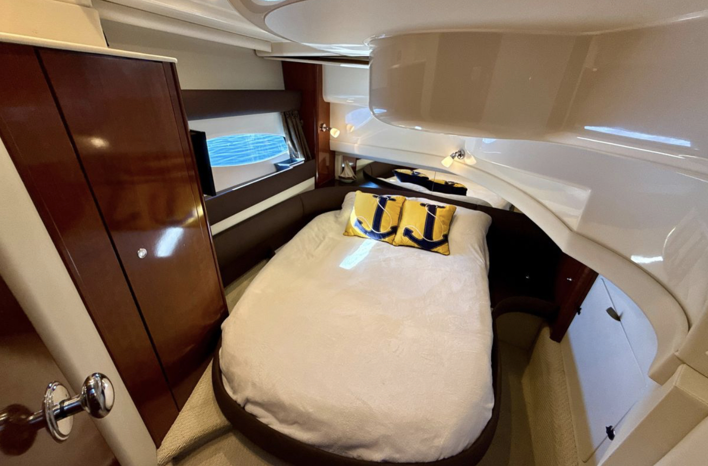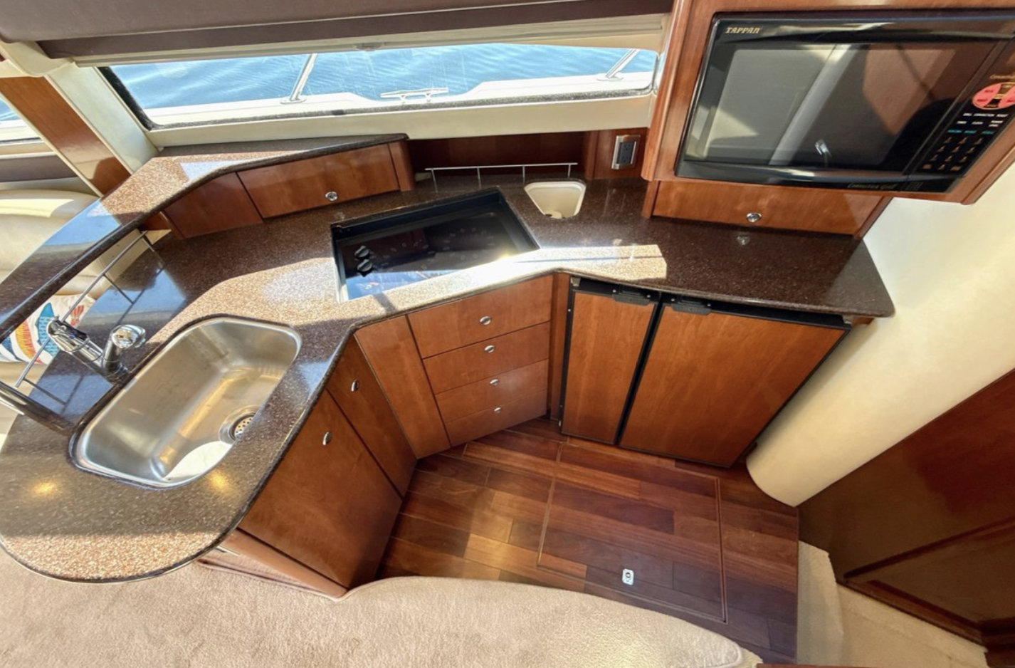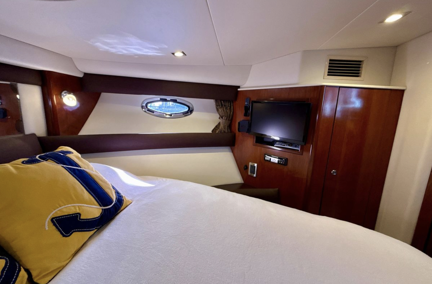 This 2009 Meridian 391 is loaded with premium features and designed for effortless, comfortable cruising. Powered by twin Cummins 380HP diesels with an Onan 9kW generator, it offers reliable performance and smooth handling. Bow & stern thrusters with joystick controls make docking simple, while a Seakeeper provides exceptional stability underway and at anchor.