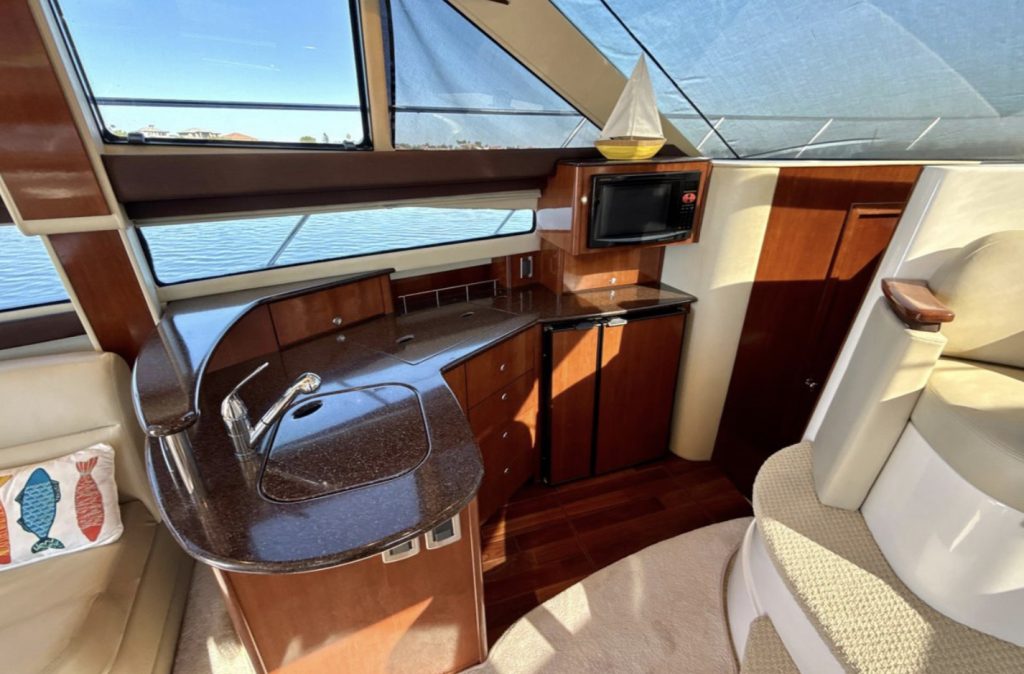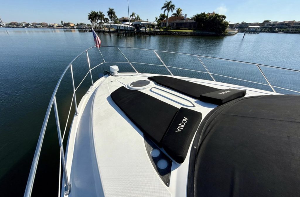 Perfect for extended trips, this yacht includes a water maker and inside, the 391 offers a bright, open salon and a comfortable two-stateroom layout ideal for family cruising or entertaining.