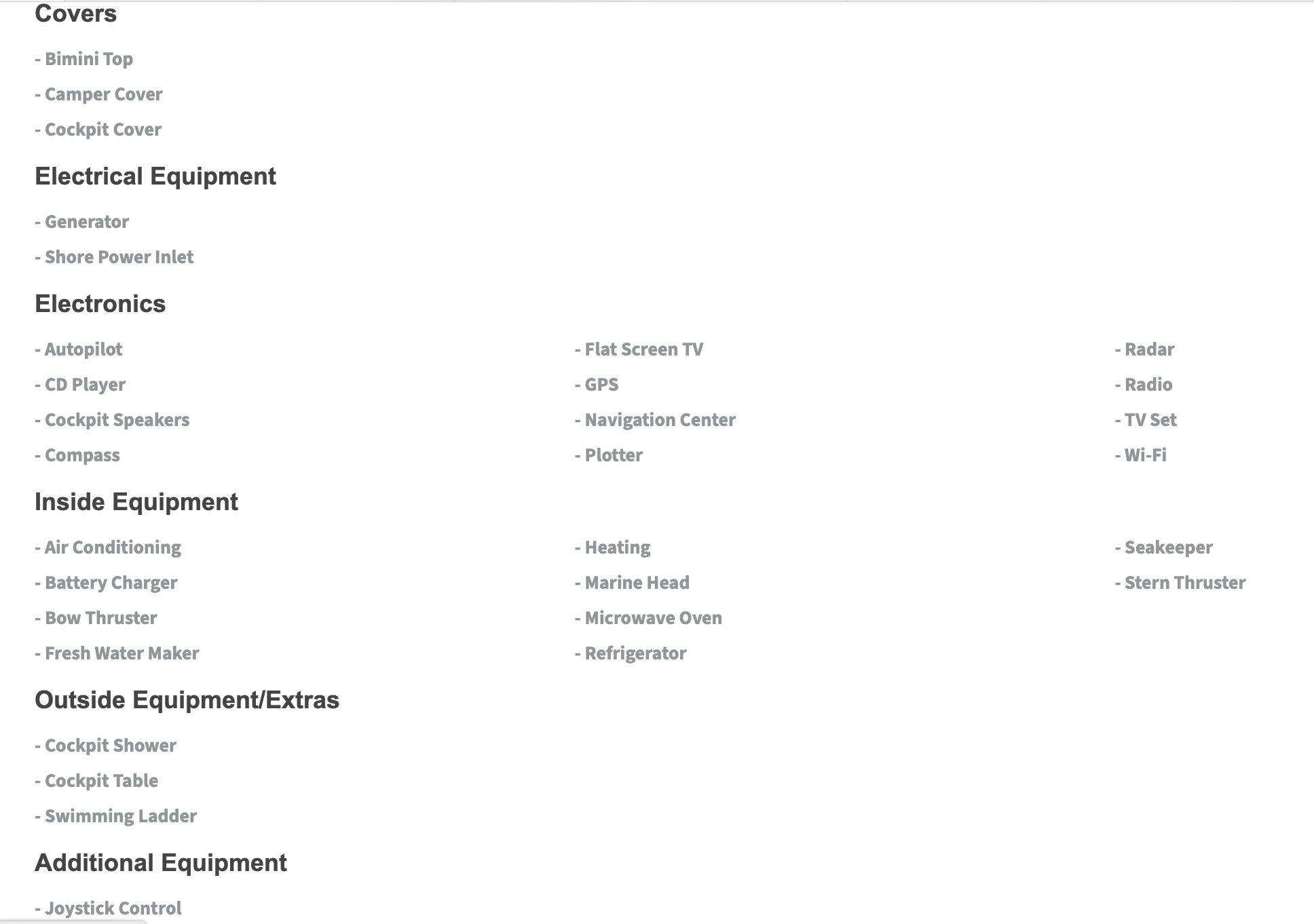 Le bateau qui est présenté sur cette page, l’est uniquement à titre d'information et n'est pas nécessairement toujours disponible à la vente et/ou à la location. Ce bateau est peut-être offert sous réserve, il faut vérifier sa disponibilité. Ce document ou cette annonce n'est pas contractuel. Les informations sur les bateaux affichées dans les résultats ci-dessus sont présentées en toute bonne foi et, bien qu'elles soient considérées comme correctes, elles ne sont pas garanties. Ita Yachts Canada et/ou ProprioBateau ne garantit pas et n'assume aucune responsabilité légale ou responsabilité pour l'exactitude, l'exhaustivité ou l'utilité des informations et/ou des images affichées, car elles peuvent ne pas être à jour ou encore êtres des images d'un bateau comparable. Toutes les informations sur les bateaux peuvent être modifiées sans préavis et sont sans garantie. Ce bateau est peut-être offert par un autre courtier ouvert au co-courtage (co-brokerage).