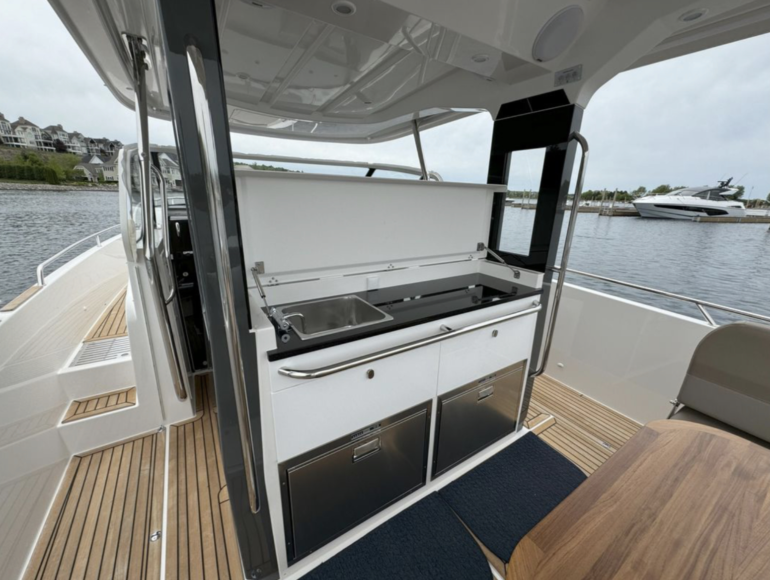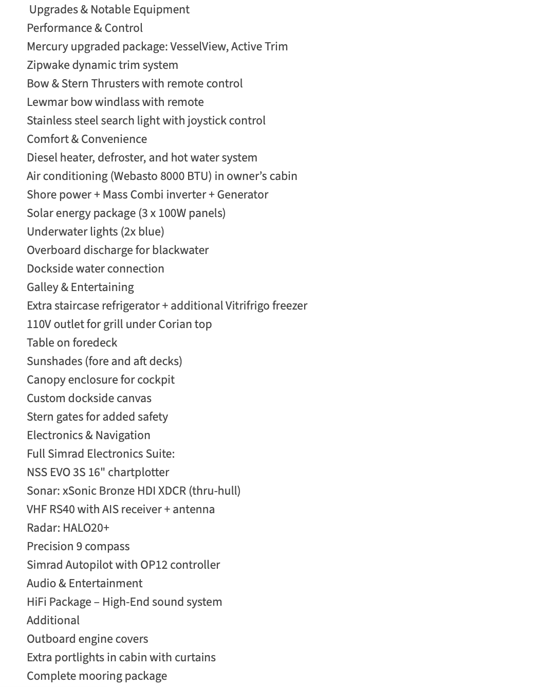 N.B. Vous pouvez acquérir ce bateau comme tout autre yacht sans avoir à payer de taxe Américaine ni Canadienne si le bateau navigue toujours hors du Canada avec une immatriculation Canadienne (Le bateau doit appartenir à un Canadien)