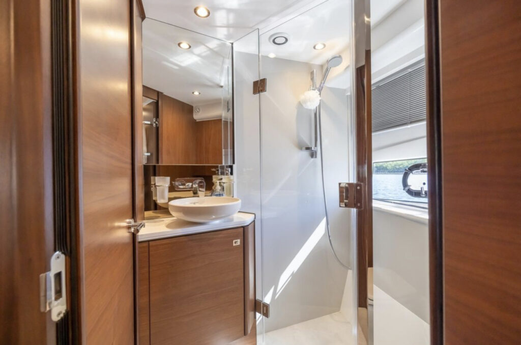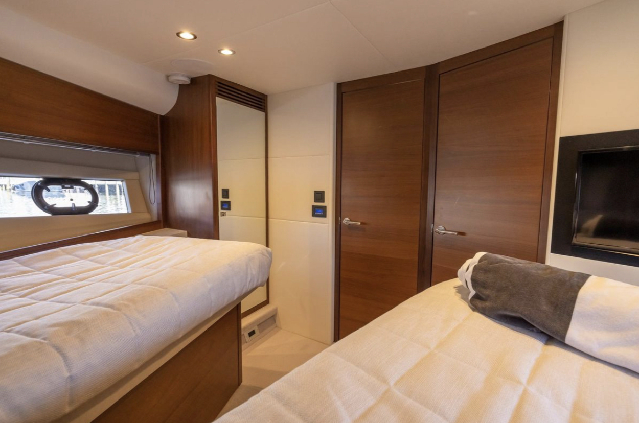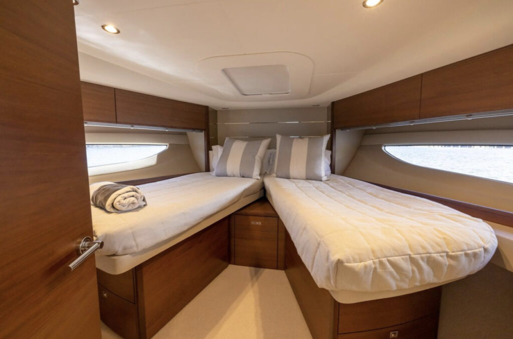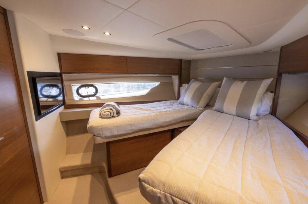 The 2020 Princess V50 is a sleek and luxurious yacht featuring a contemporary design and exceptional performance. It offers spacious accommodations with two en-suite cabins, a well-equipped galley, and an open-plan saloon perfect for entertaining.