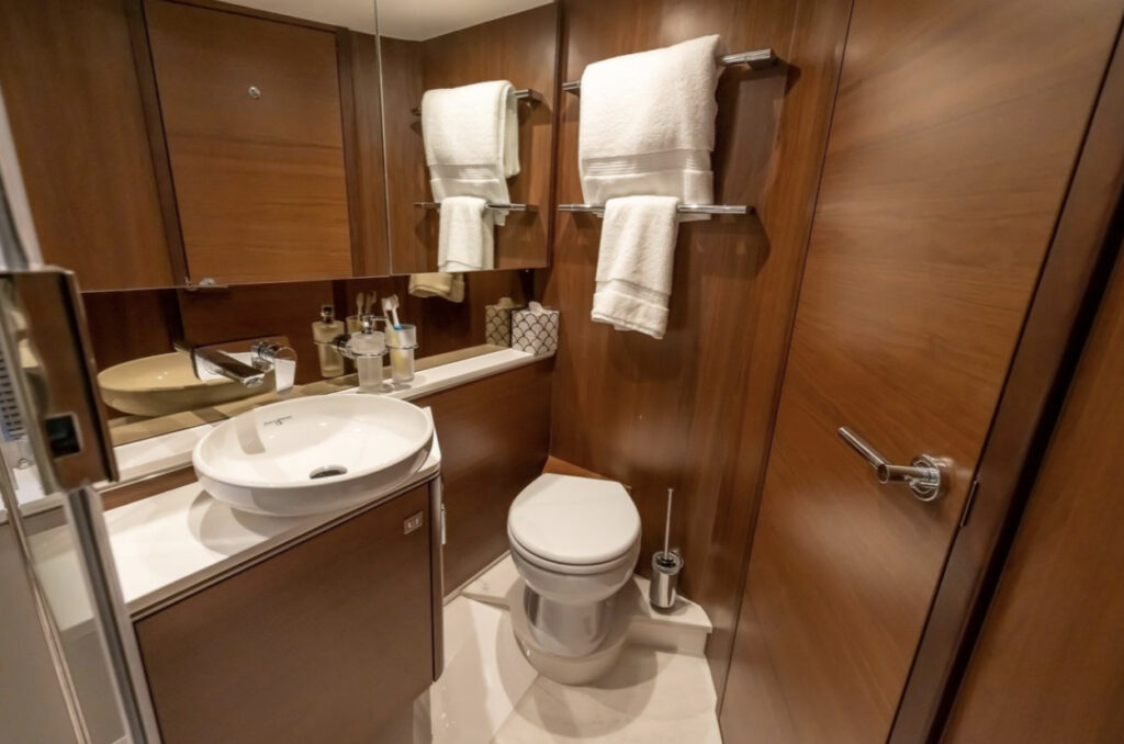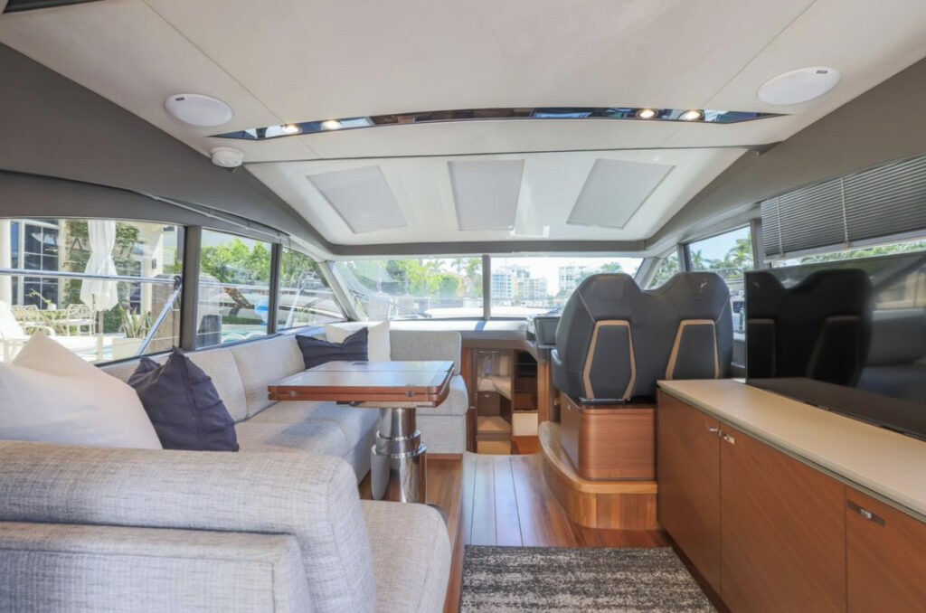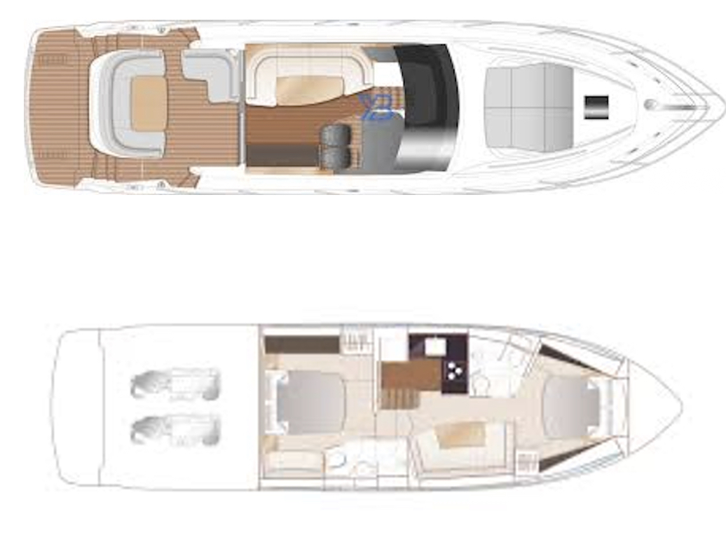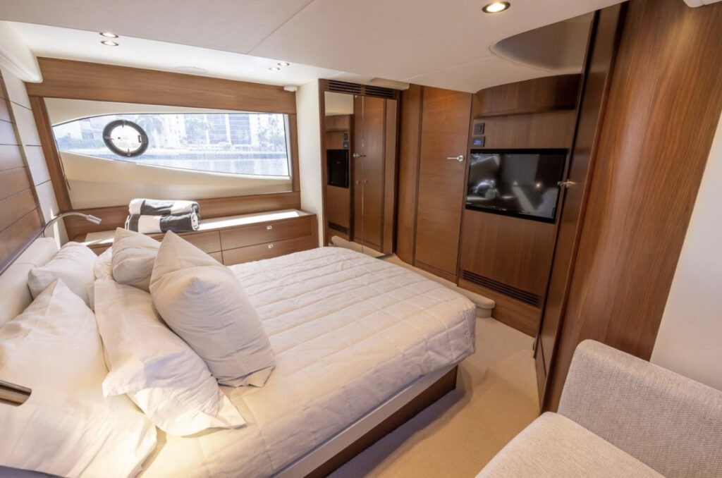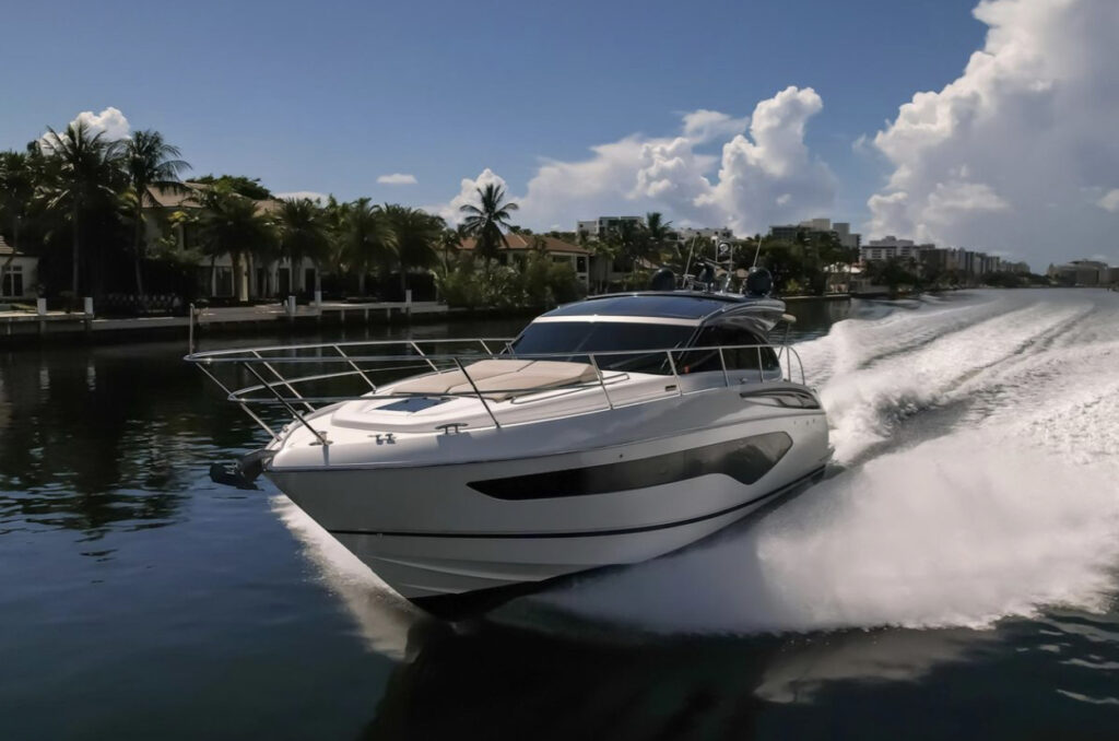 The 2020 Princess V50 is a sleek and luxurious yacht featuring a contemporary design and exceptional performance. It offers spacious accommodations with two en-suite cabins, a well-equipped galley, and an open-plan saloon perfect for entertaining.