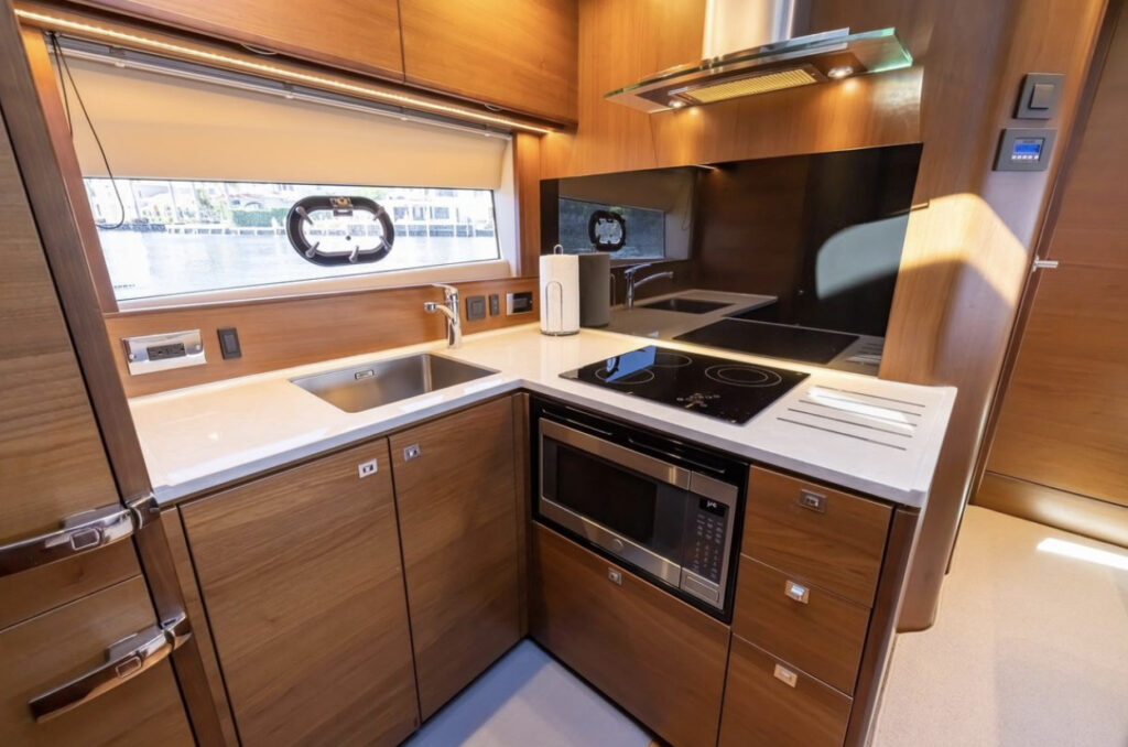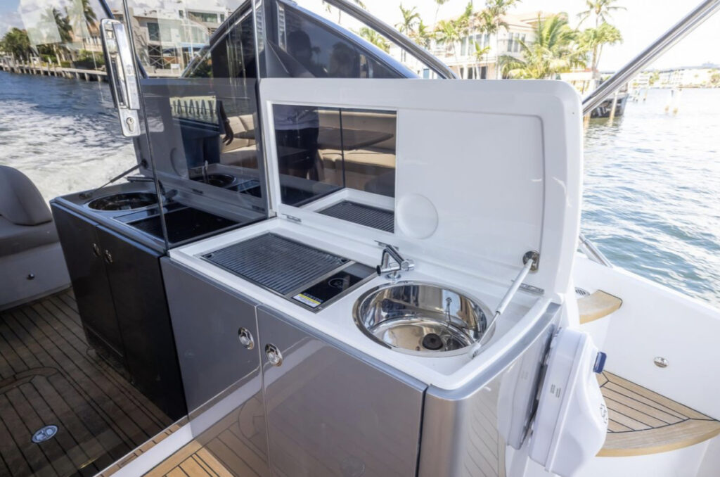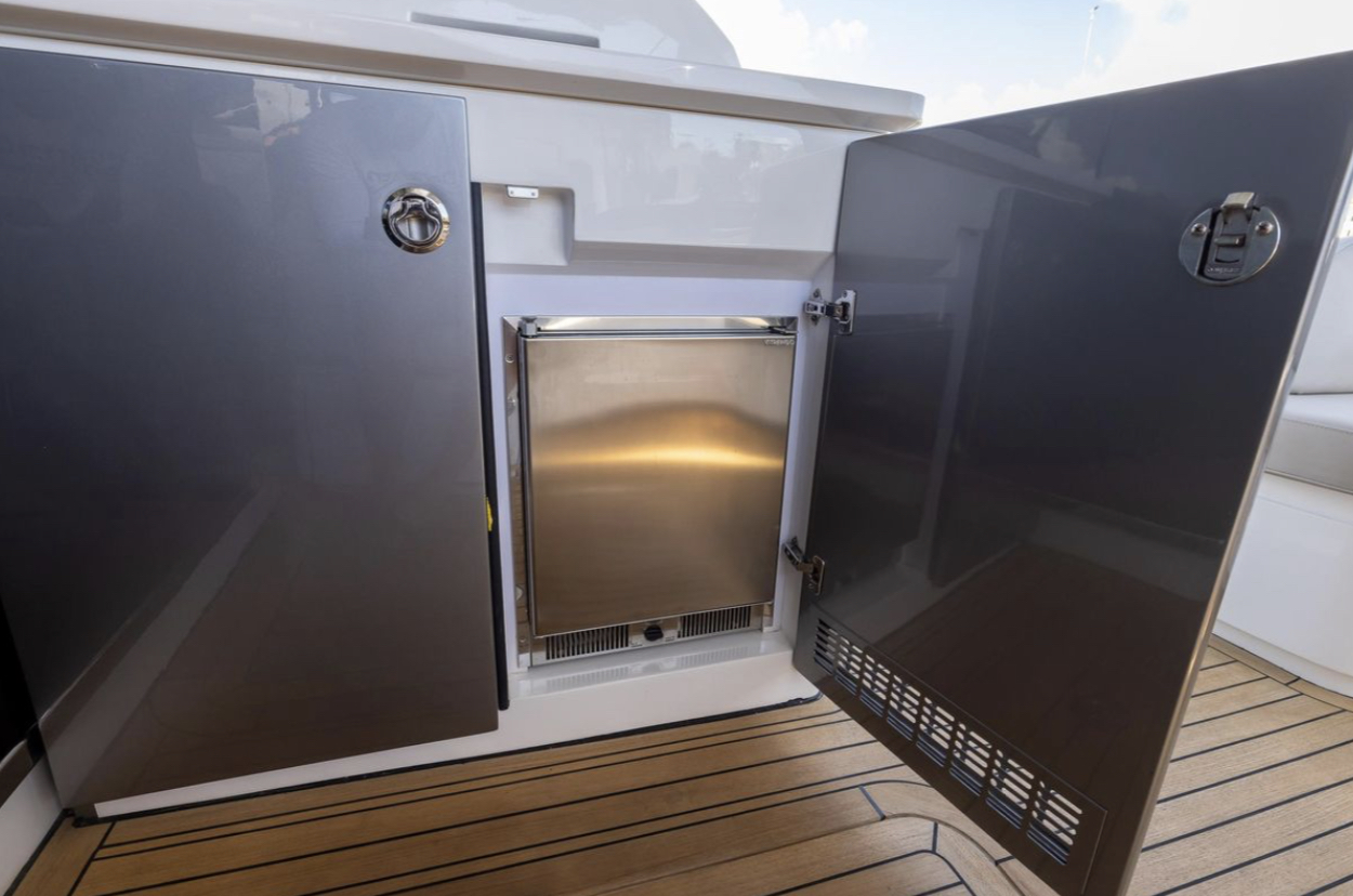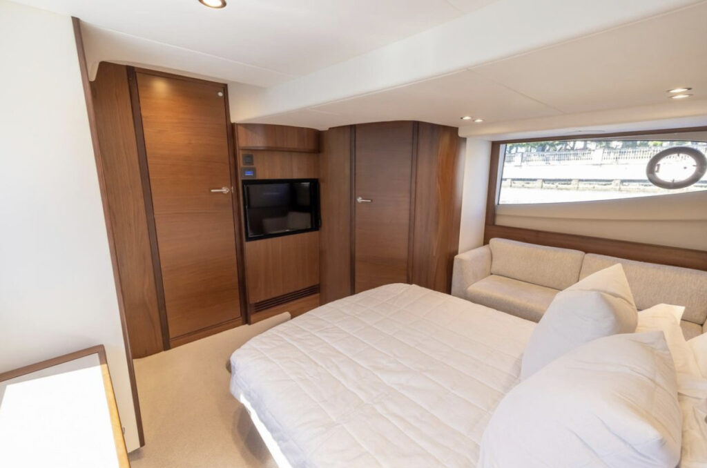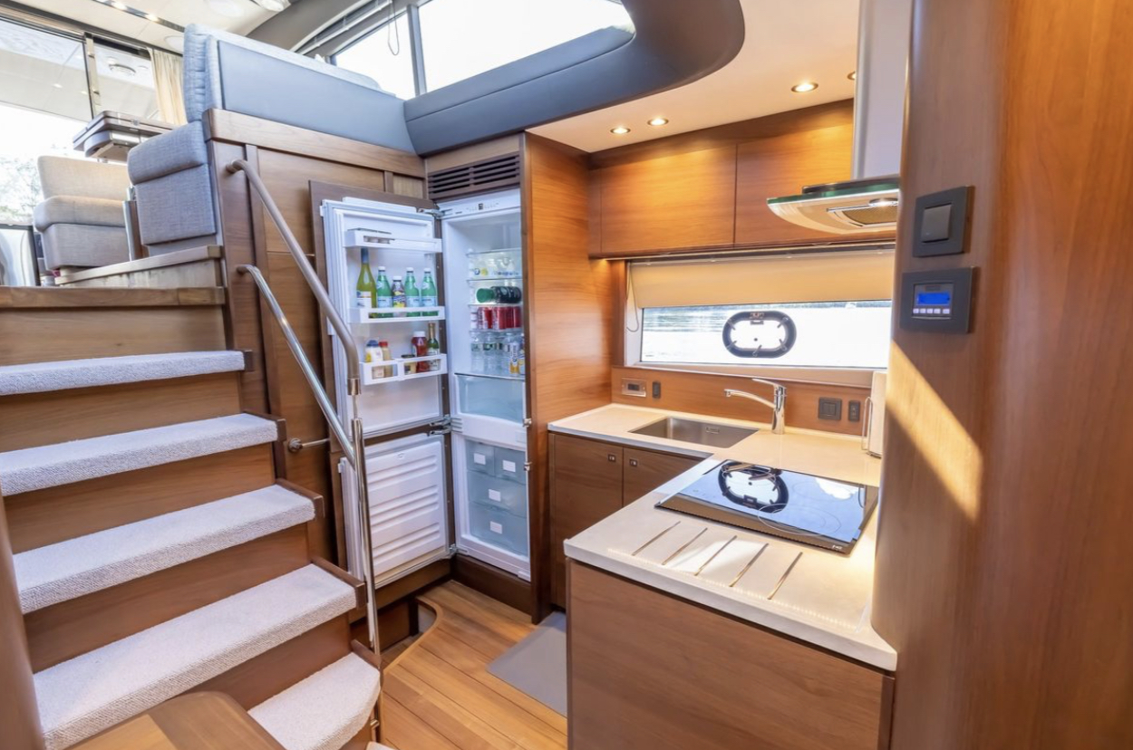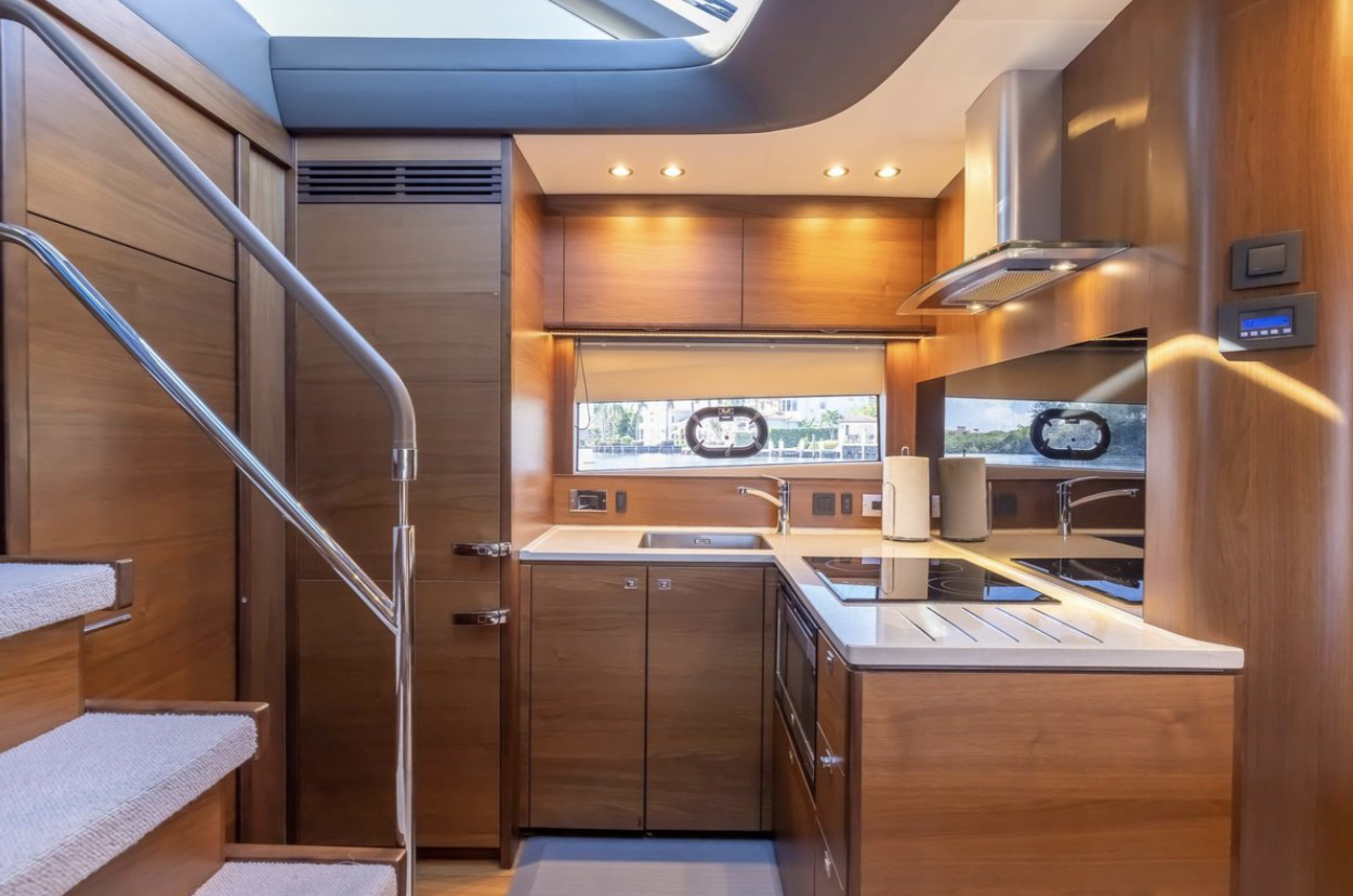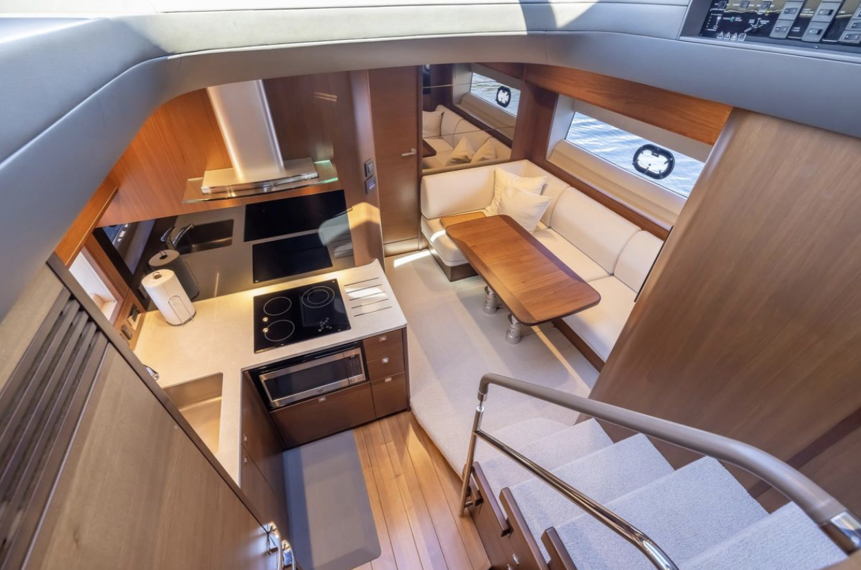 Powered by twin Volvo Penta engines, it delivers impressive speed and handling, making it an ideal choice for both short trips and extended cruising.
