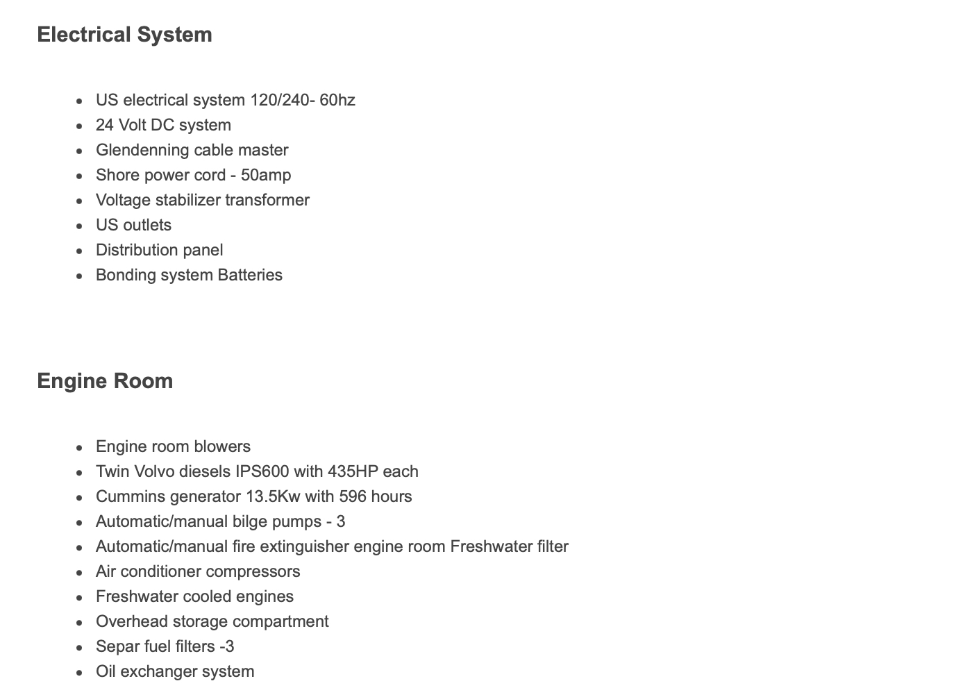 N.B. Vous pouvez acquérir ce bateau comme tout autre yacht sans avoir à payer de taxe Américaine ni Canadienne si le bateau navigue toujours hors du Canada avec une immatriculation Canadienne (Le bateau doit appartenir à un Canadien)