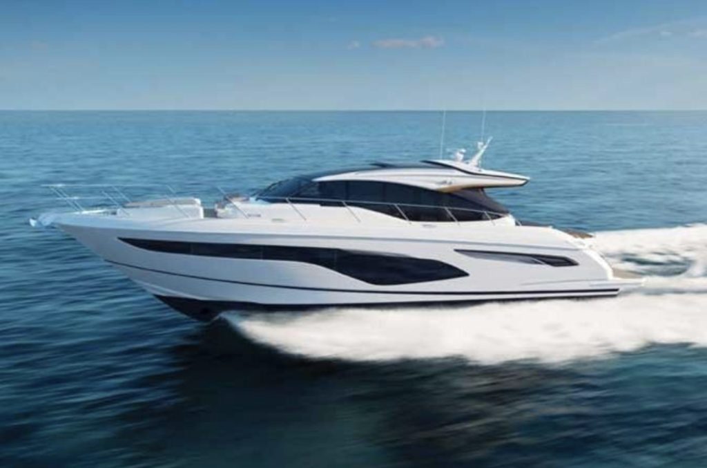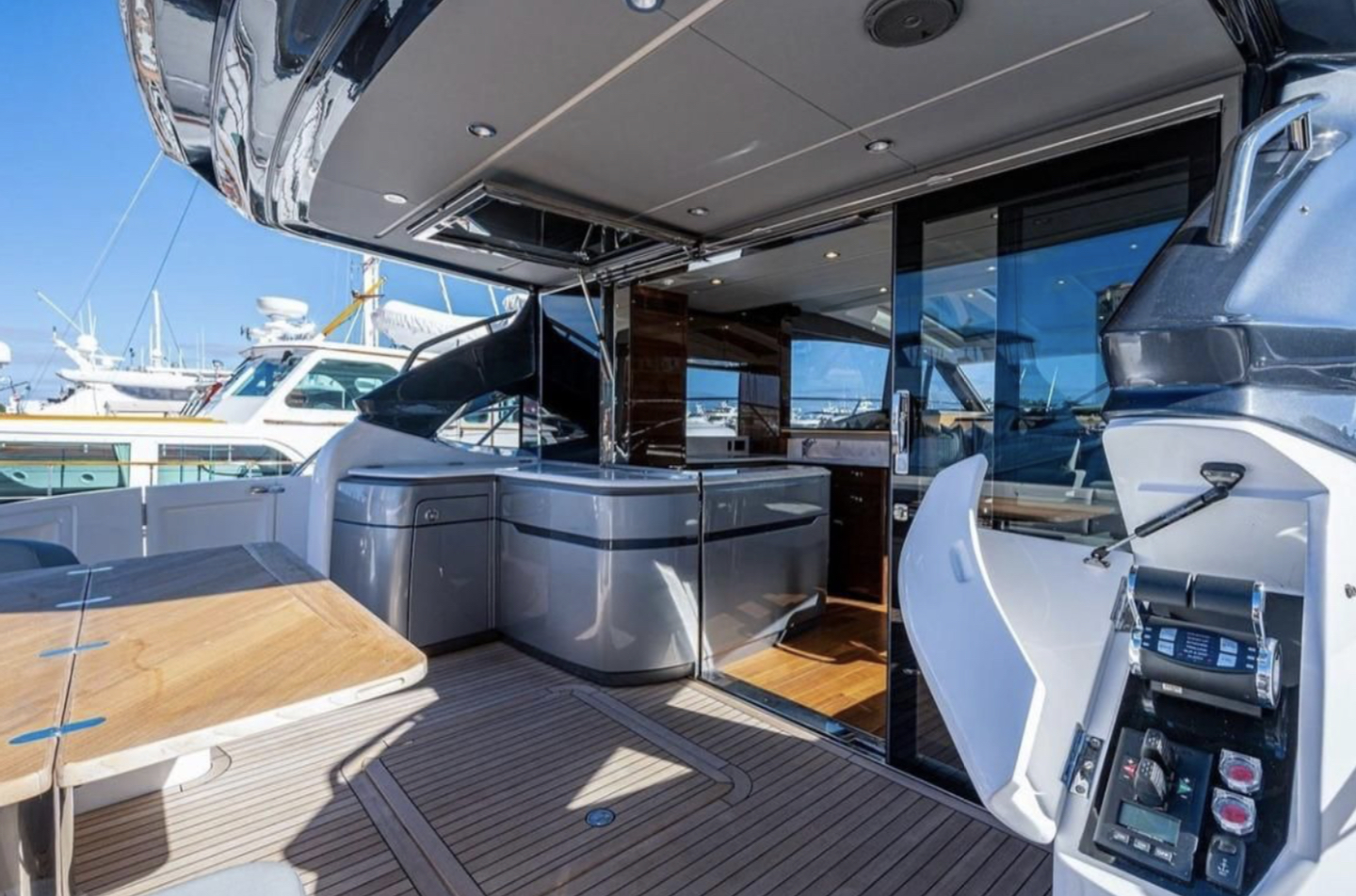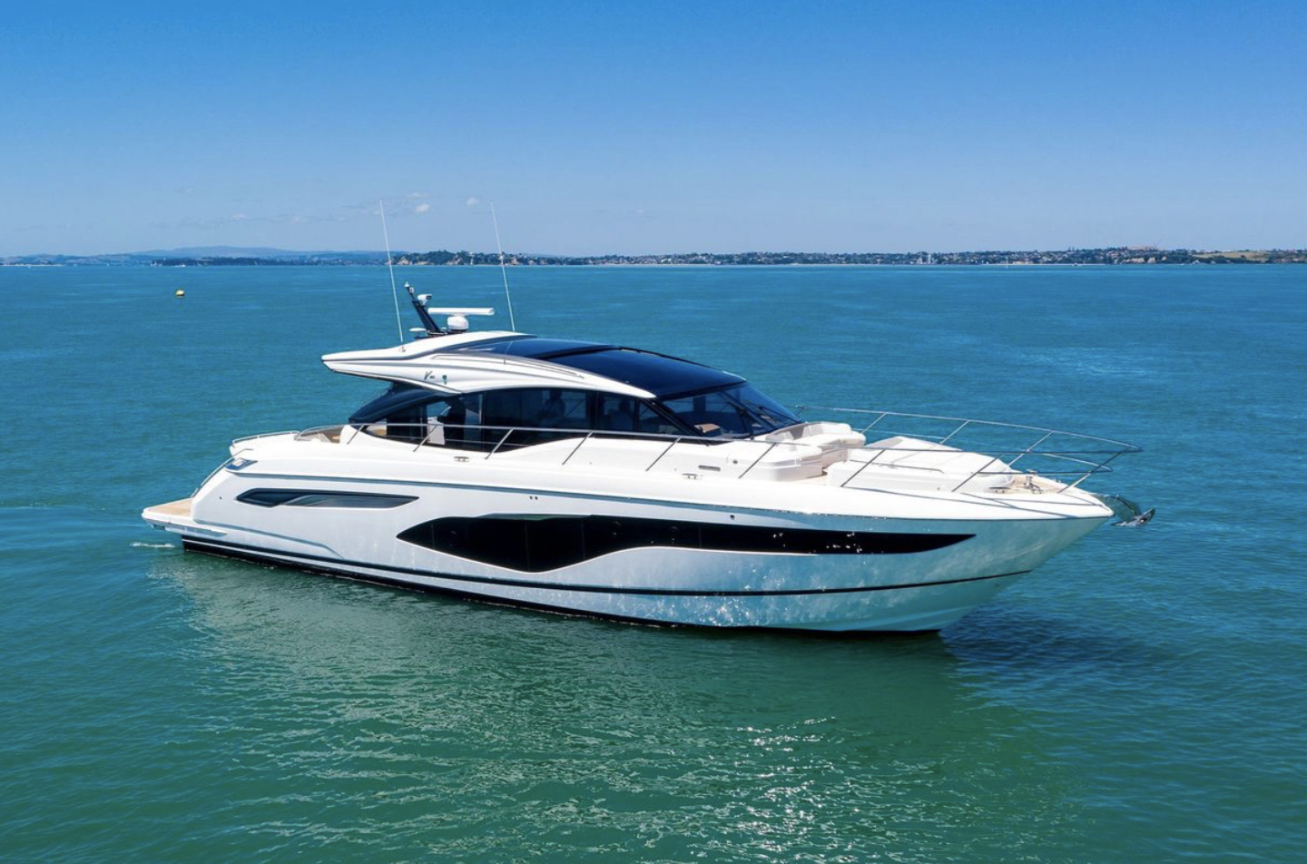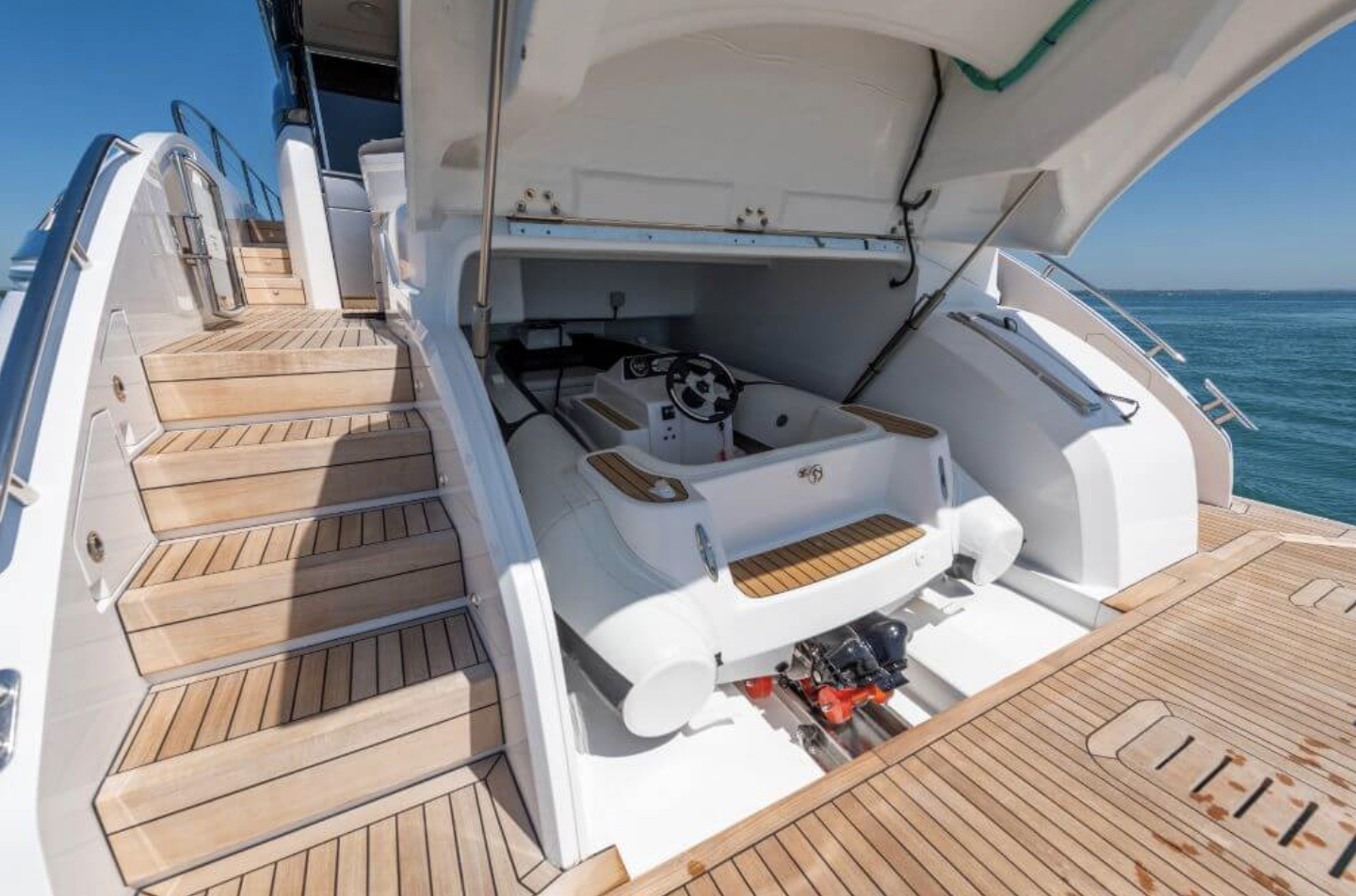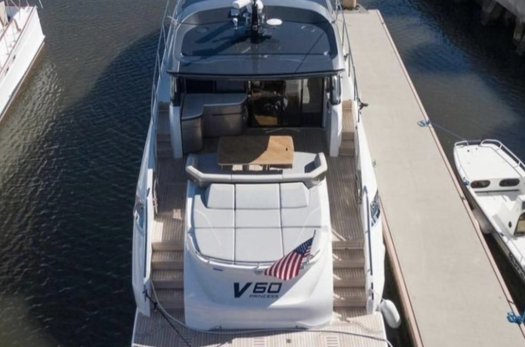 The elegant lines of the New V60 Princess encapsulate an expansive and sociable cockpit arrangement with a generous seating area and fully equipped wetbar with barbecue. At anchor, her electro-hydraulic bathing platform creates a launch system for a tender, jet ski, or simply a secluded swimming platform. With twin MAN V8 1200hp engines taking you up to 38+ knots, she is an altogether adventurous Sport Yacht.