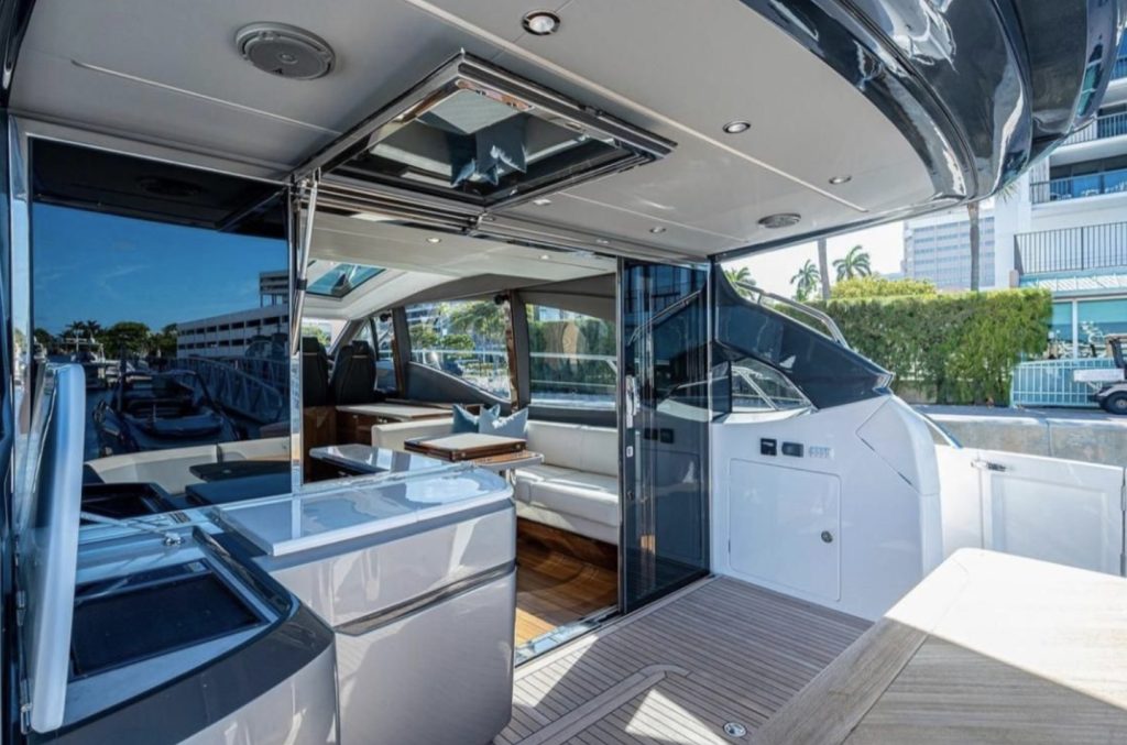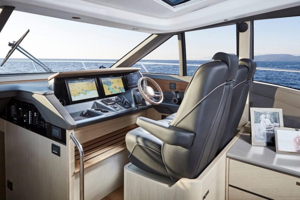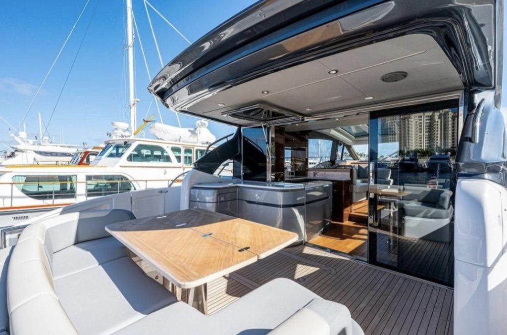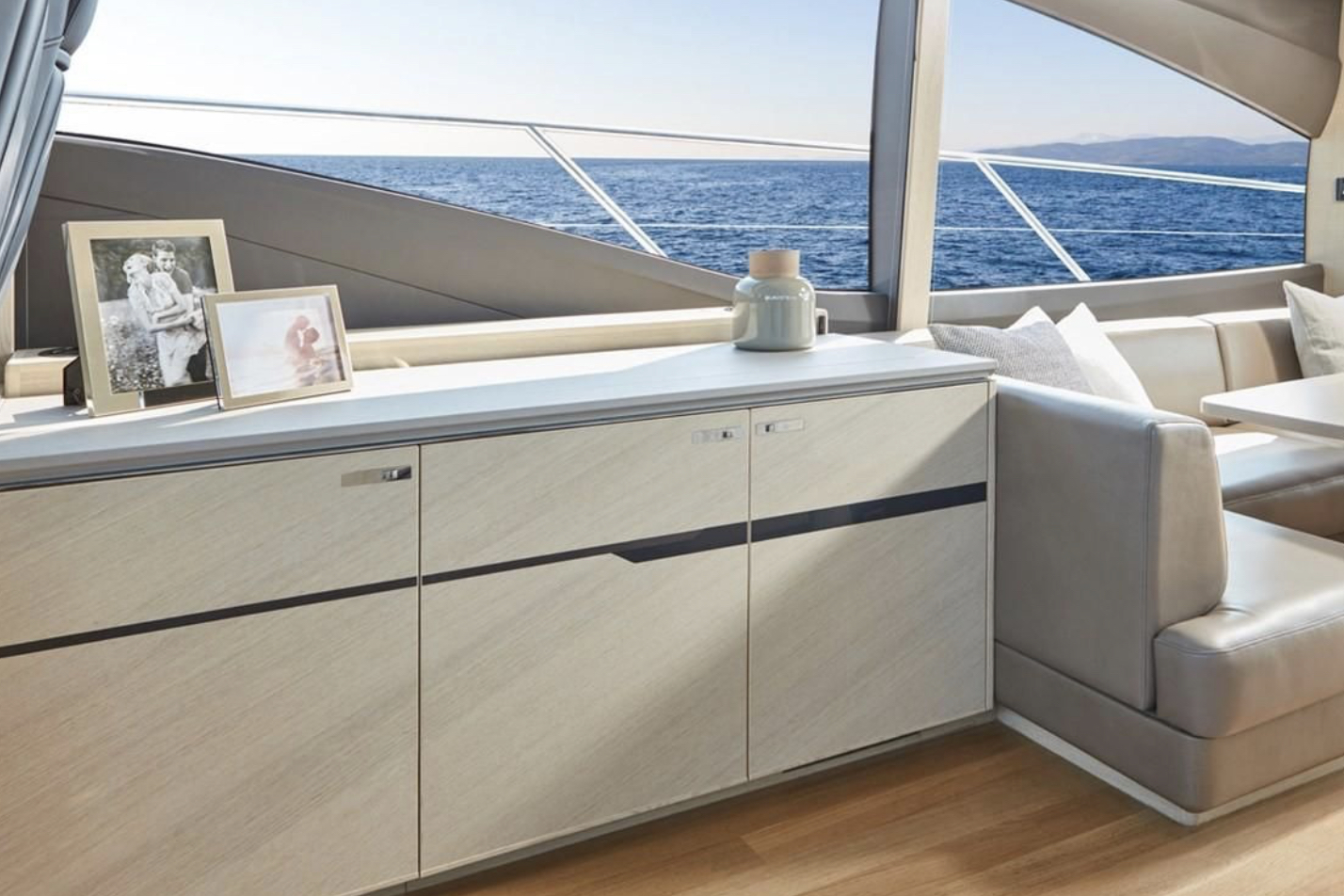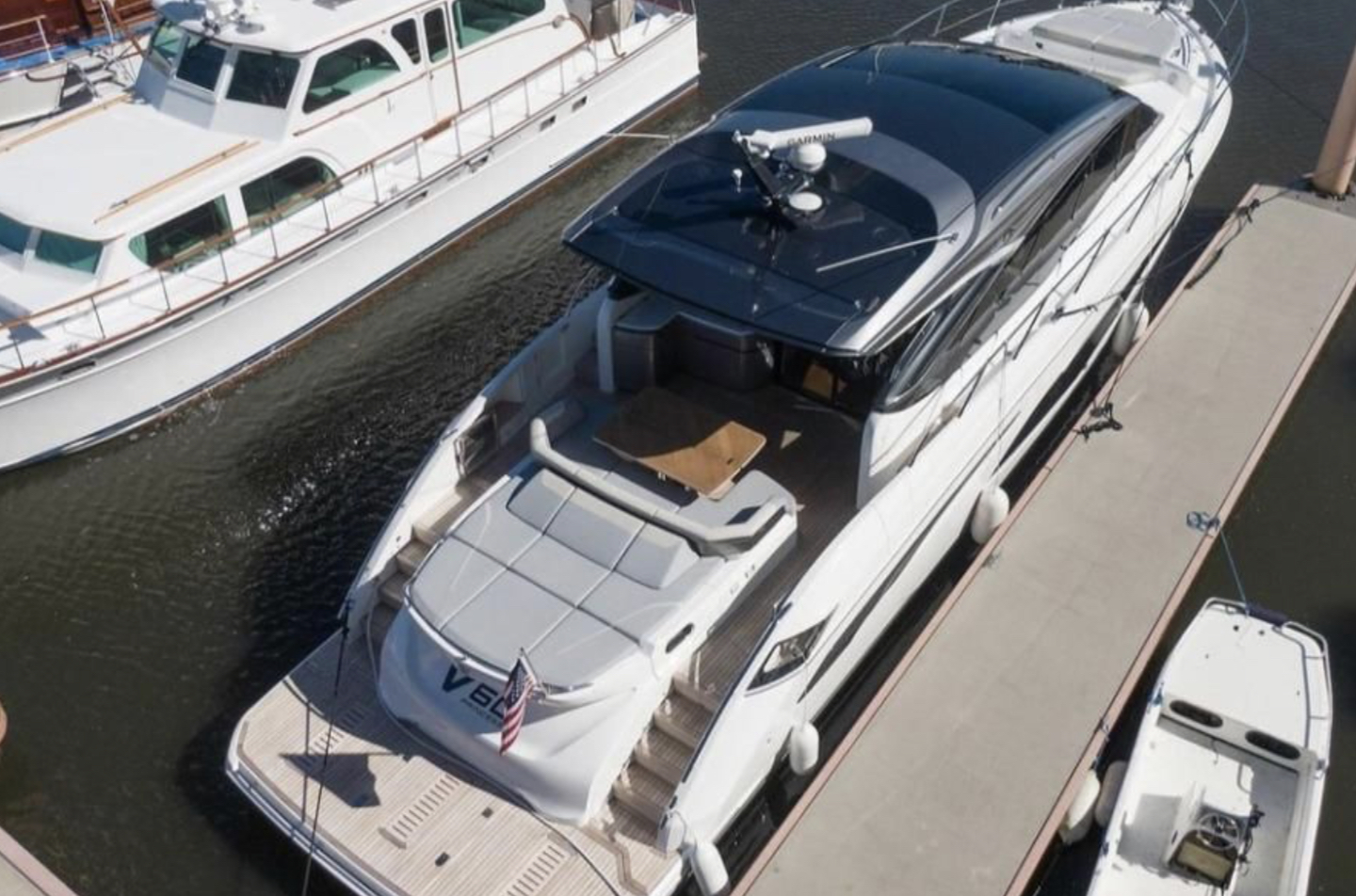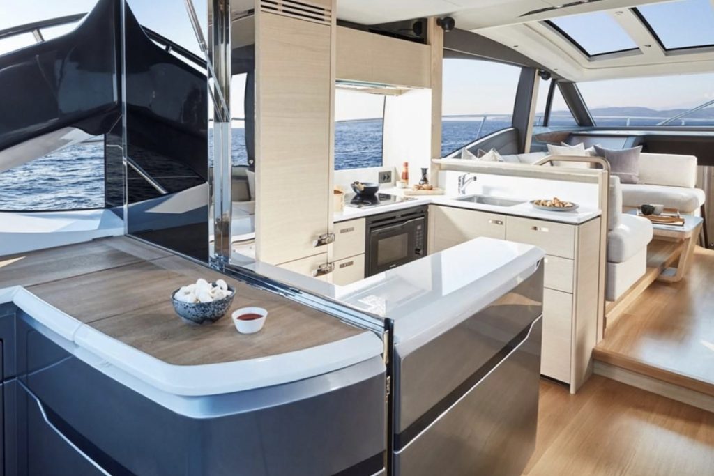 The elegant lines of the New V60 Princess encapsulate an expansive and sociable cockpit arrangement with a generous seating area and fully equipped wetbar with barbecue. At anchor, her electro-hydraulic bathing platform creates a launch system for a tender, jet ski, or simply a secluded swimming platform. With twin MAN V8 1200hp engines taking you up to 38+ knots, she is an altogether adventurous Sport Yacht.