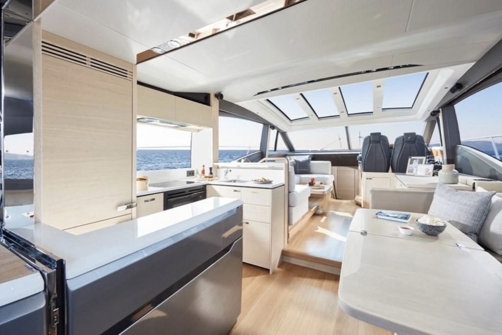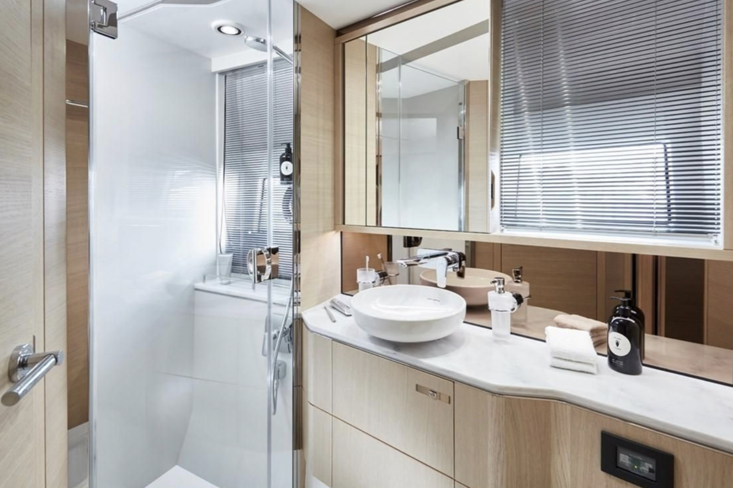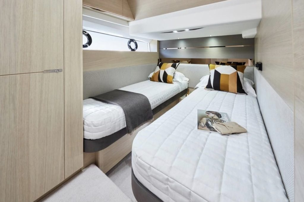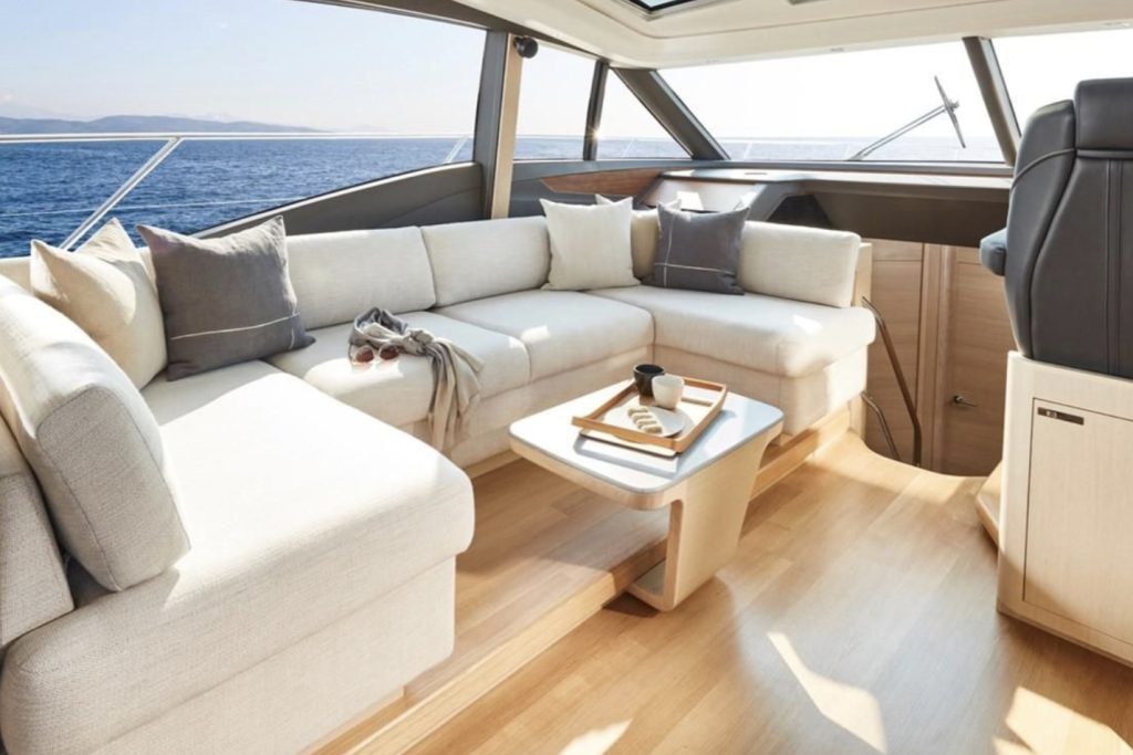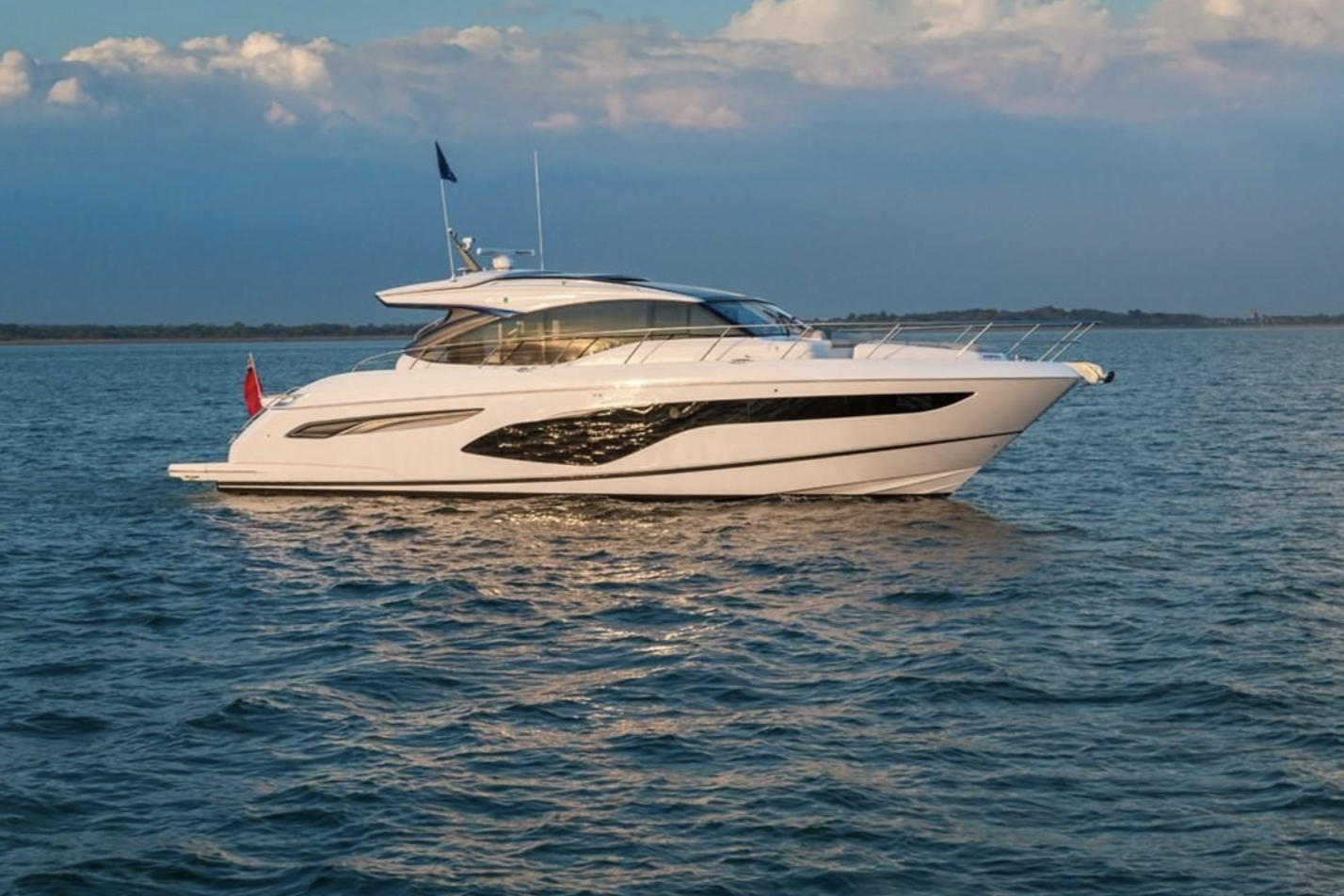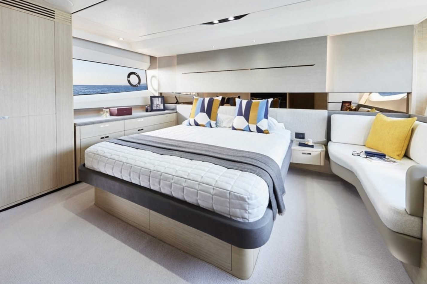The elegant lines of the New V60 Princess encapsulate an expansive and sociable cockpit arrangement with a generous seating area and fully equipped wetbar with barbecue. At anchor, her electro-hydraulic bathing platform creates a launch system for a tender, jet ski, or simply a secluded swimming platform. With twin MAN V8 1200hp engines taking you up to 38+ knots, she is an altogether adventurous Sport Yacht.