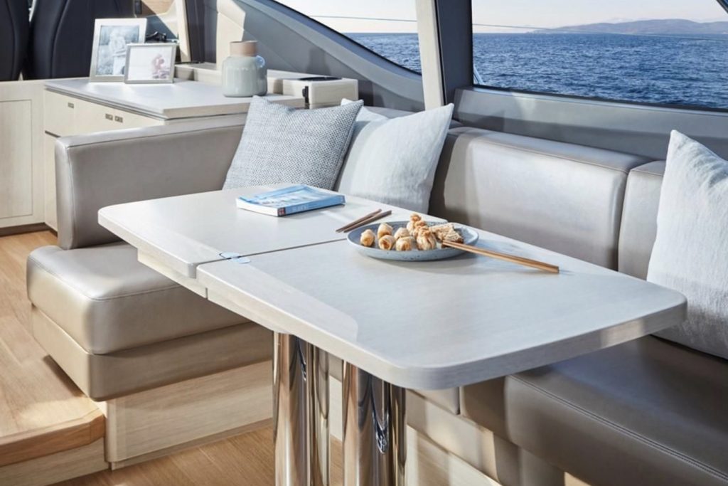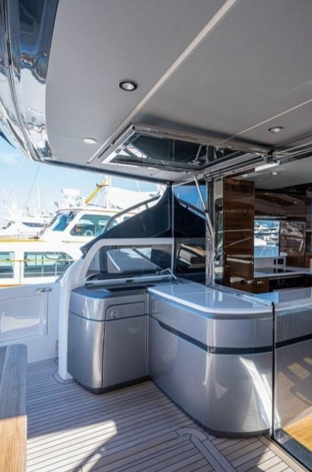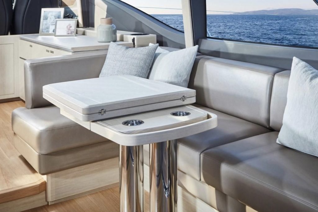 High gloss finish to cockpit table, cockpit wetbar, and foredeck table