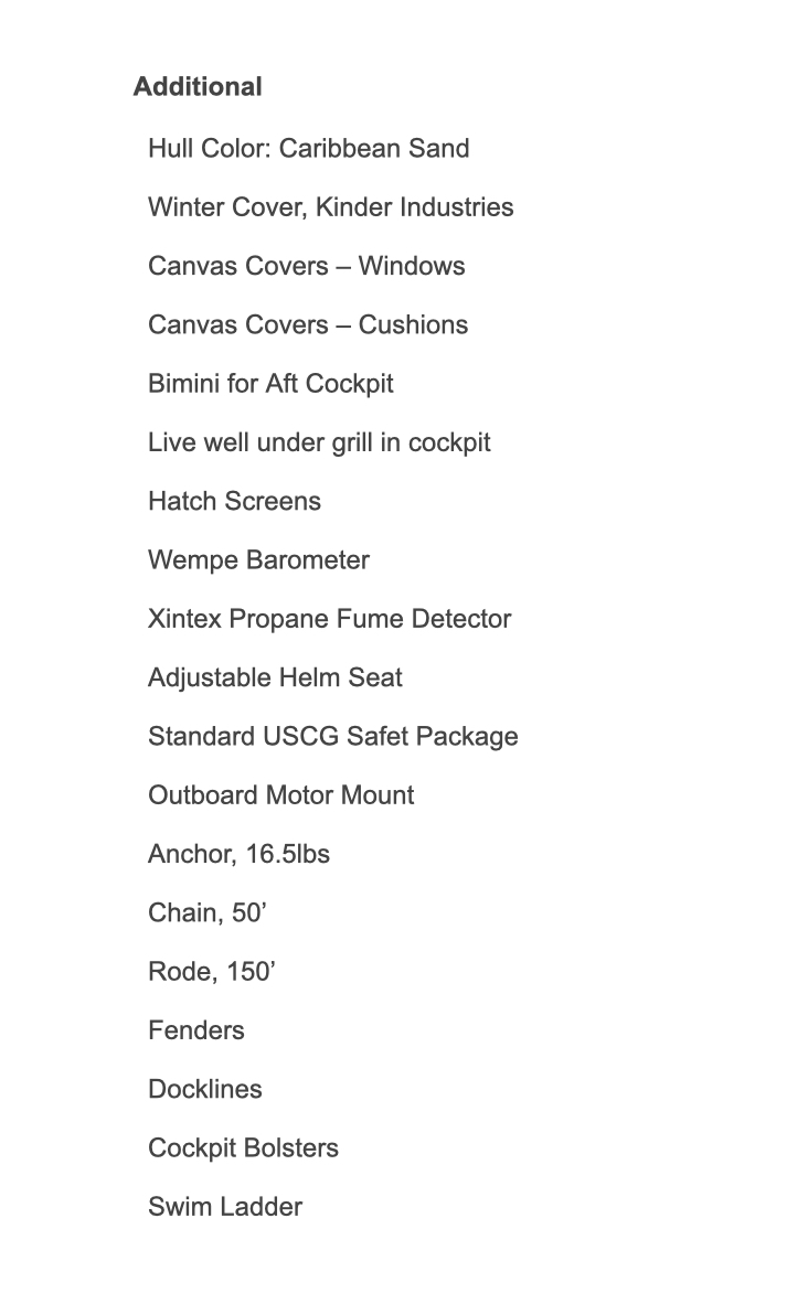 Le bateau qui est présenté sur cette page, l’est uniquement à titre d'information et n'est pas nécessairement toujours disponible à la vente et/ou à la location. Ce bateau est peut-être offert sous réserve, il faut vérifier sa disponibilité. Ce document ou cette annonce n'est pas contractuel. Les informations sur les bateaux affichées dans les résultats ci-dessus sont présentées en toute bonne foi et, bien qu'elles soient considérées comme correctes, elles ne sont pas garanties. Ita Yachts Canada et/ou ProprioBateau ne garantit pas et n'assume aucune responsabilité légale ou responsabilité pour l'exactitude, l'exhaustivité ou l'utilité des informations et/ou des images affichées, car elles peuvent ne pas être à jour ou encore êtres des images d'un bateau comparable. Toutes les informations sur les bateaux peuvent être modifiées sans préavis et sont sans garantie. Ce bateau est peut-être offert par un autre courtier ouvert au co-courtage (co-brokerage).