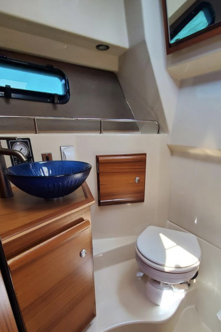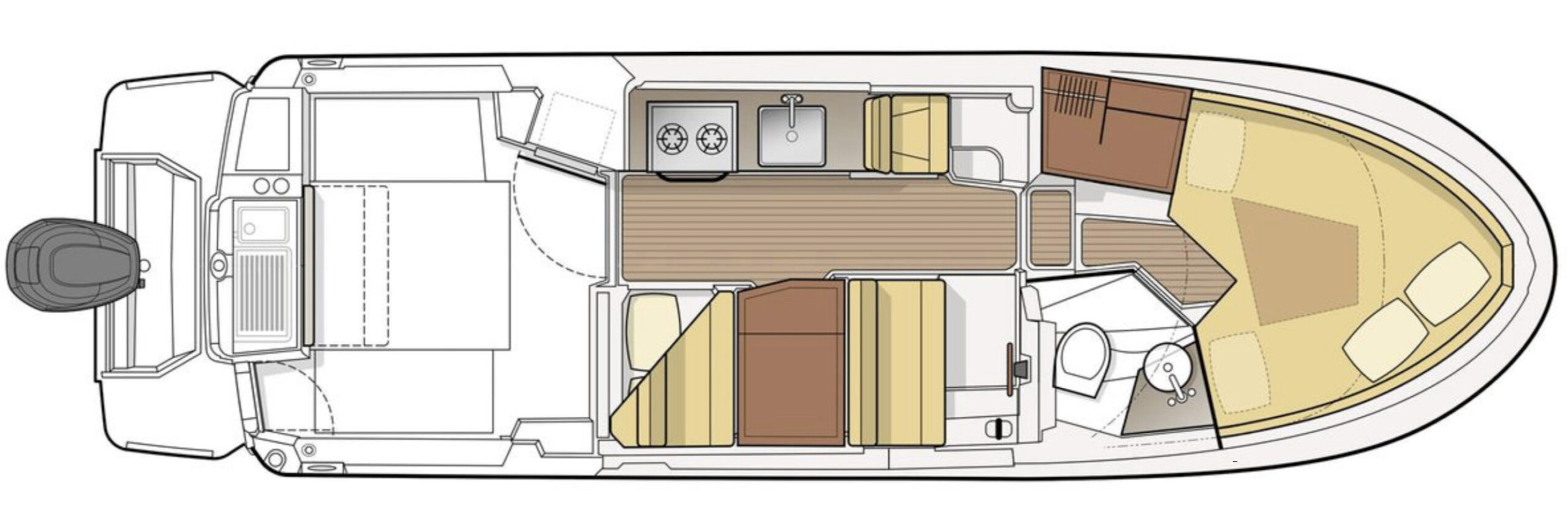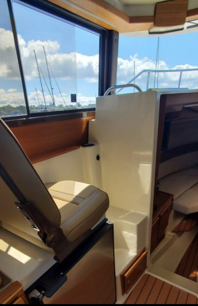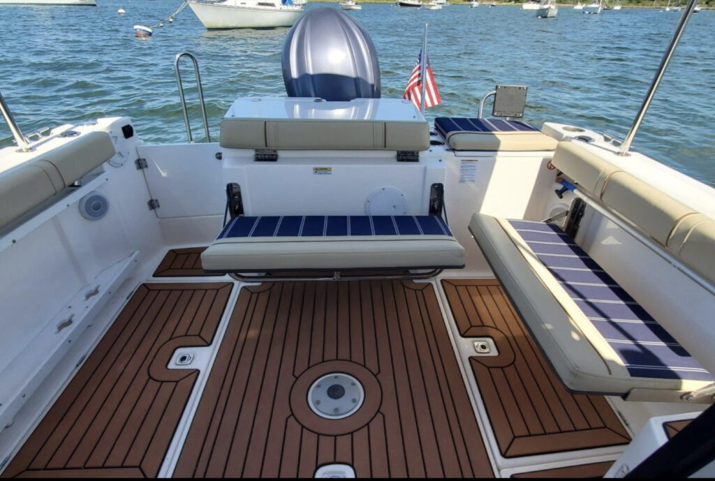 Powered by a Yamaha F300 outboard motor, the R-27 ensures swift journeys to your next destination. She comes fully equipped with a comprehensive suite of Garmin electronics, including a plotter, radar, fishfinder, and autopilot, as well as a Fusion stereo system with speakers throughout the boat. Additional features include a bow thruster, thoughtfully designed low-level and accent lighting, and underwater lights.