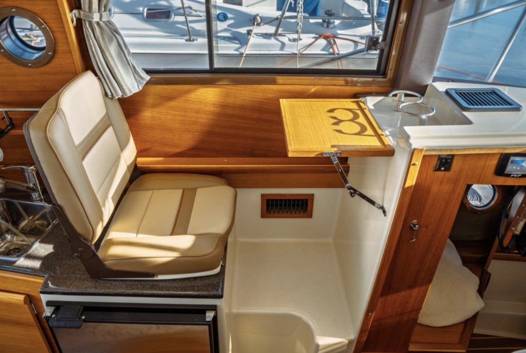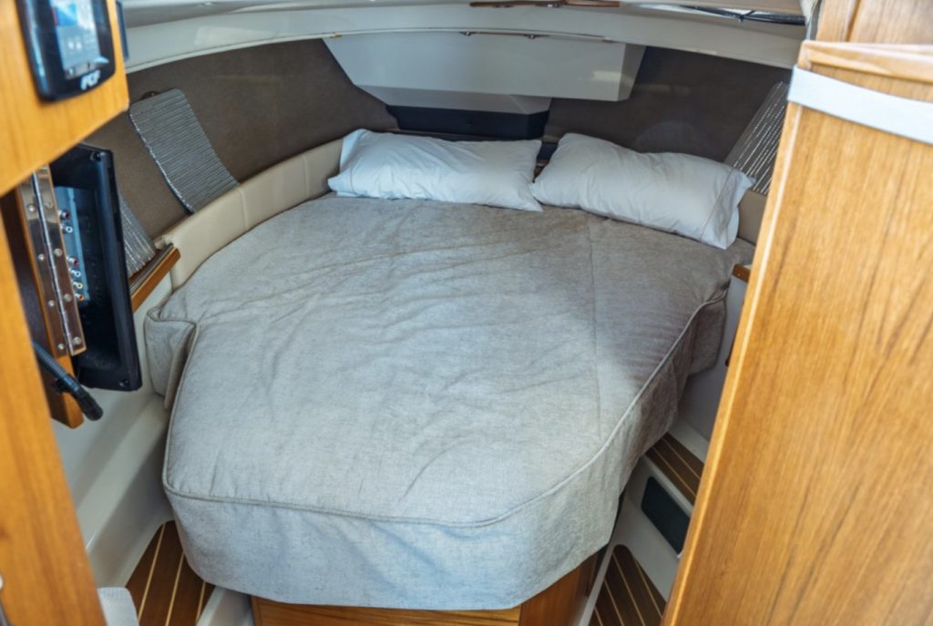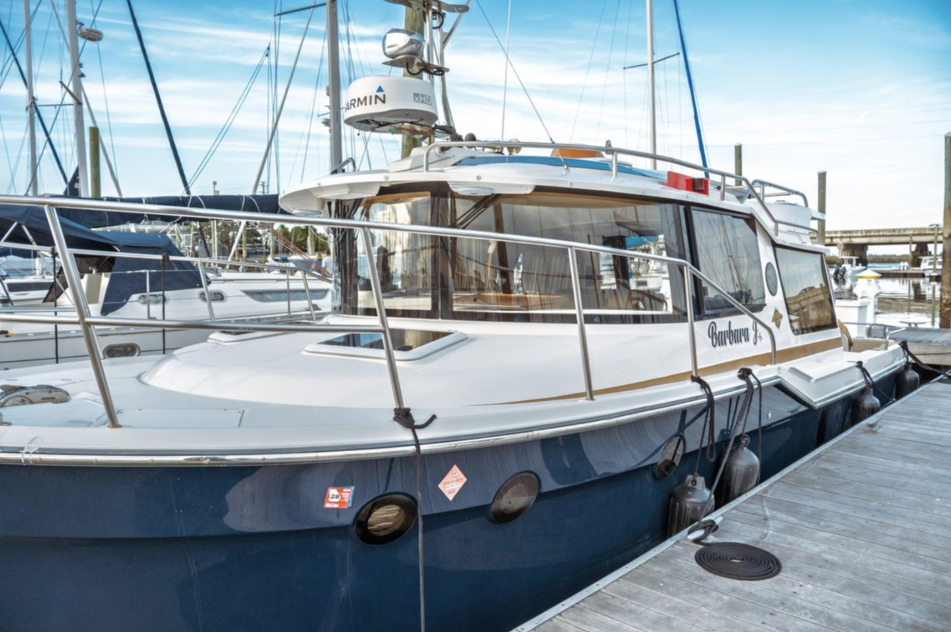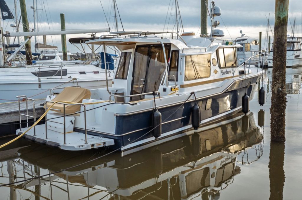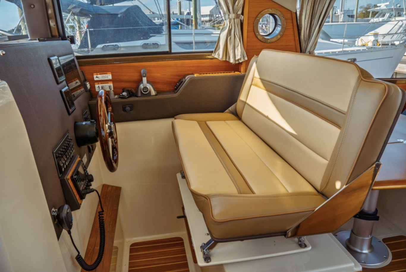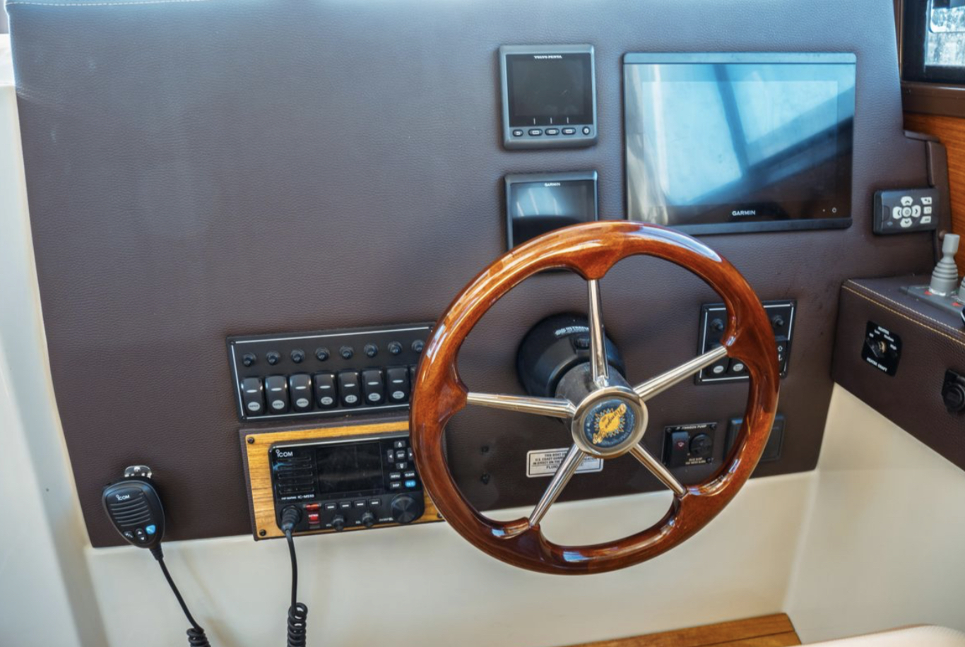 The Ranger Tug 29S accommodates up to six adults on three separate berths, including the forward island berth with en-suite head. The R29S is powered by a fuel efficient 320 HP Volvo Inboard Diesel engine that comes with 3 yr warranty and is located completely outside of the cabin for quiet cruising. Standard stern and bow thrusters make docking exceptionally easy.