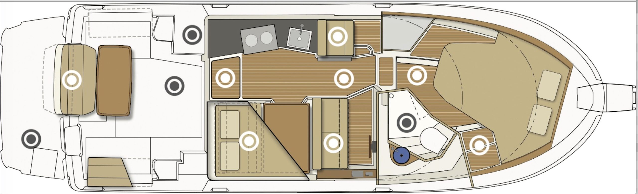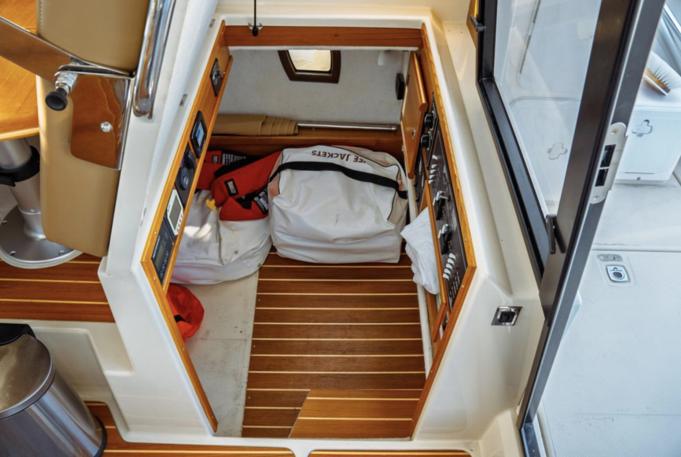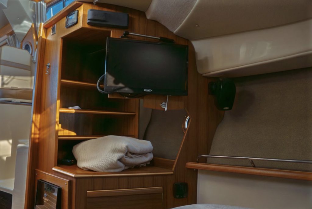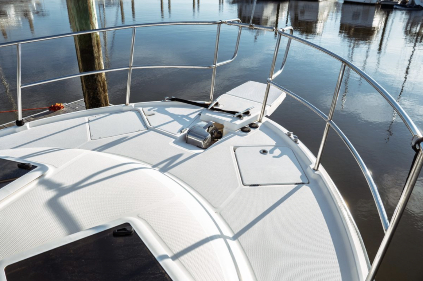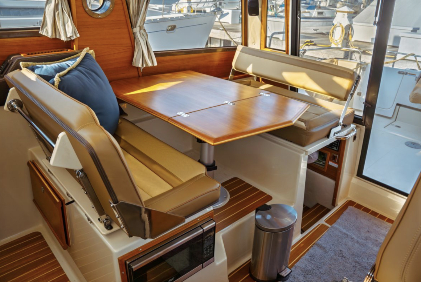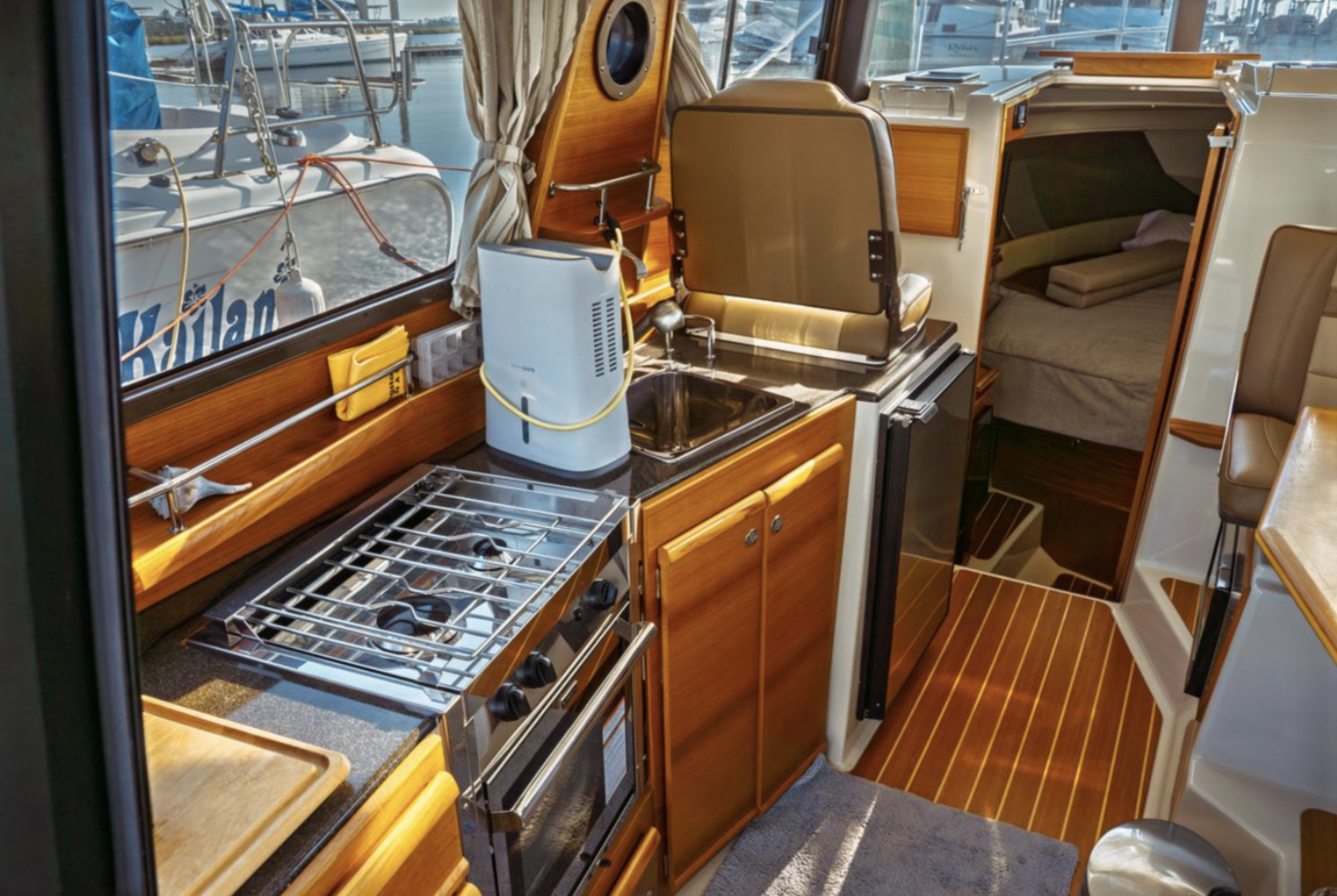 The Ranger Tug 29S accommodates up to six adults on three separate berths, including the forward island berth with en-suite head. The R29S is powered by a fuel efficient 320 HP Volvo Inboard Diesel engine that comes with 3 yr warranty and is located completely outside of the cabin for quiet cruising. Standard stern and bow thrusters make docking exceptionally easy.