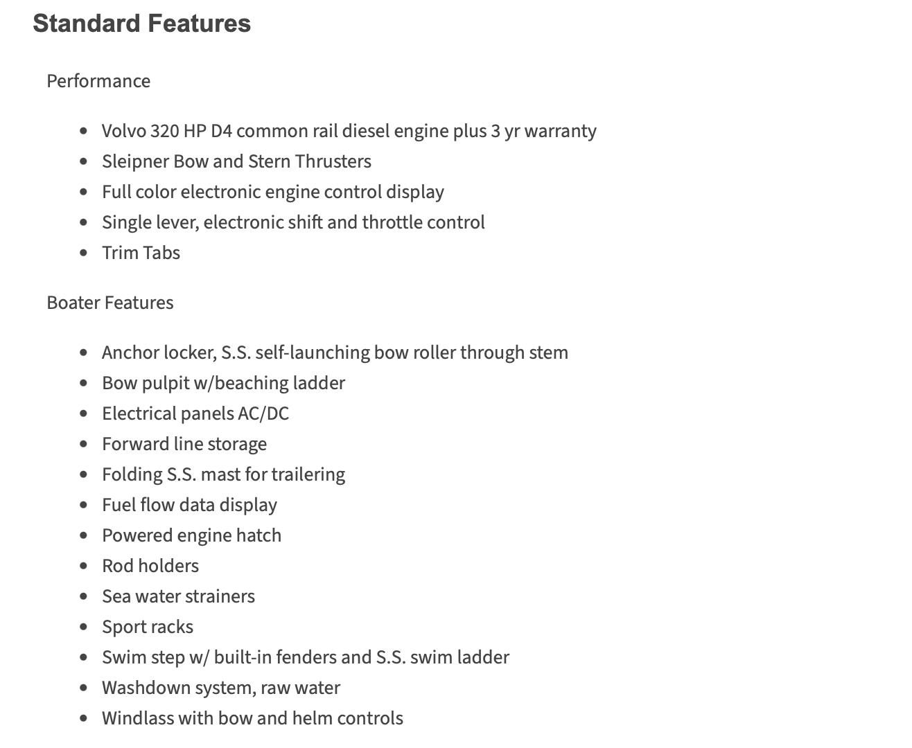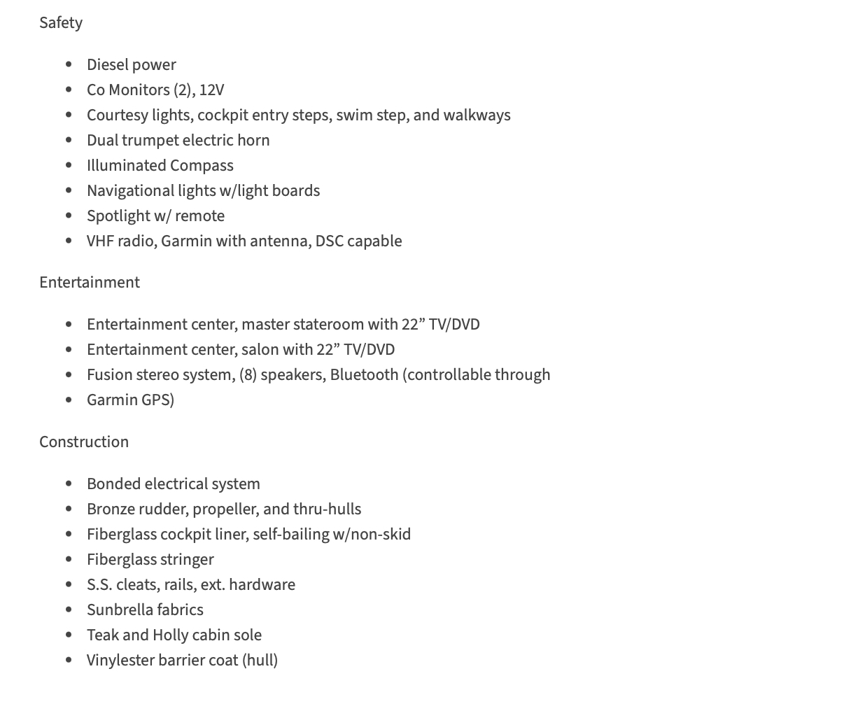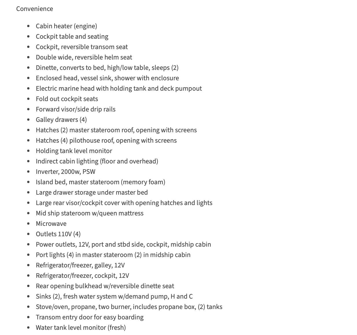 Le bateau qui est présenté sur cette page, l’est uniquement à titre d'information et n'est pas nécessairement toujours disponible à la vente et/ou à la location. Ce bateau est peut-être offert sous réserve, il faut vérifier sa disponibilité. Ce document ou cette annonce n'est pas contractuel. Les informations sur les bateaux affichées dans les résultats ci-dessus sont présentées en toute bonne foi et, bien qu'elles soient considérées comme correctes, elles ne sont pas garanties. Ita Yachts Canada et/ou ProprioBateau ne garantit pas et n'assume aucune responsabilité légale ou responsabilité pour l'exactitude, l'exhaustivité ou l'utilité des informations et/ou des images affichées, car elles peuvent ne pas être à jour ou encore êtres des images d'un bateau comparable. Toutes les informations sur les bateaux peuvent être modifiées sans préavis et sont sans garantie. Ce bateau est peut-être offert par un autre courtier ouvert au co-courtage (co-brokerage).
