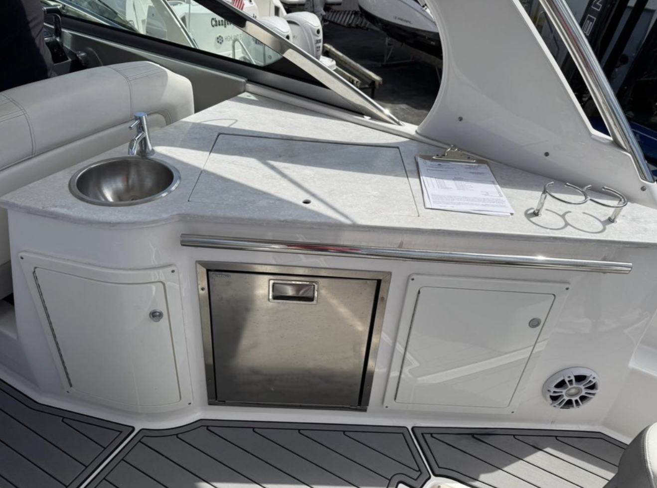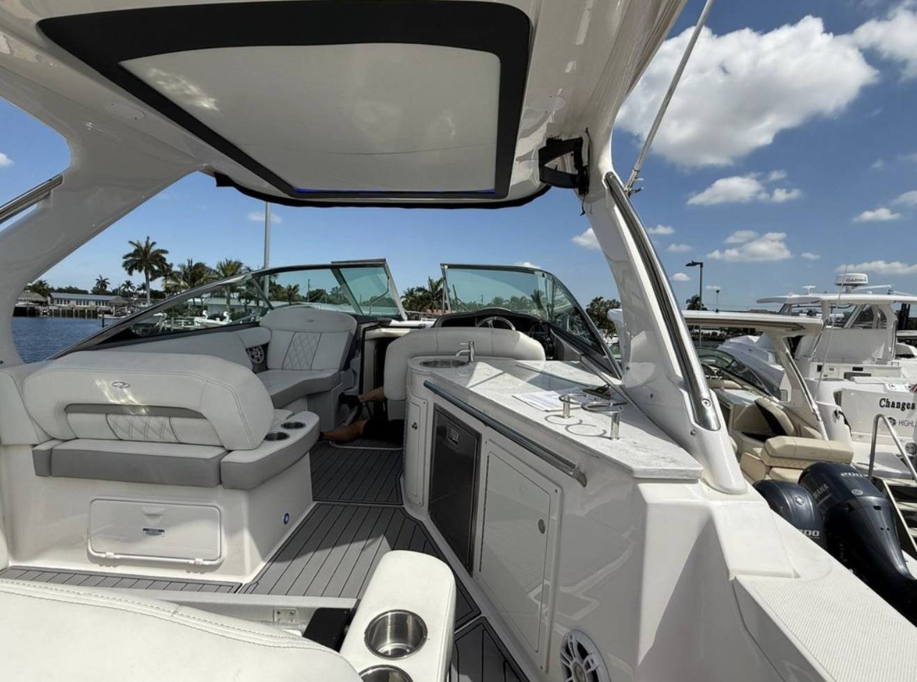 For people who love the openness of Express Cruiser and running a beautifully appointed cabin boat, that seems much bigger than her 33′, at 45-50mph, this is the one for you!