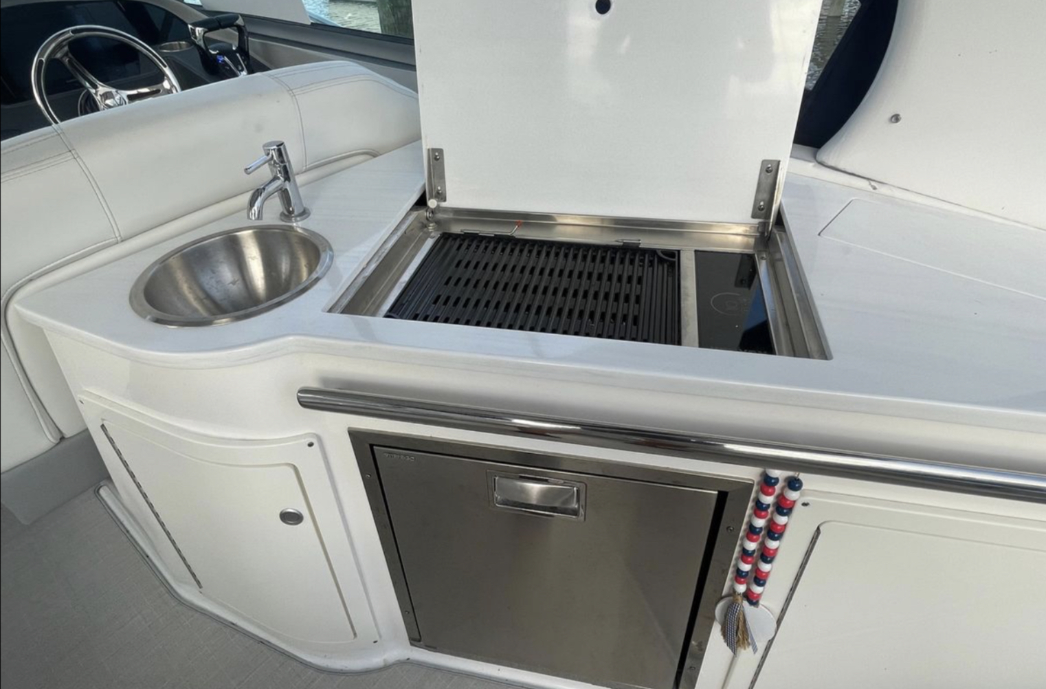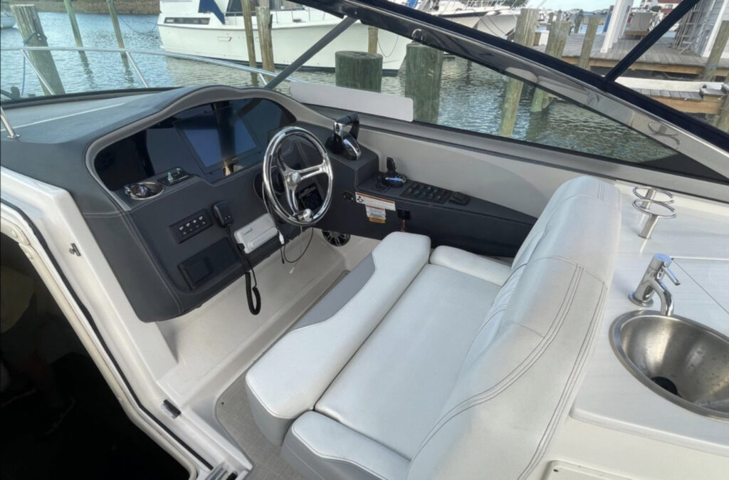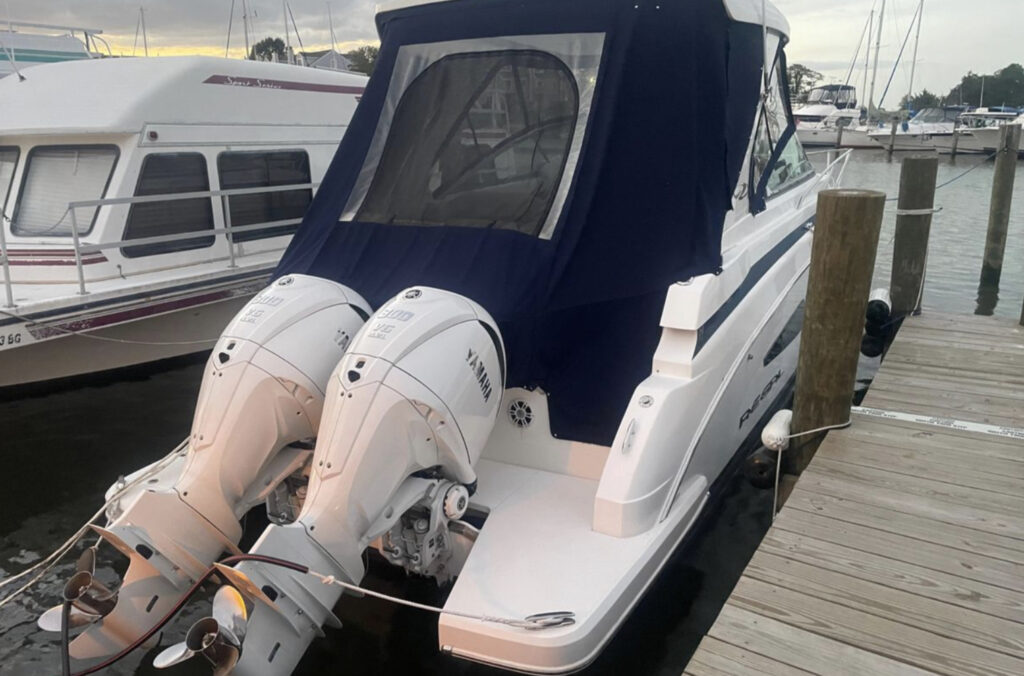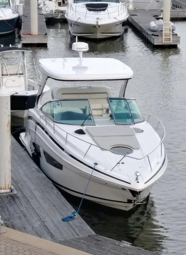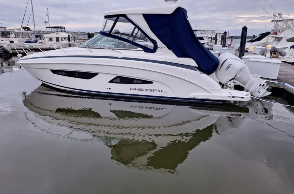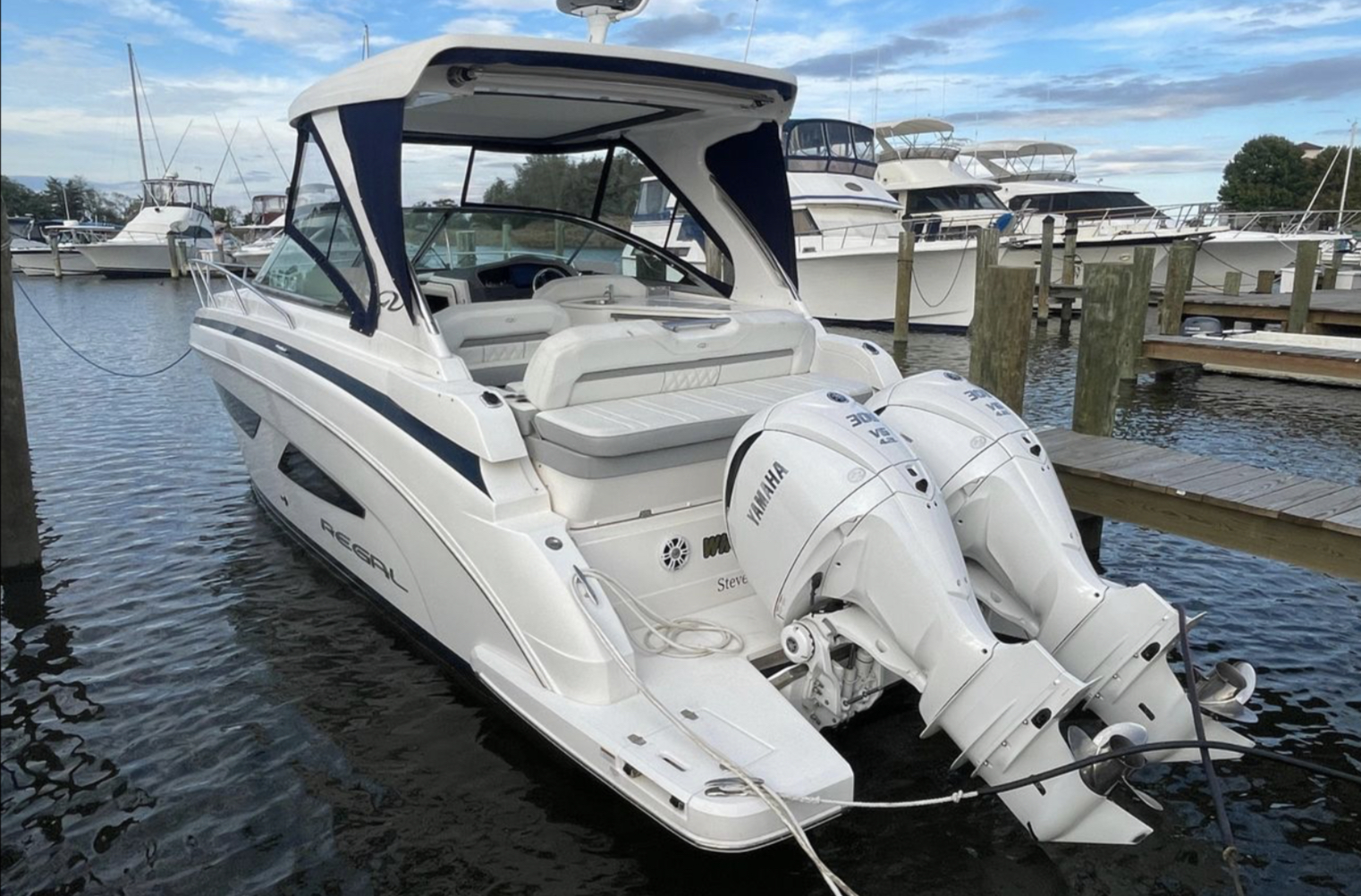 Brand New to the market, WHERE’S MIKE is a wonderfully maintained 2022 Regal 33 XO Express Cruiser powered by twin very low hour Yamaha F300’s with bow thruster and Joystick Controls! Loaded with features such as: Hardtop, Built in grill, pop-up cockpit TV, generator, air-conditioning, bow and stern sunpads, top of the line electronics!