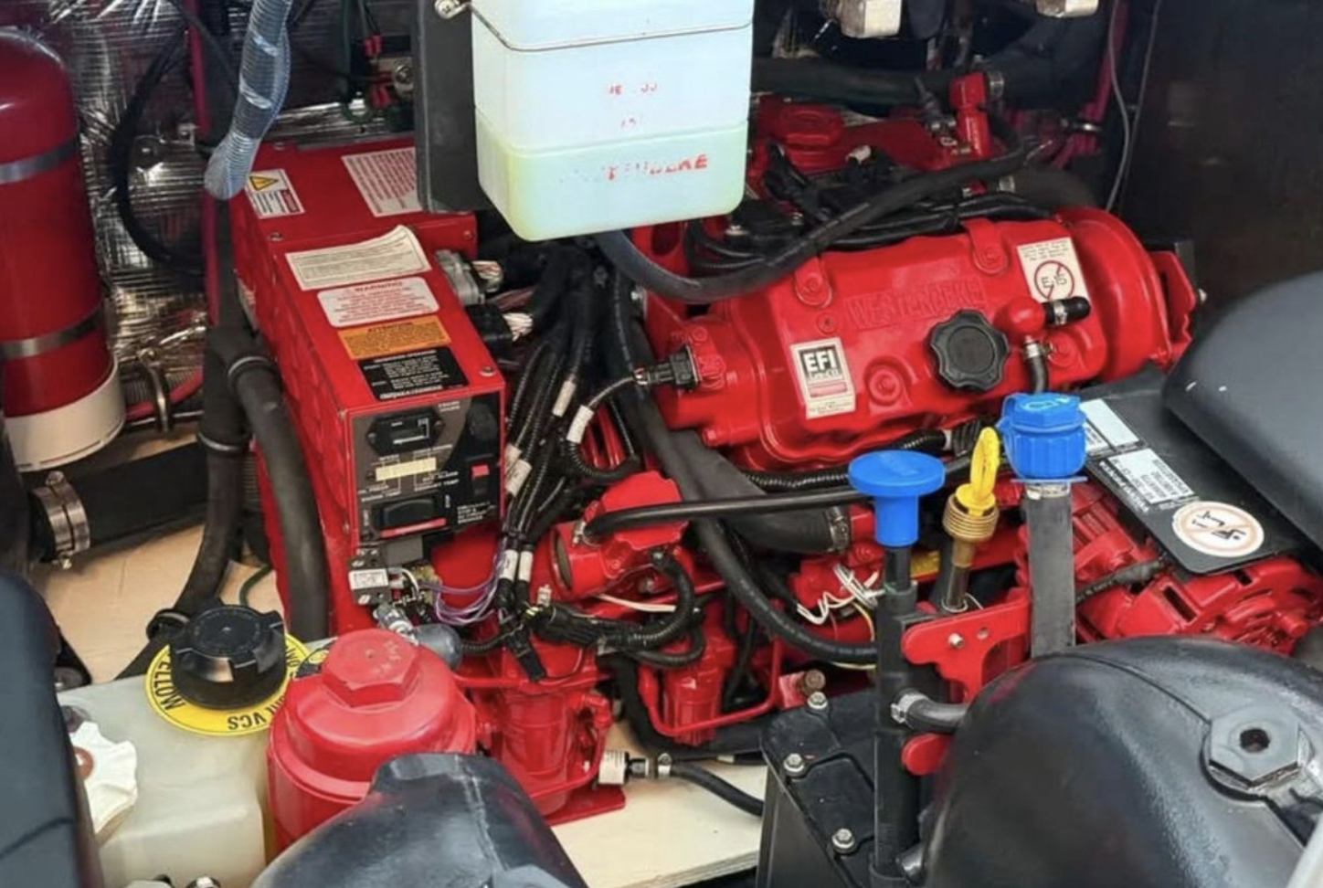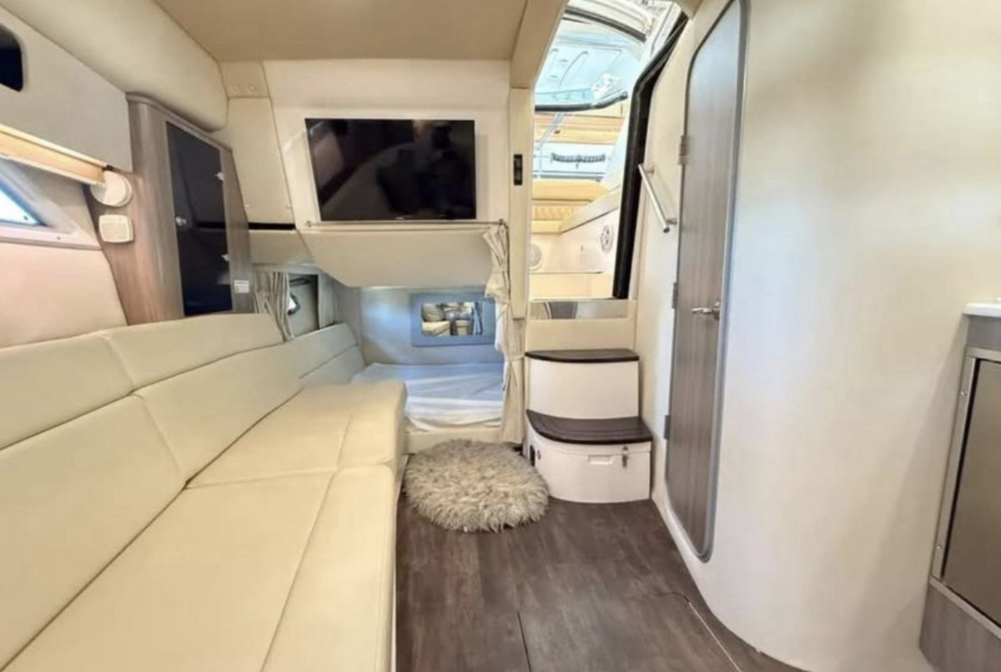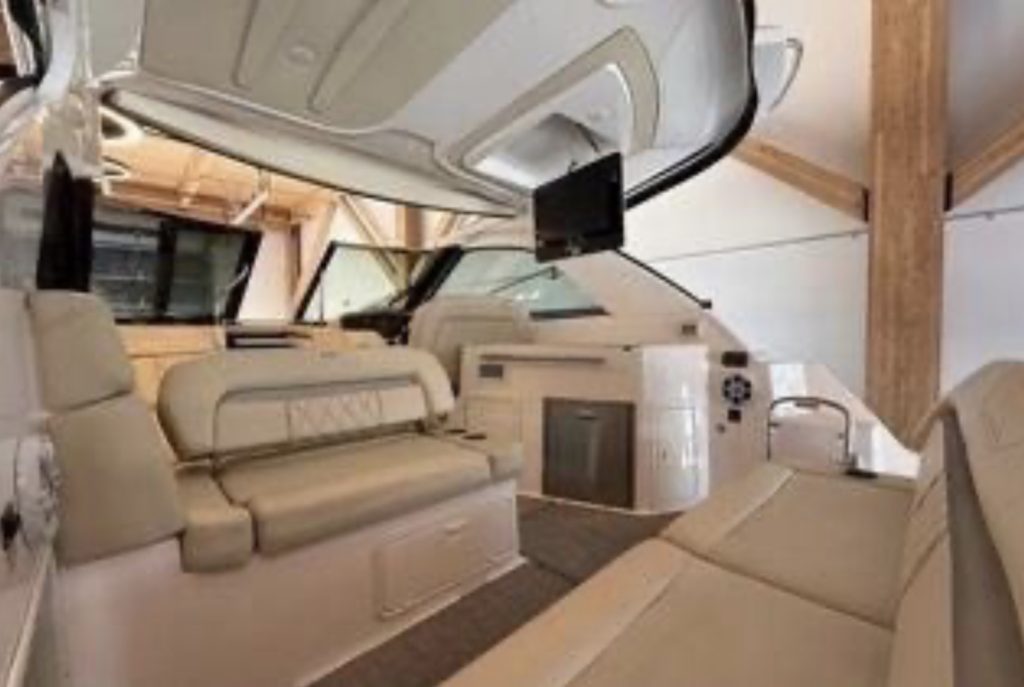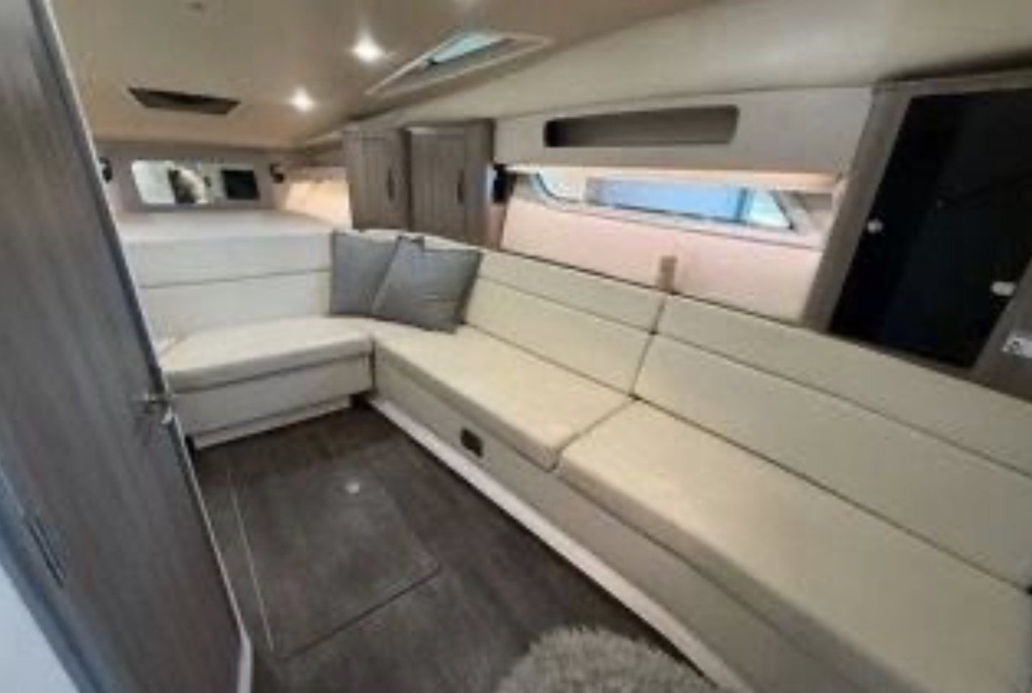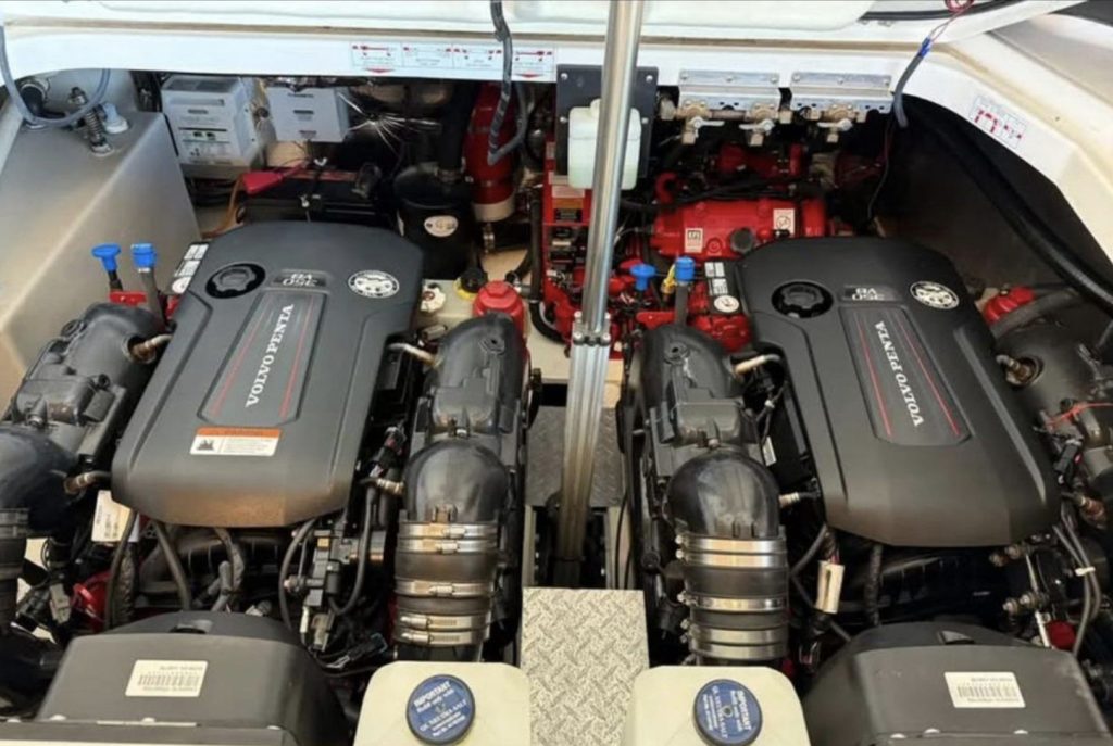 Powered by upgraded twin Volvo Penta 350 V8 gasoline engines (standard is 300s) with stainless steel DuoProps, the boat delivers excellent performance, efficiency, and reliability. Engines, and drives have 518 hours and have been consistently maintained to a high standard.