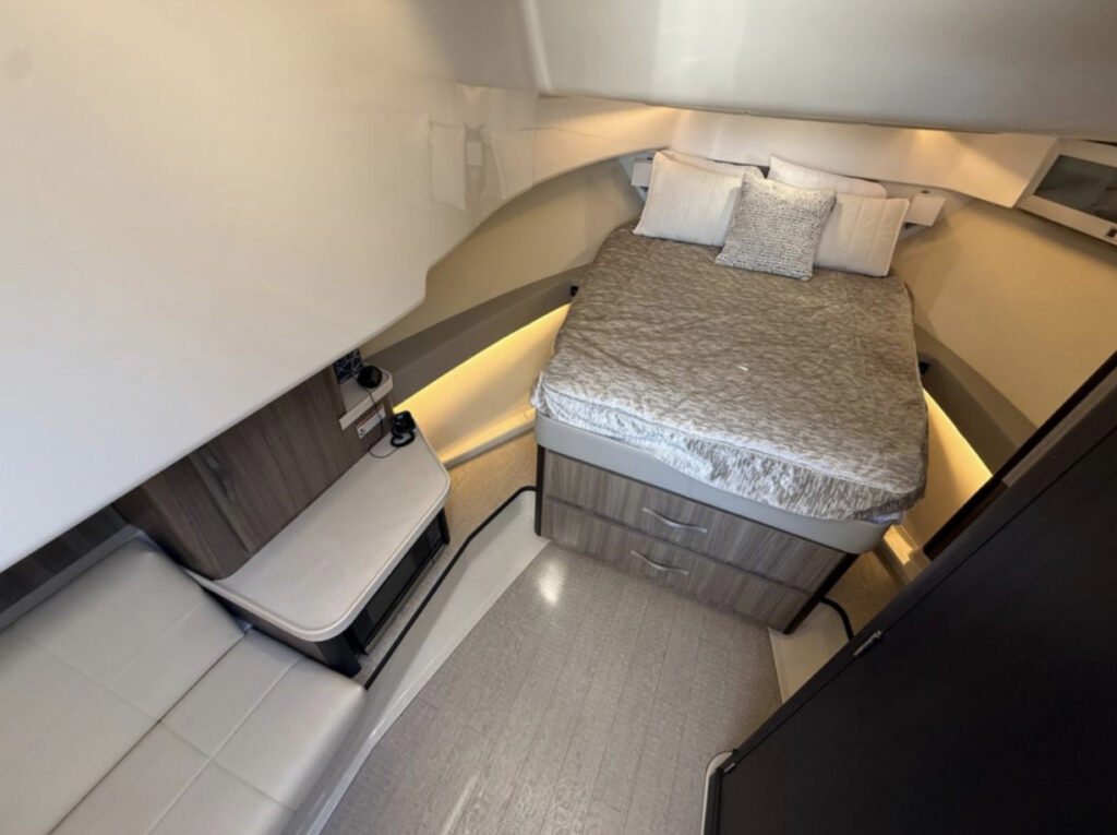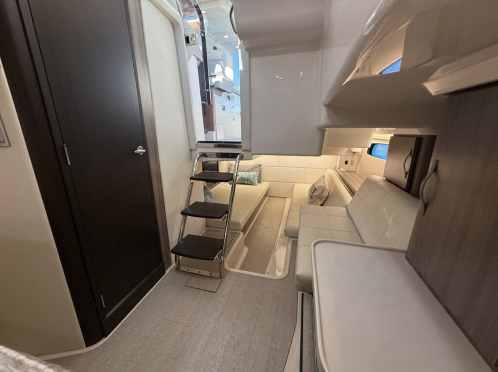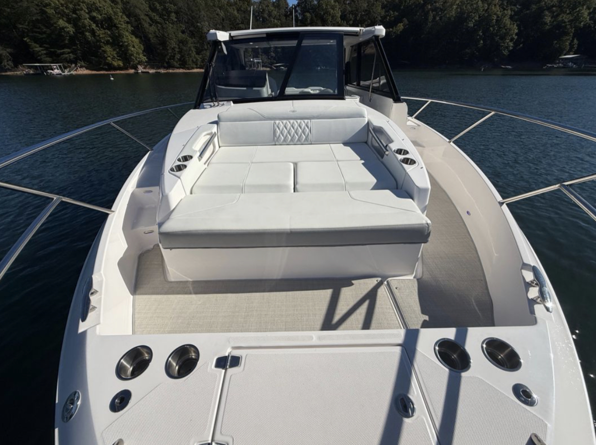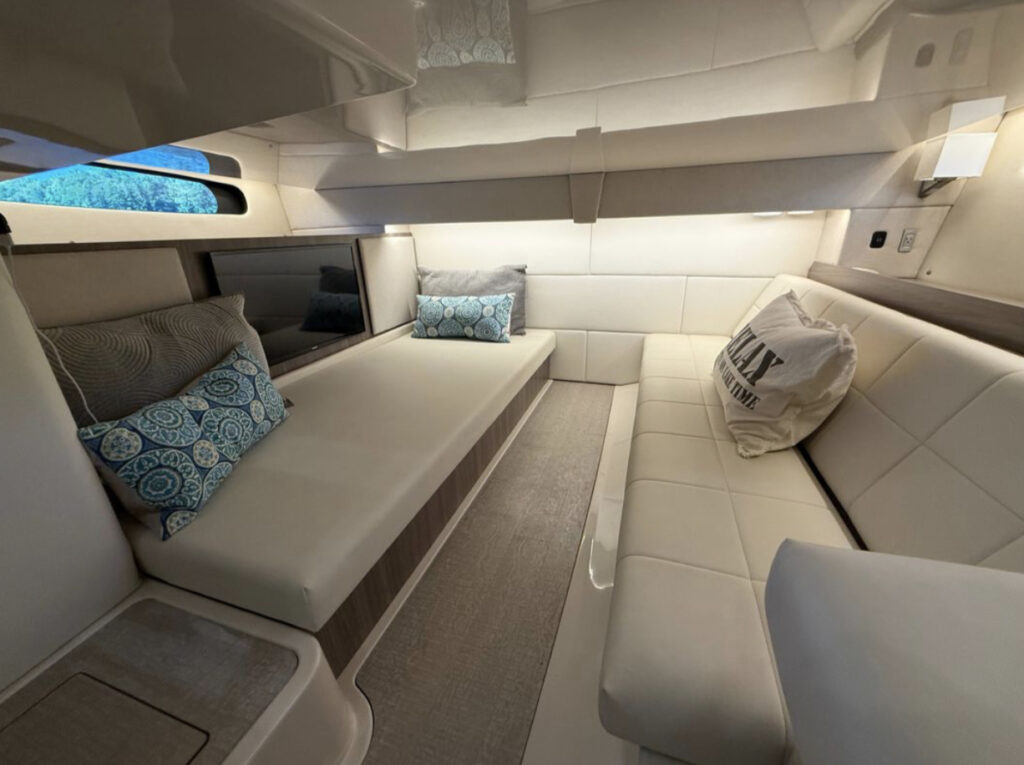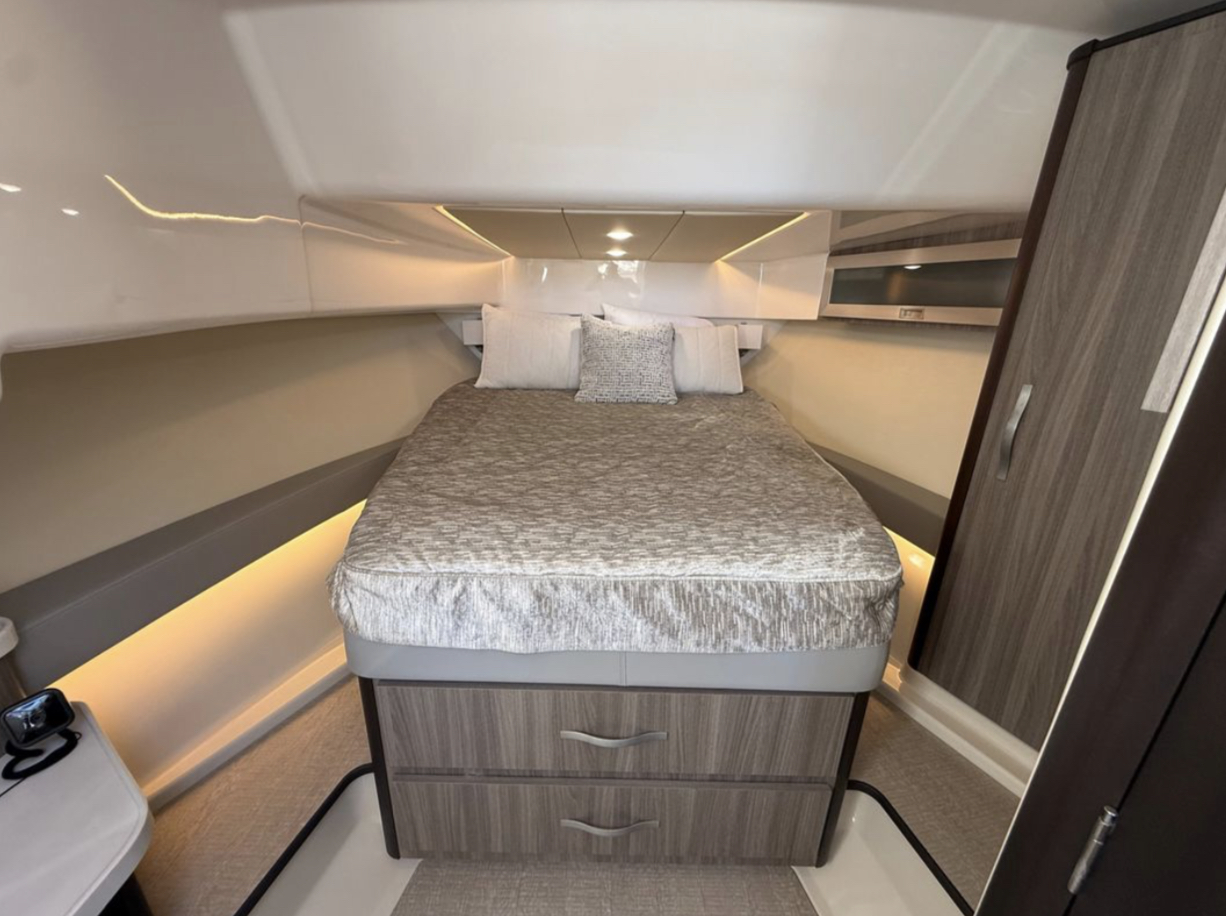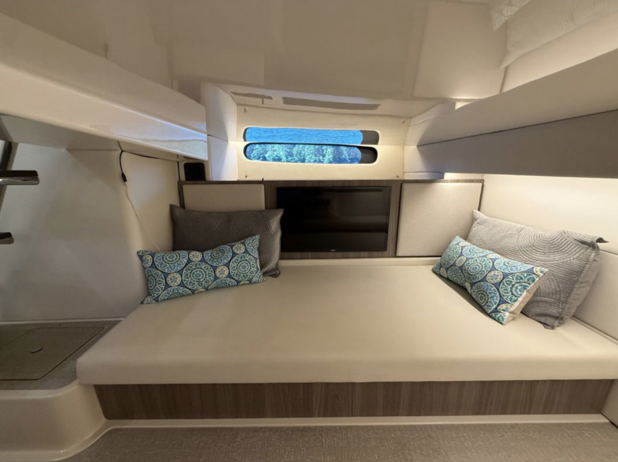 From relaxing on the electric swim platform to unwinding under the bow shade, every inch of this yacht is designed for enjoyment and functionality. Below deck, the beautifully appointed salon and island V-berth offer elegant overnight accommodations, complemented by a versatile mid-berth/media room that provides added flexibility.