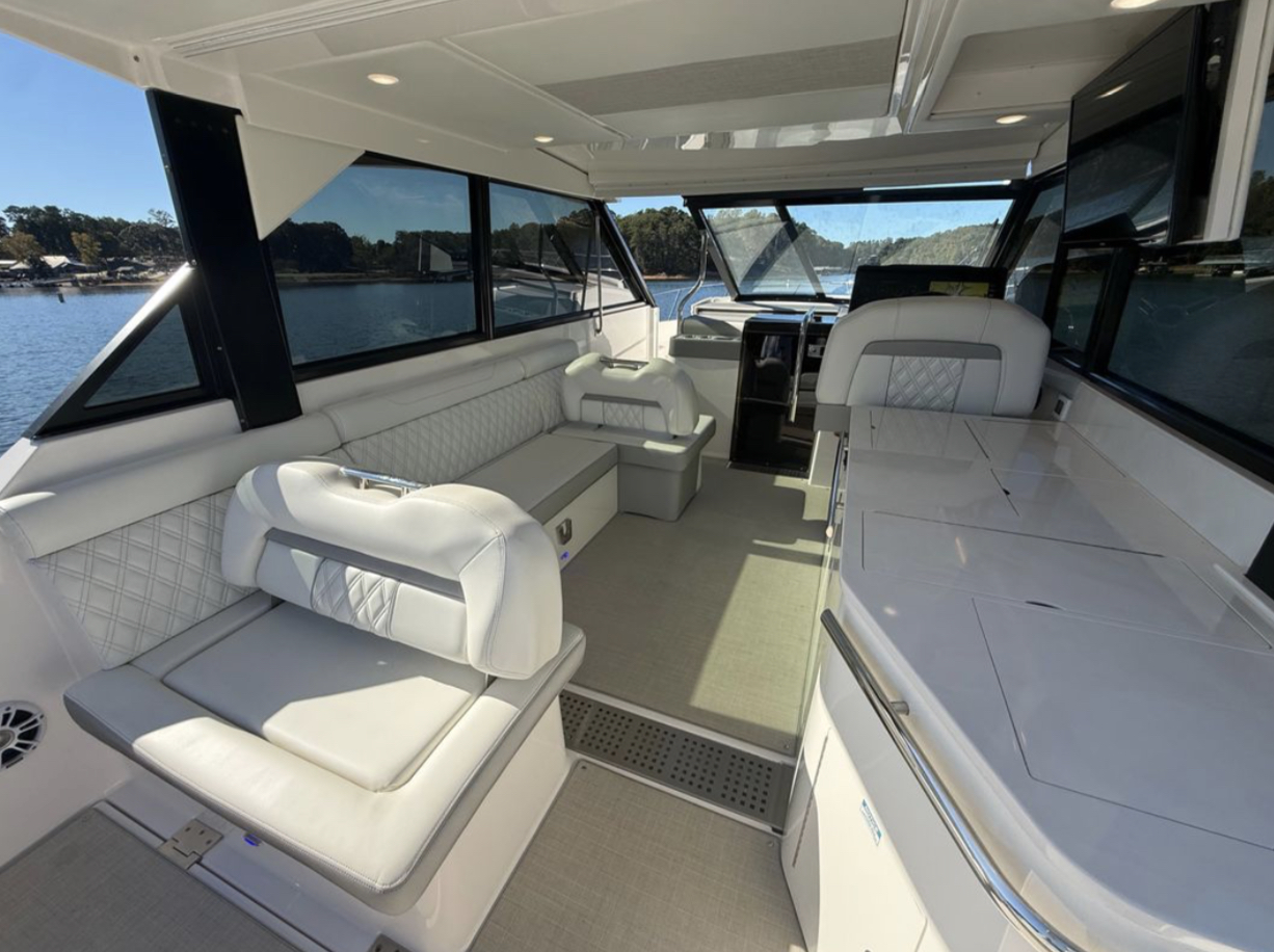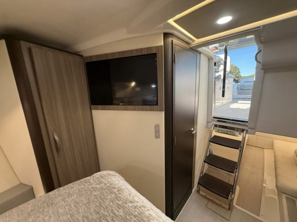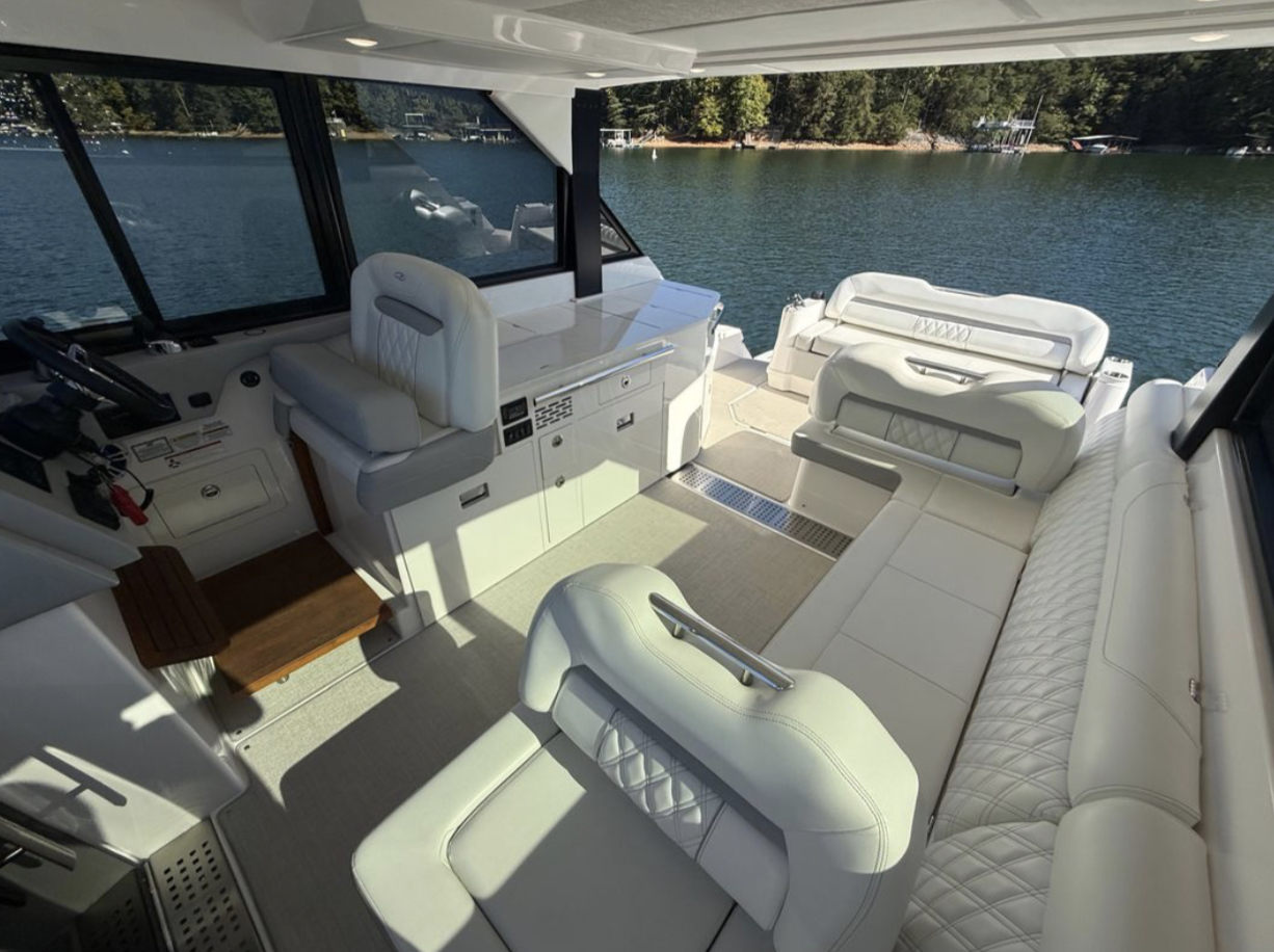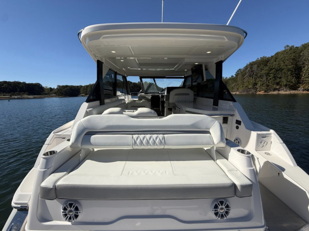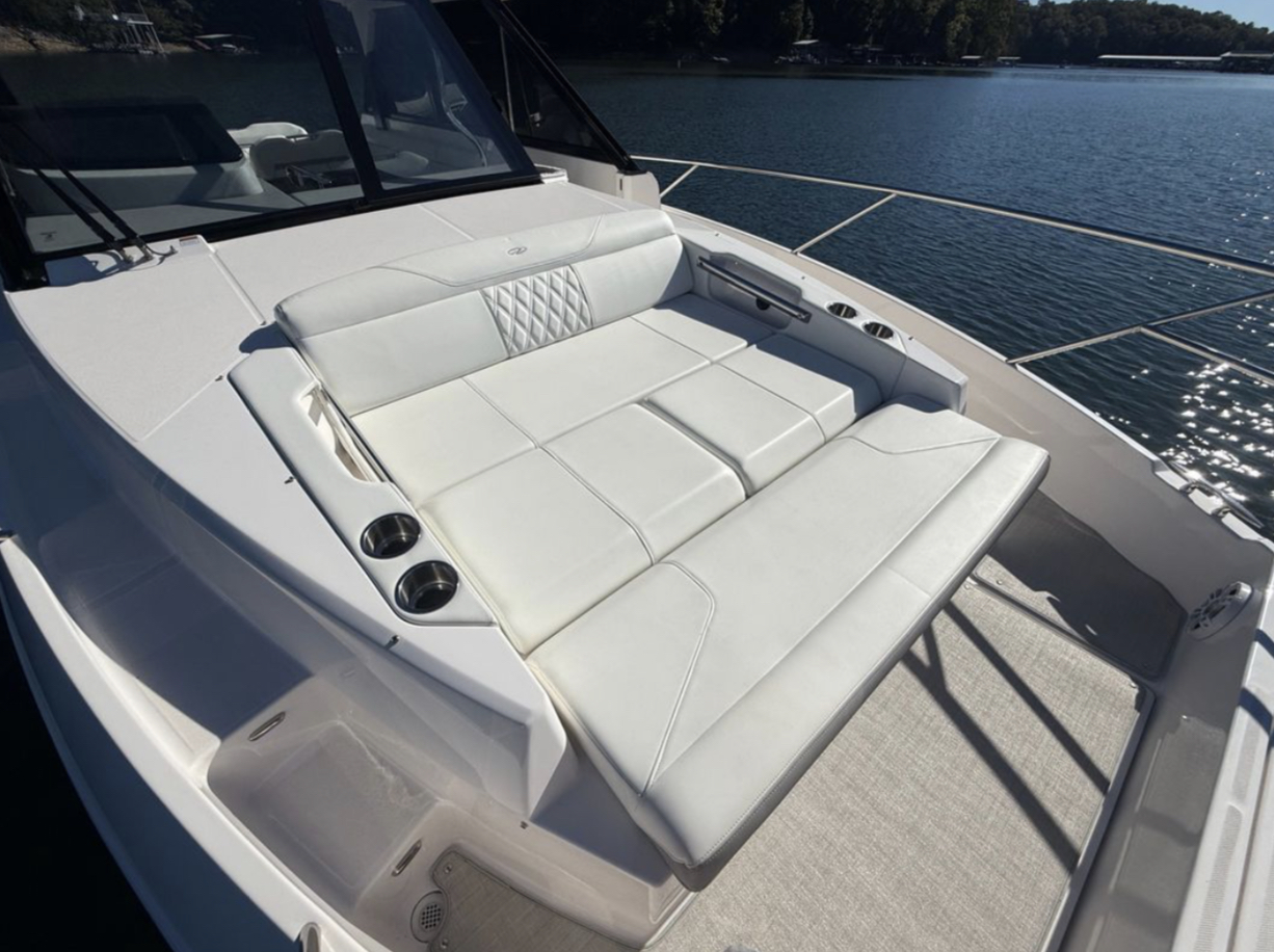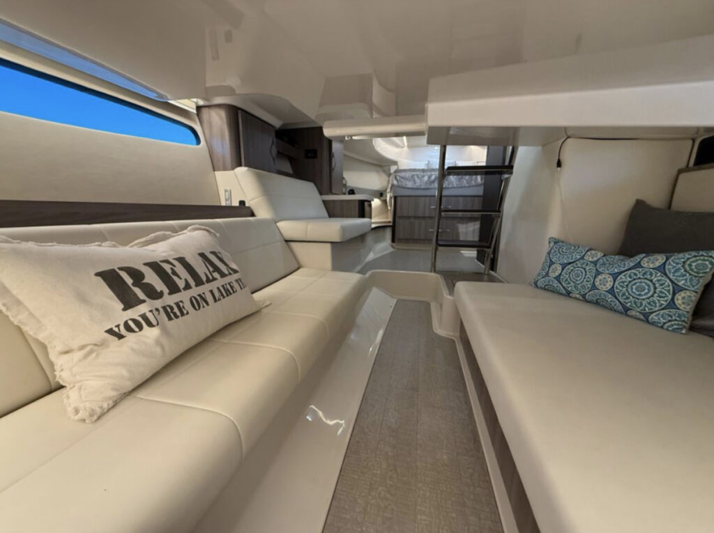 From relaxing on the electric swim platform to unwinding under the bow shade, every inch of this yacht is designed for enjoyment and functionality. Below deck, the beautifully appointed salon and island V-berth offer elegant overnight accommodations, complemented by a versatile mid-berth/media room that provides added flexibility.