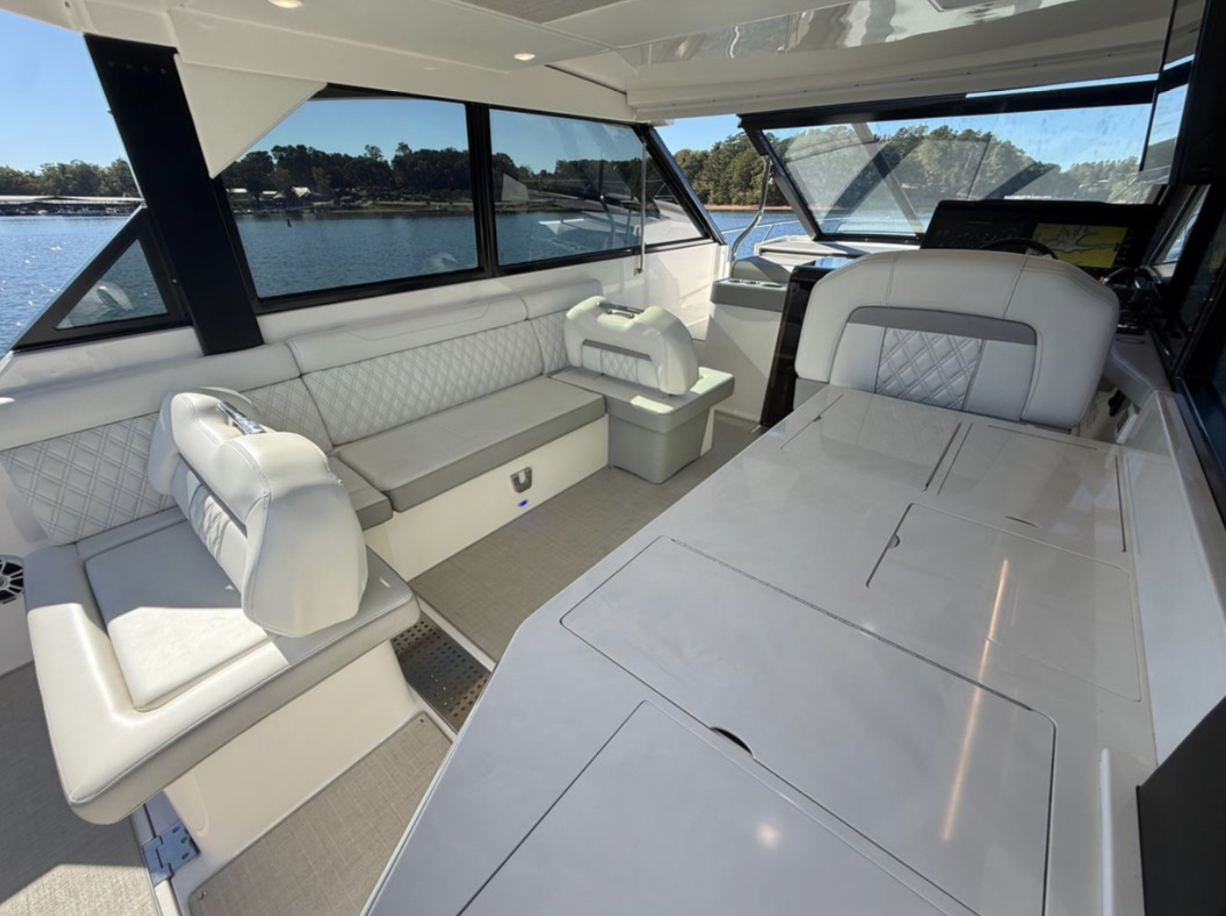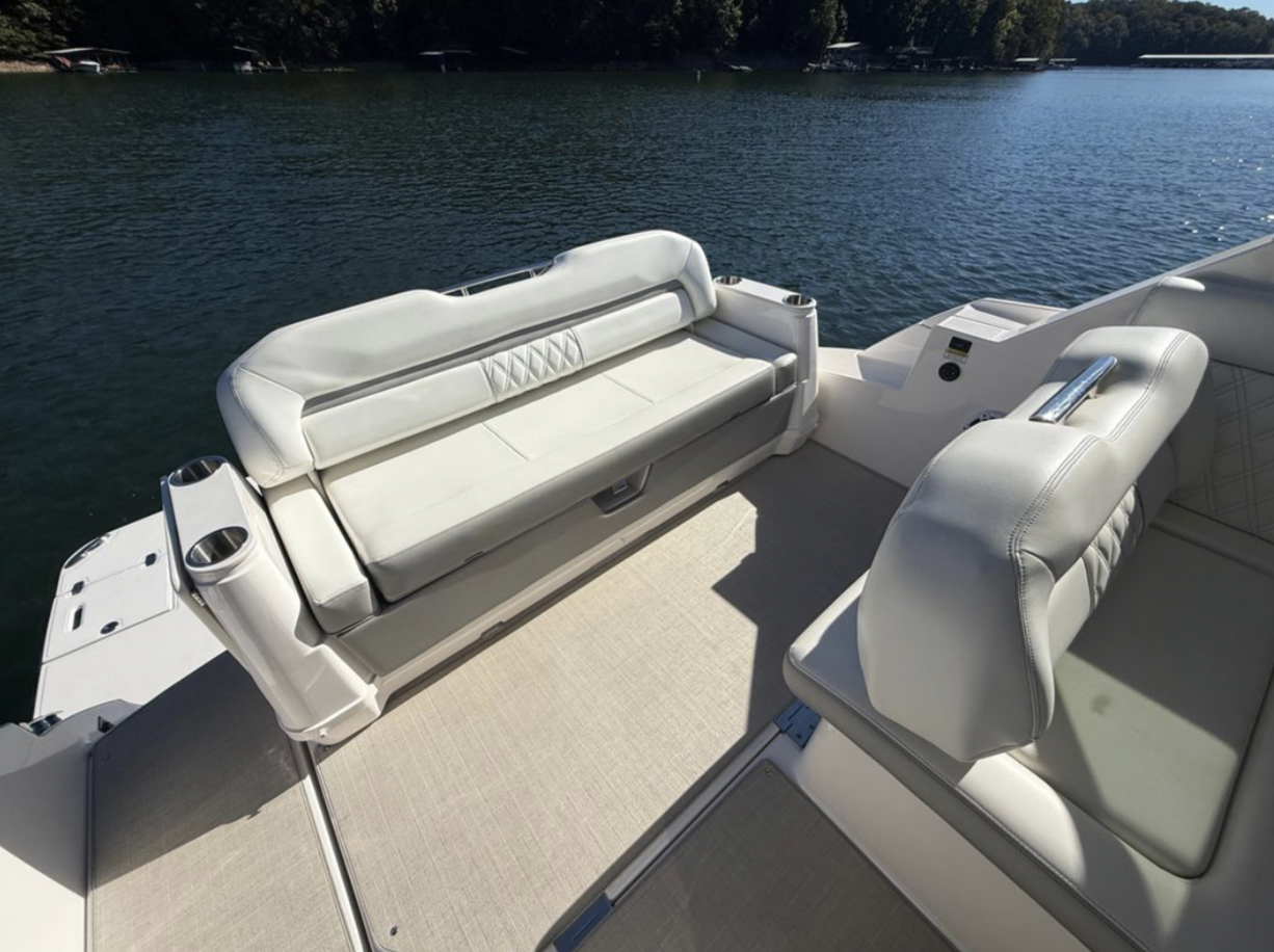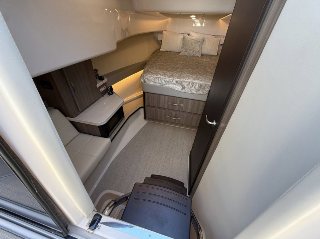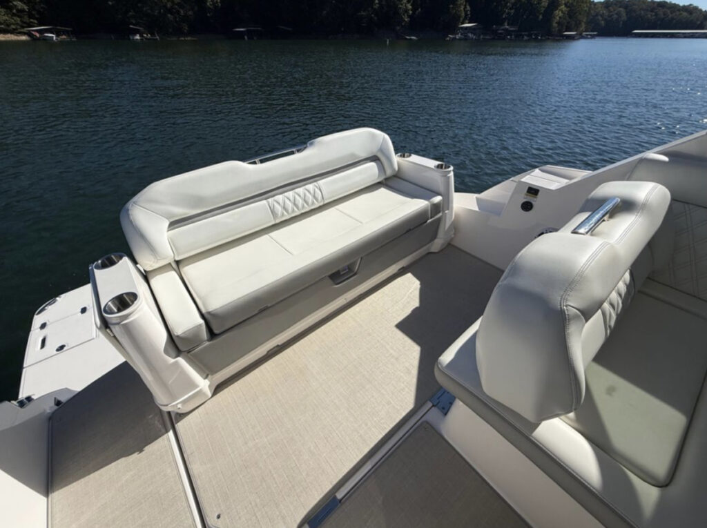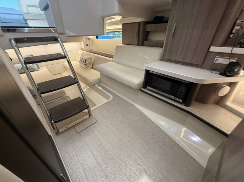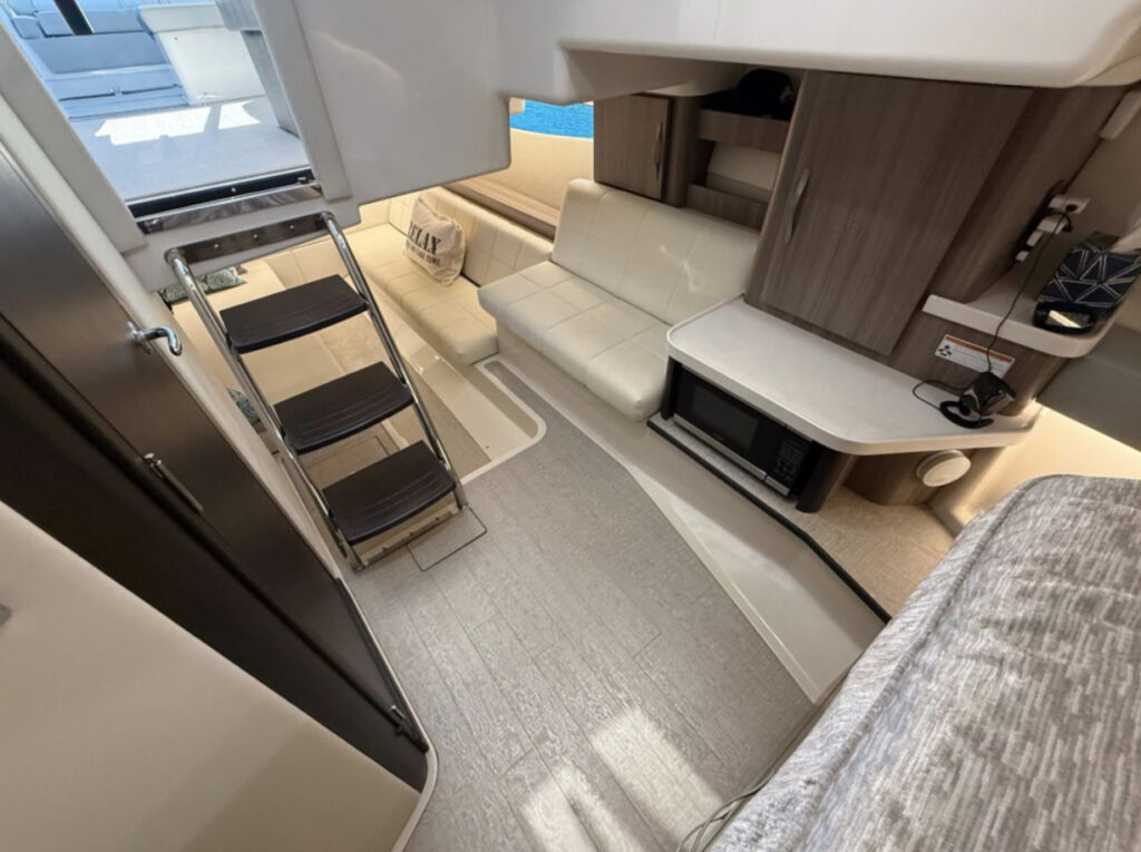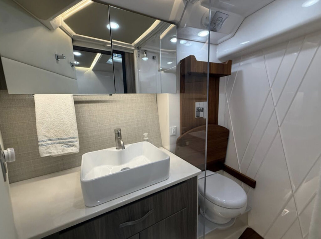 From relaxing on the electric swim platform to unwinding under the bow shade, every inch of this yacht is designed for enjoyment and functionality. Below deck, the beautifully appointed salon and island V-berth offer elegant overnight accommodations, complemented by a versatile mid-berth/media room that provides added flexibility.