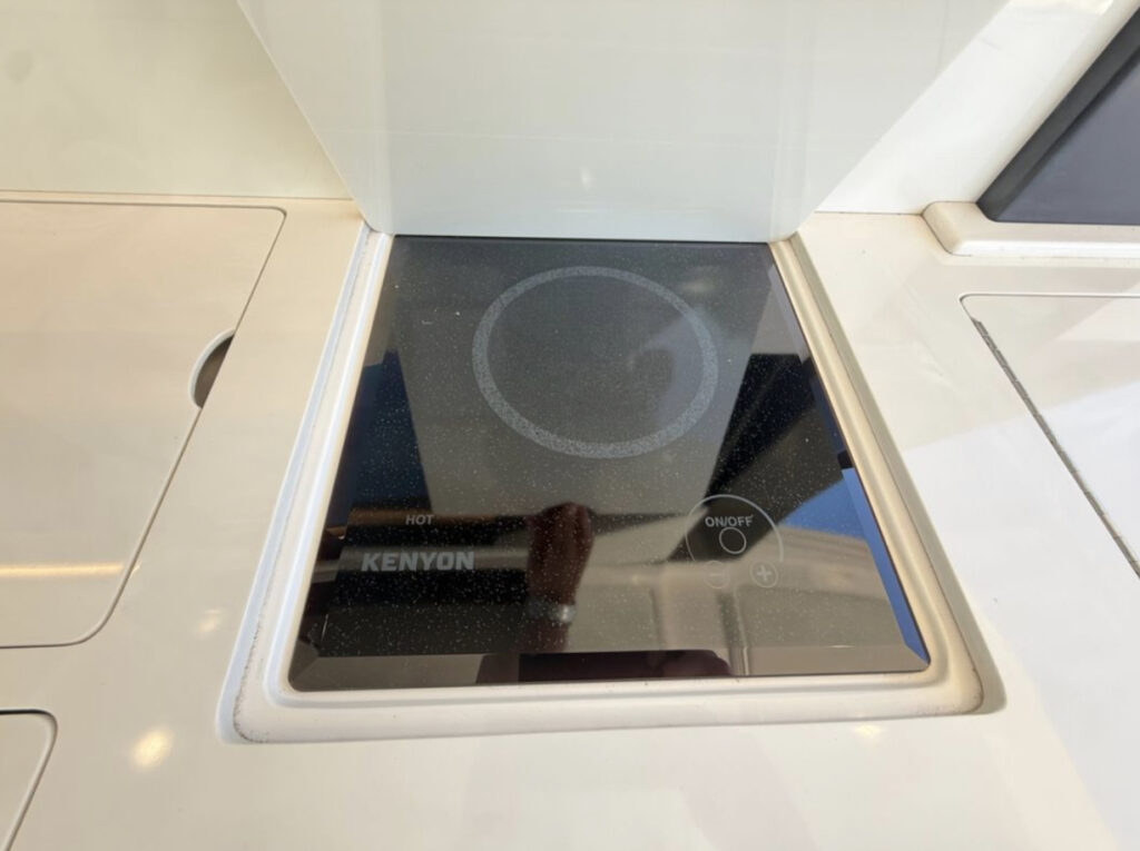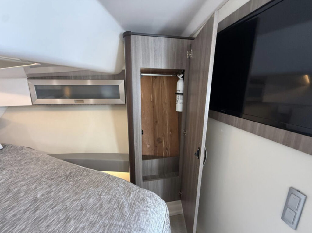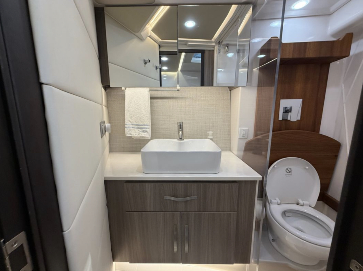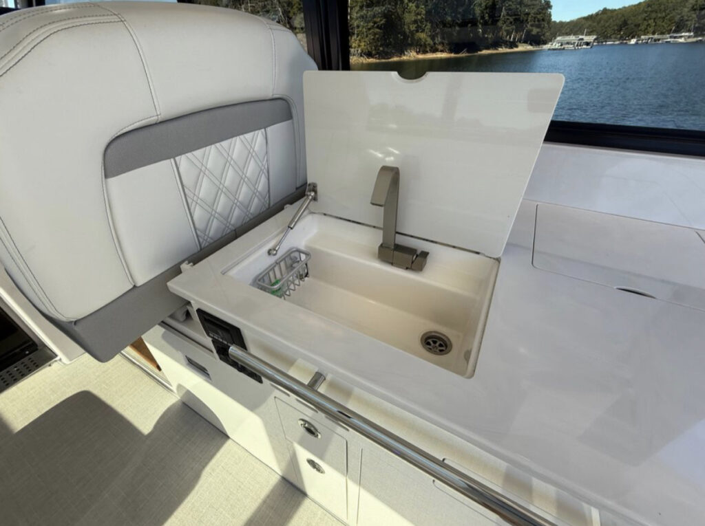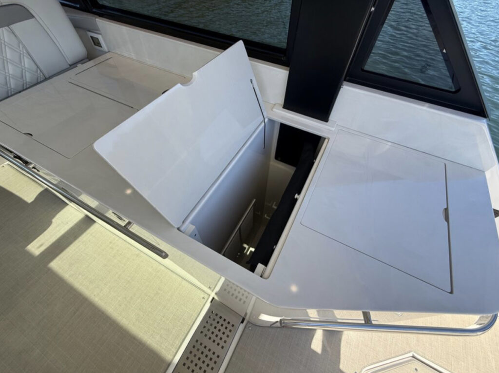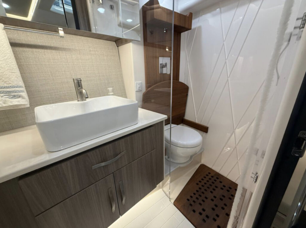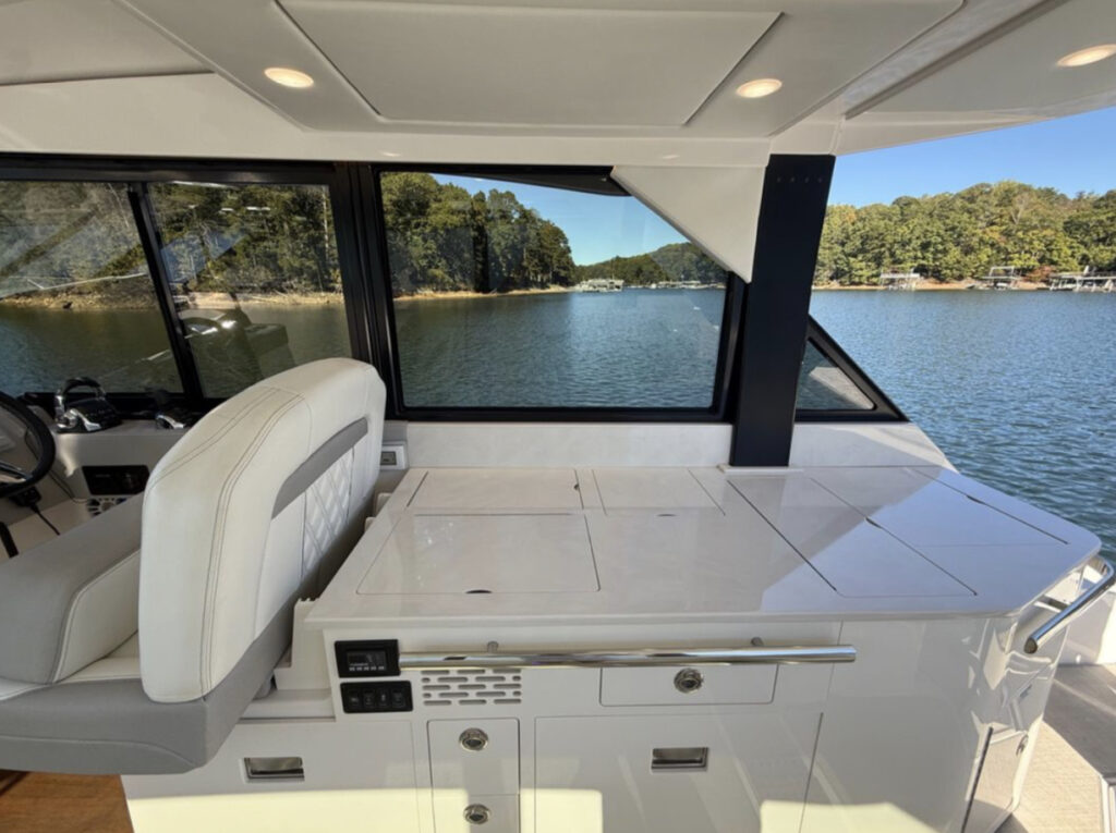 From relaxing on the electric swim platform to unwinding under the bow shade, every inch of this yacht is designed for enjoyment and functionality. Below deck, the beautifully appointed salon and island V-berth offer elegant overnight accommodations, complemented by a versatile mid-berth/media room that provides added flexibility.