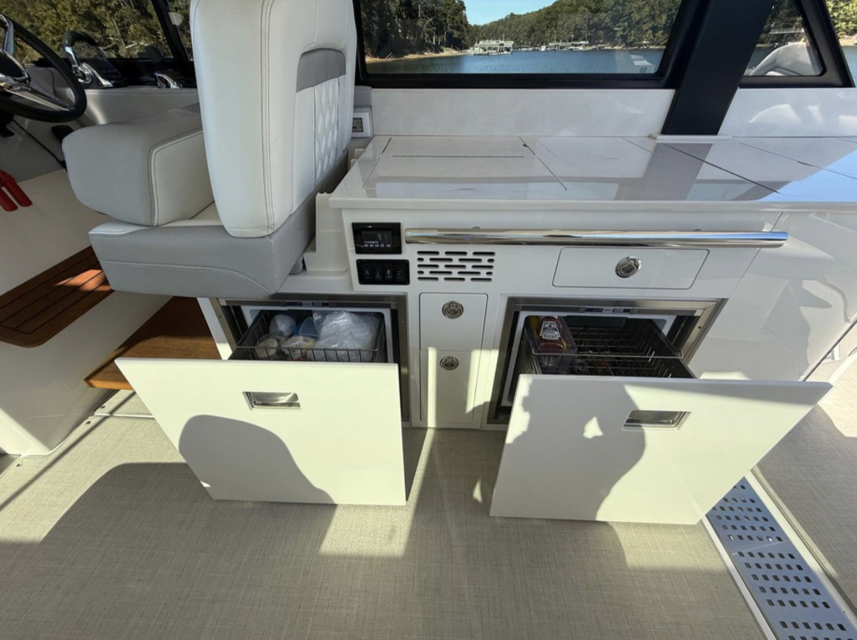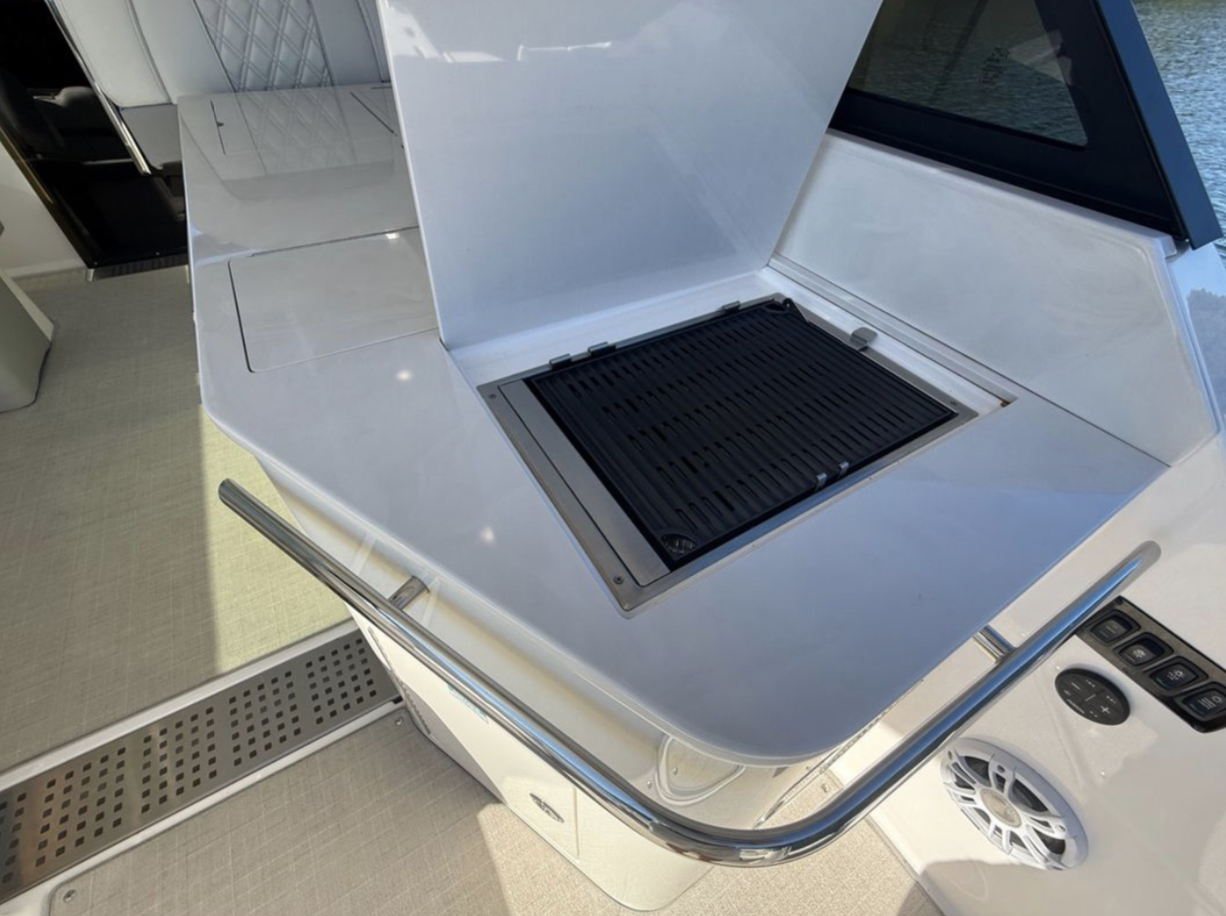 The 36 Grand Coupe offers the perfect balance between a luxurious day cruiser and a comfortable overnight yacht. Its expansive cockpit layout creates one large social zone—ideal for entertaining family and friends in total comfort. A stunning and fully equipped summer kitchen provides all the amenities you’d expect from a luxury home, making on-the-water entertaining effortless.