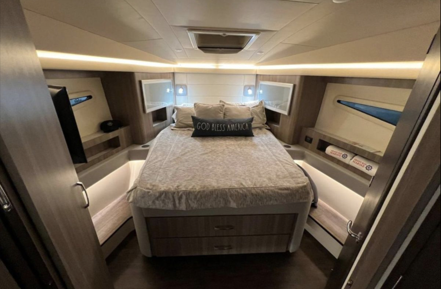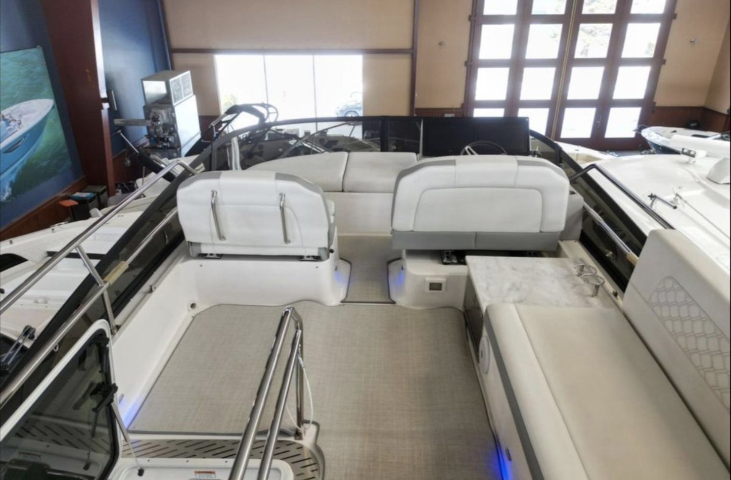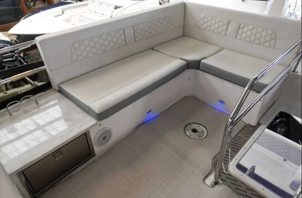 This custom-built 42 Fly stands apart with thoughtful upgrades throughout. Features like an upgraded air chiller system, additional custom wood trim, and Volvo Dock Assist elevate both comfort and ease of operation. Combined with IPS propulsion, joystick control, and Dock Assist, docking and maneuvering are smooth and stress-free in any conditions.