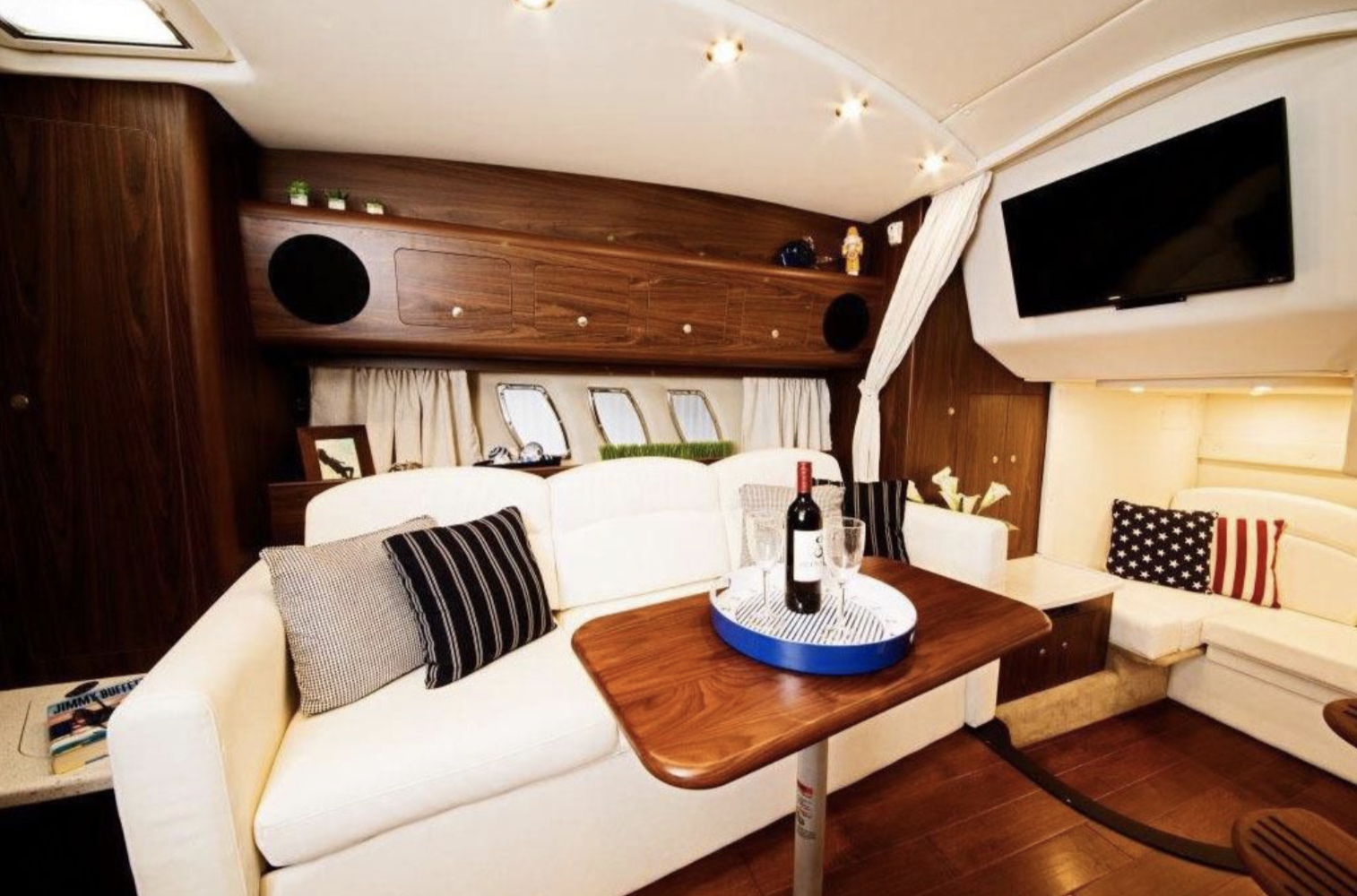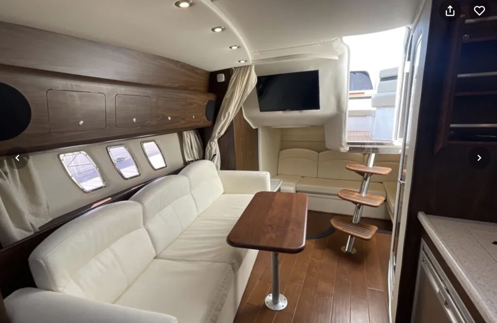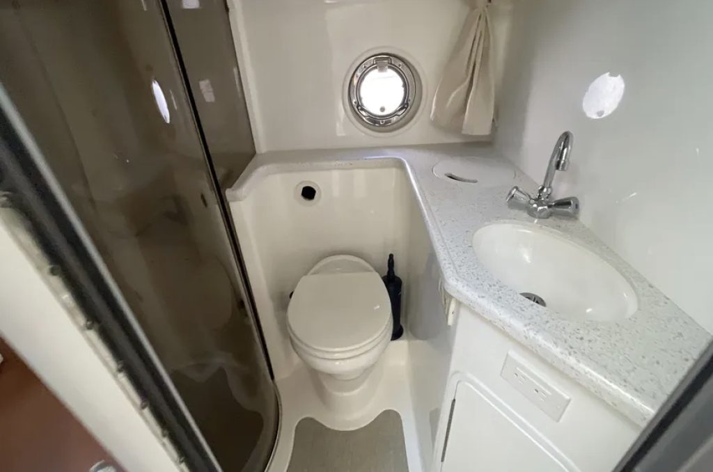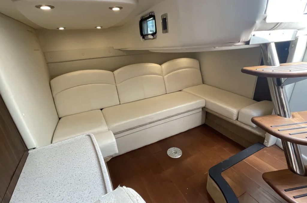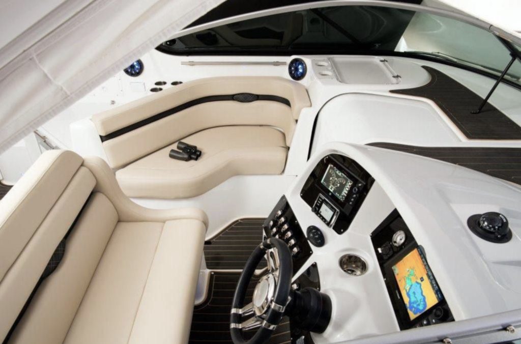 Powered for comfort and convenience, this Rinker 370 is equipped with a generator (approx. 200 hours) and joystick control, making docking and extended cruising effortless. Whether you’re running the river, spending weekends at the dock, or cruising the Great Lakes, this boat checks all the right boxes.