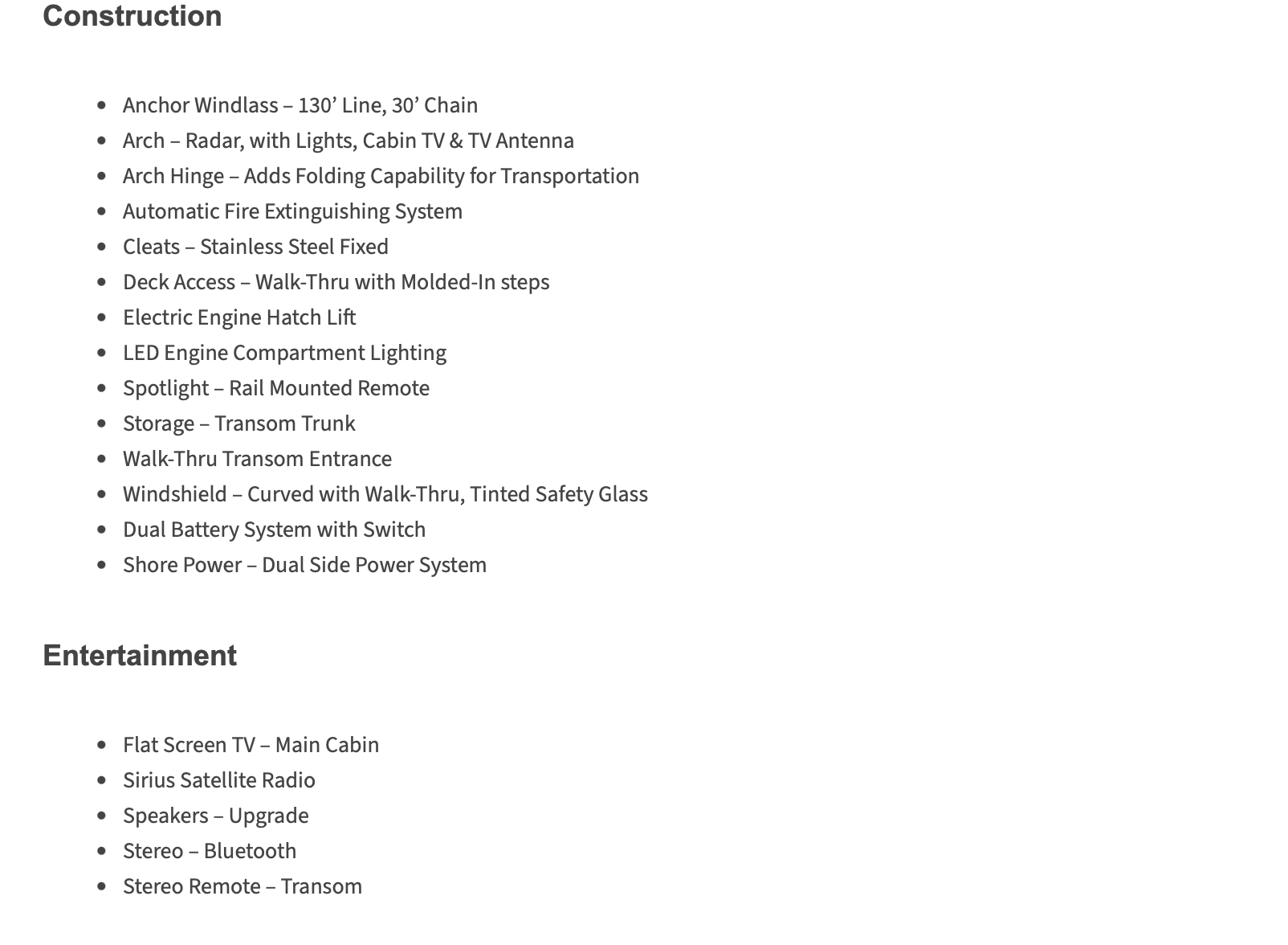 Le bateau qui est présenté sur cette page, l’est uniquement à titre d'information et n'est pas nécessairement toujours disponible à la vente et/ou à la location. Ce bateau est peut-être offert sous réserve, il faut vérifier sa disponibilité. Ce document ou cette annonce n'est pas contractuel. Les informations sur les bateaux affichées dans les résultats ci-dessus sont présentées en toute bonne foi et, bien qu'elles soient considérées comme correctes, elles ne sont pas garanties. Ita Yachts Canada et/ou ProprioBateau ne garantit pas et n'assume aucune responsabilité légale ou responsabilité pour l'exactitude, l'exhaustivité ou l'utilité des informations et/ou des images affichées, car elles peuvent ne pas être à jour ou encore êtres des images d'un bateau comparable. Toutes les informations sur les bateaux peuvent être modifiées sans préavis et sont sans garantie. Ce bateau est peut-être offert par un autre courtier ouvert au co-courtage (co-brokerage).