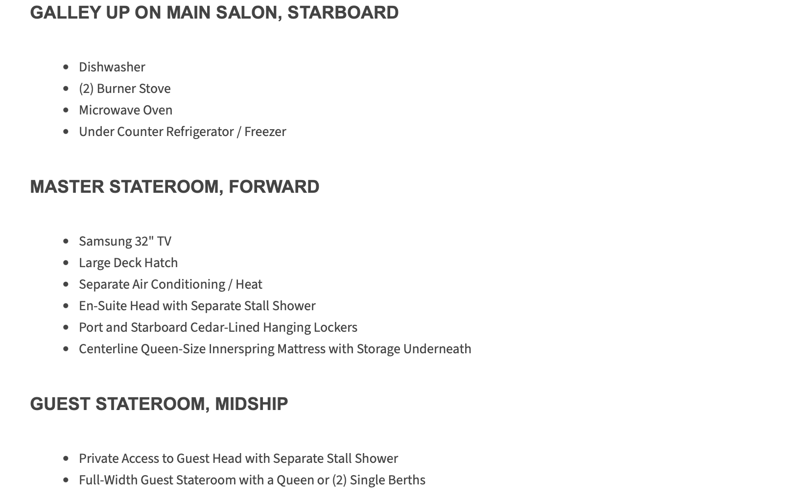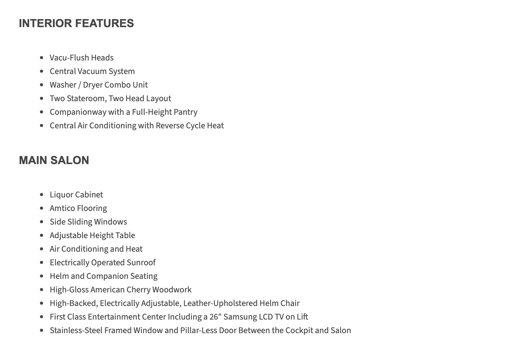 N.B. Vous pouvez acquérir ce bateau comme tout autre yacht sans avoir à payer de taxe Américaine ni Canadienne si le bateau navigue toujours hors du Canada avec une immatriculation Canadienne (Le bateau doit appartenir à un Canadien)