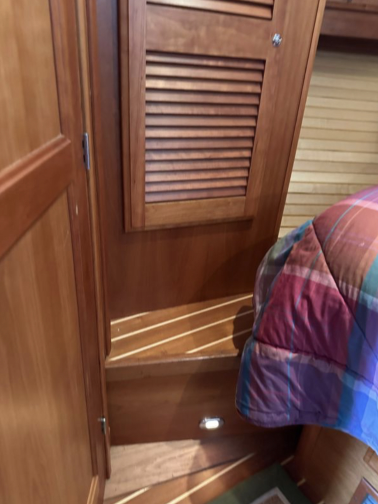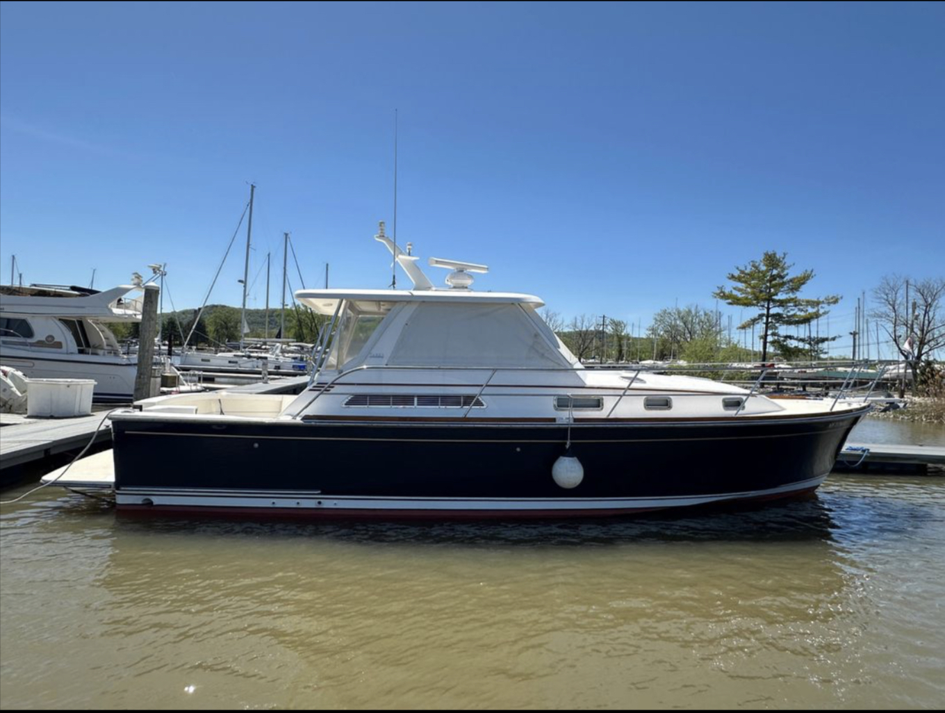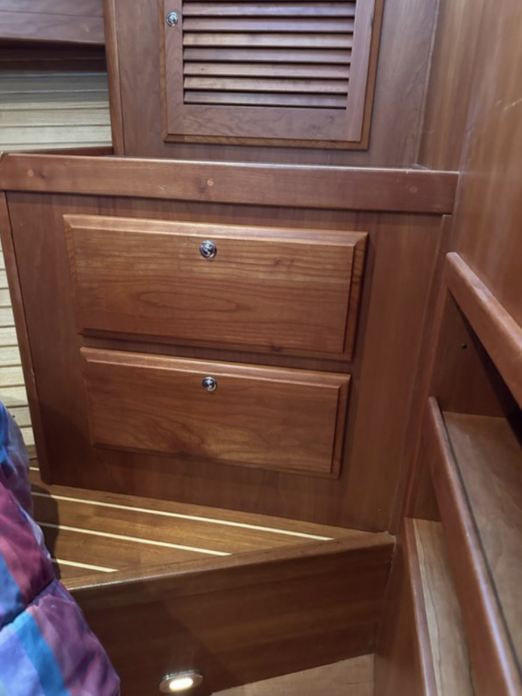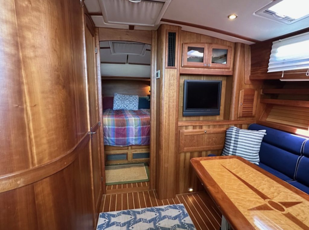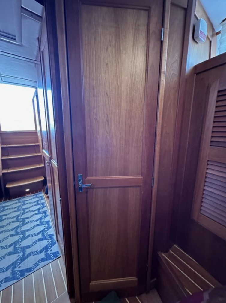 Bow and stern thrusters make her a breeze for docking. And she brings the simplicity of direct drive. (Not everyone wants pod drives.)She is designed and built in the Maine tradition for comfort, whether underway or at rest.