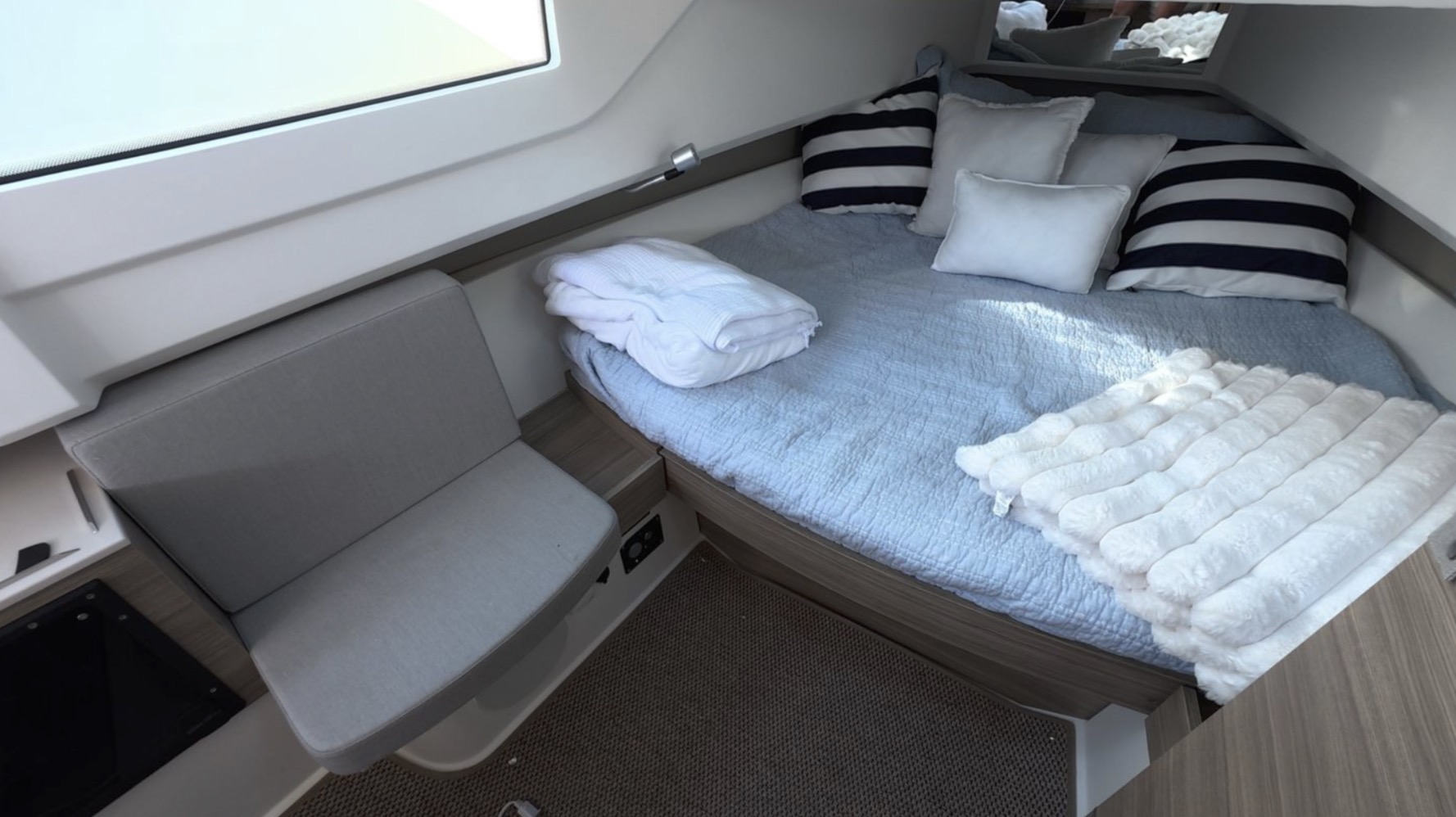N.B. Vous pouvez acquérir ce bateau comme tout autre yacht sans avoir à payer de taxe Américaine ni Canadienne si le bateau navigue toujours hors du Canada avec une immatriculation Canadienne (Le bateau doit appartenir à un Canadien)
