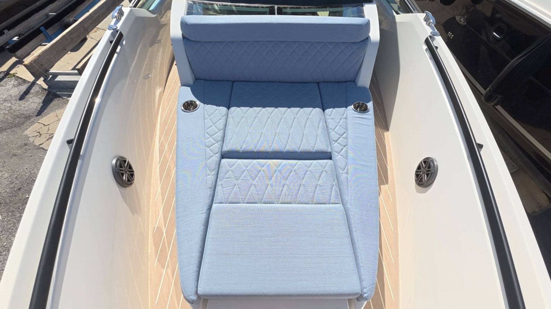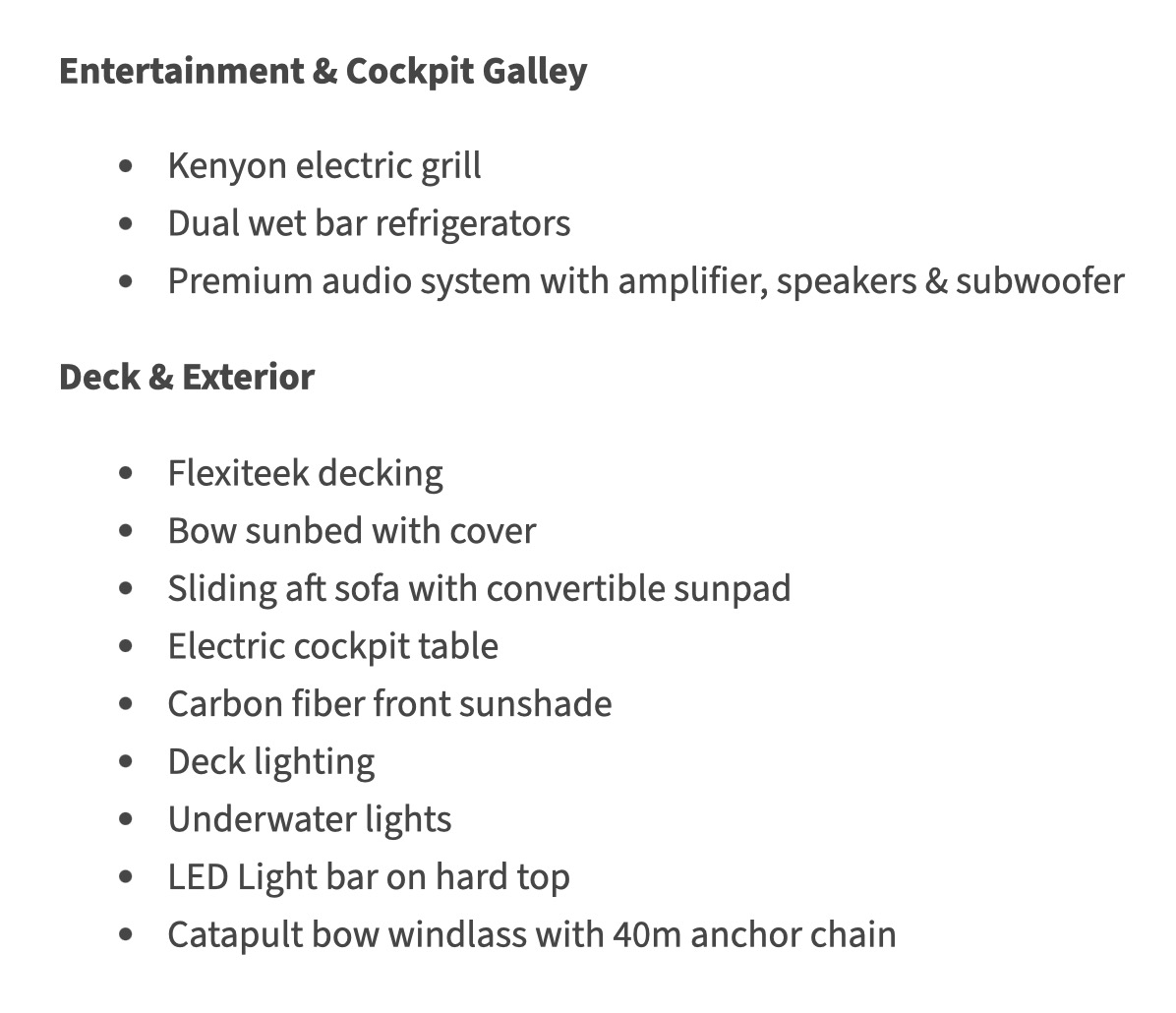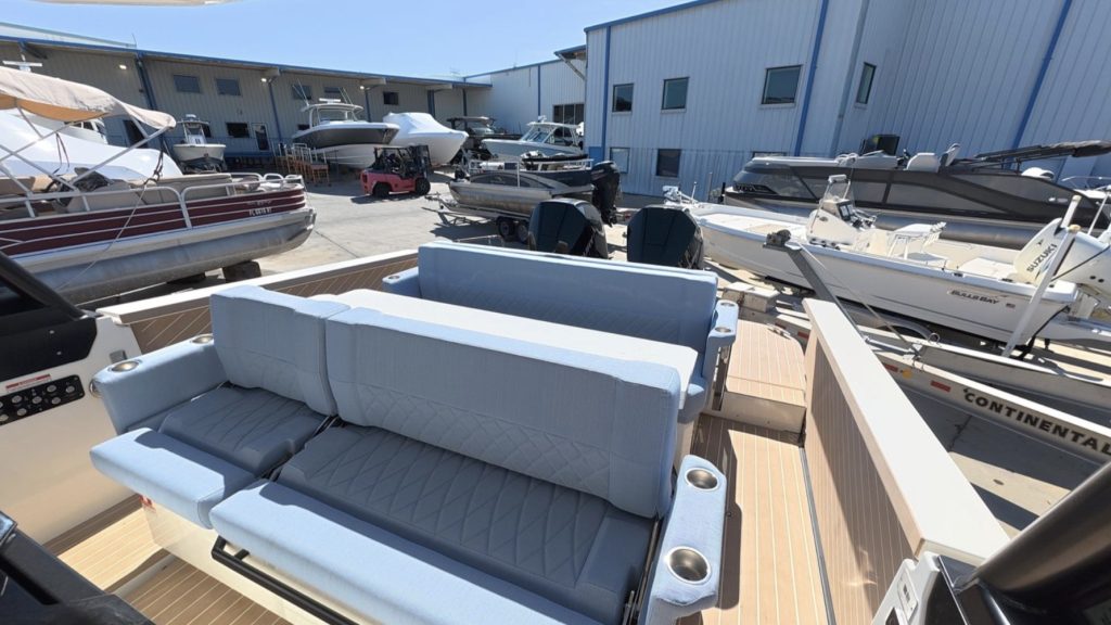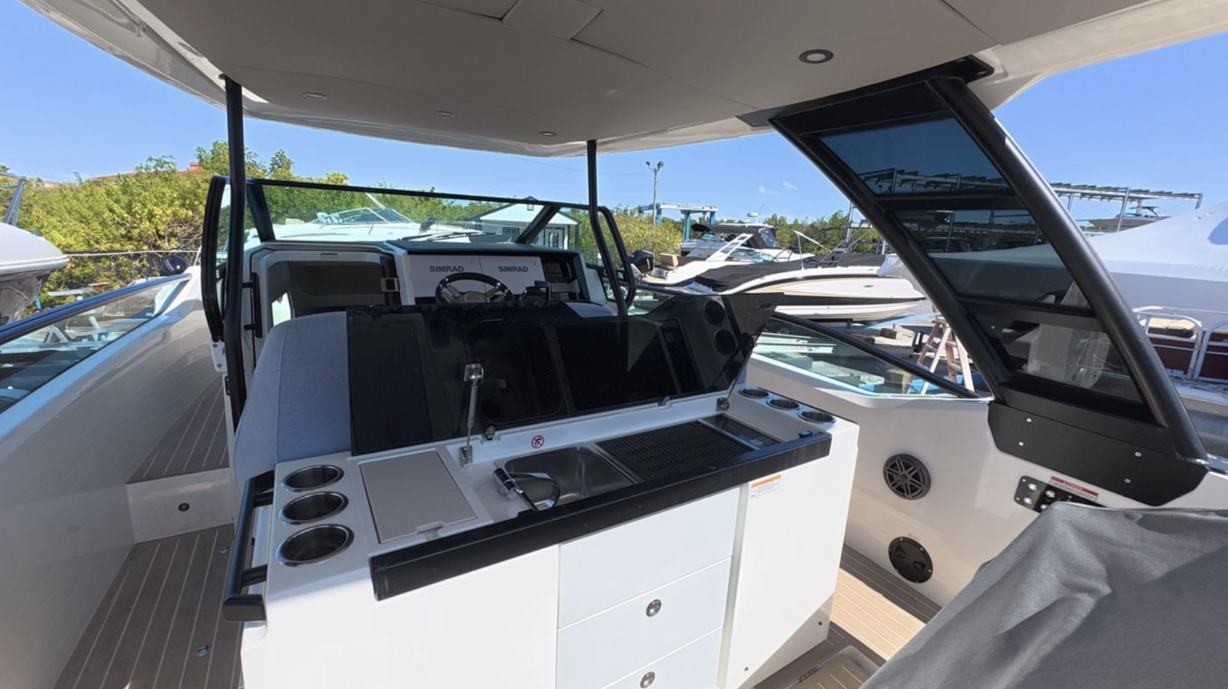 This fully equipped SX320 GTO includes dual Simrad NSS12 displays, lithium battery system, solar charging, air conditioning, electric grill, premium audio, dual refrigerators, and Flexiteek decking, making it one of the best-equipped models available.