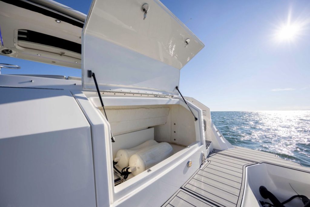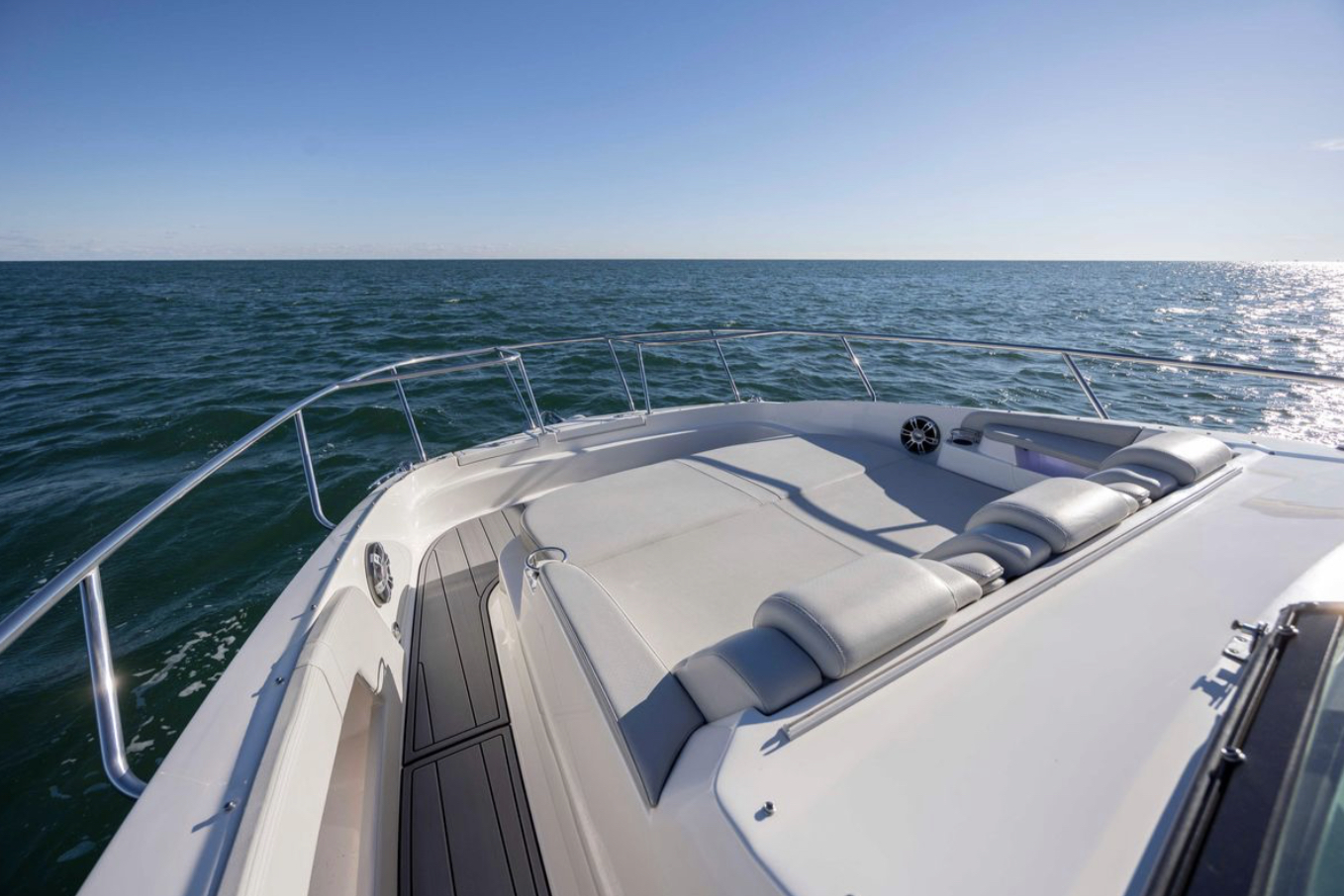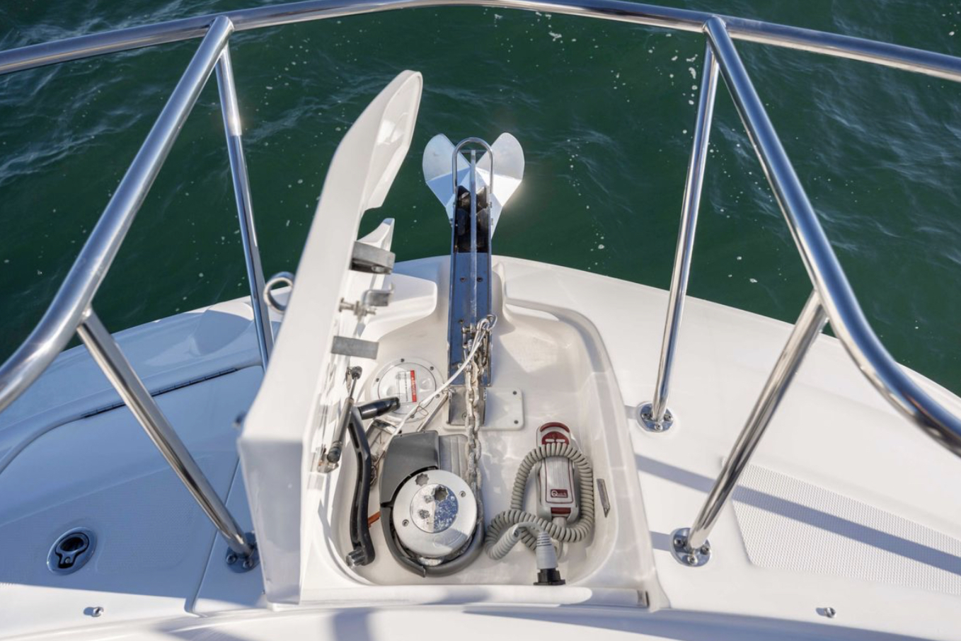 Powered by Triple Mercury 250s with 350 hours, and supported by a Westerbeke 7.5kw generator with Low hours, she offers reliable performance, smooth handling, and comfort both underway and at anchor. The Joystick Piloting system with Skyhook makes docking and maneuvering effortless.