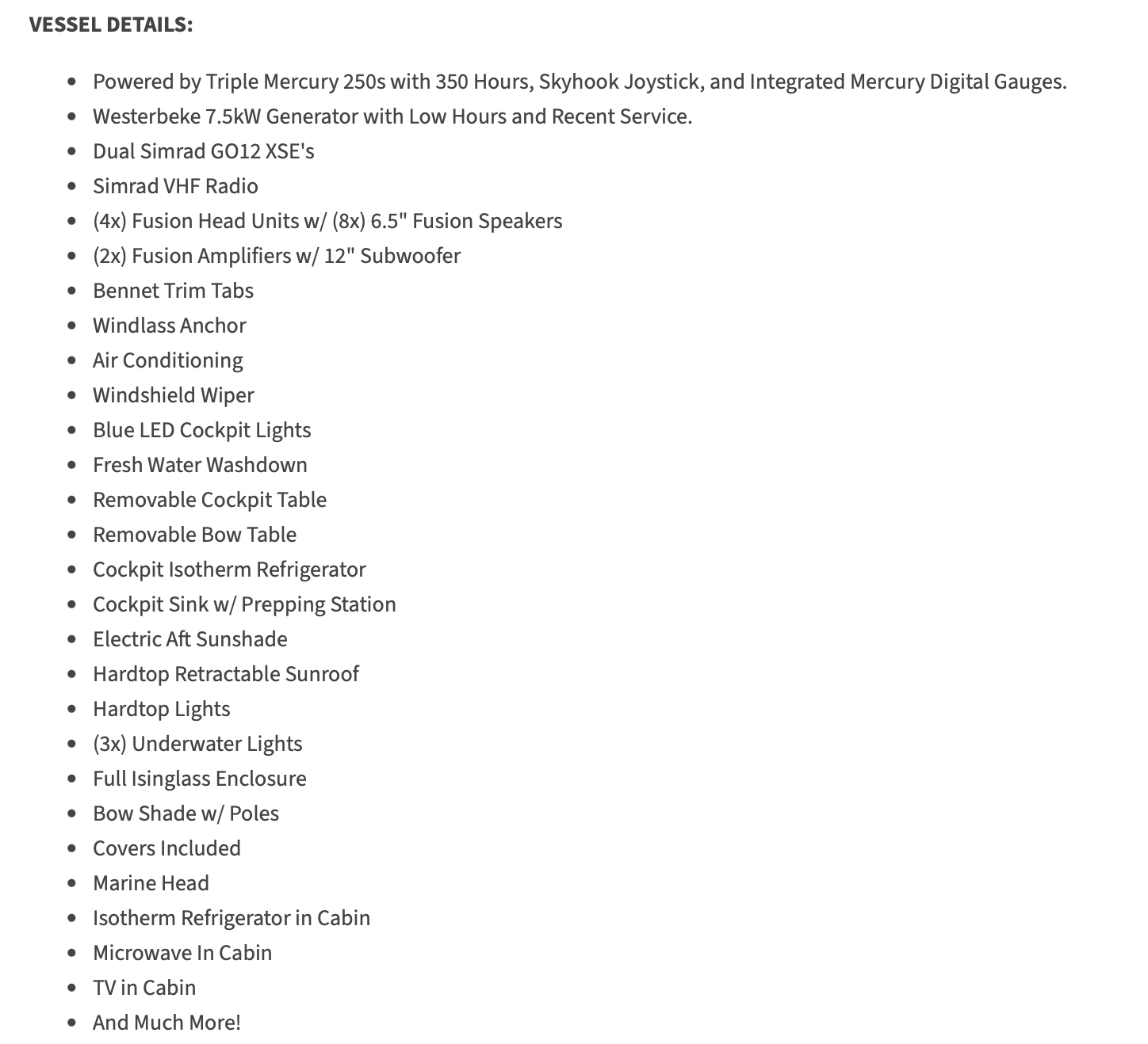 - Modèle moteur: 3 x Verado 250 hp Joystick
