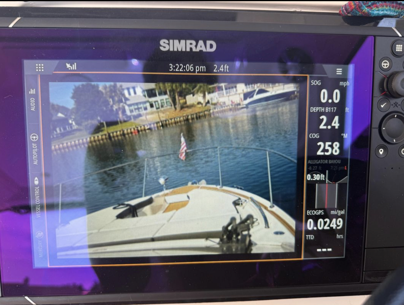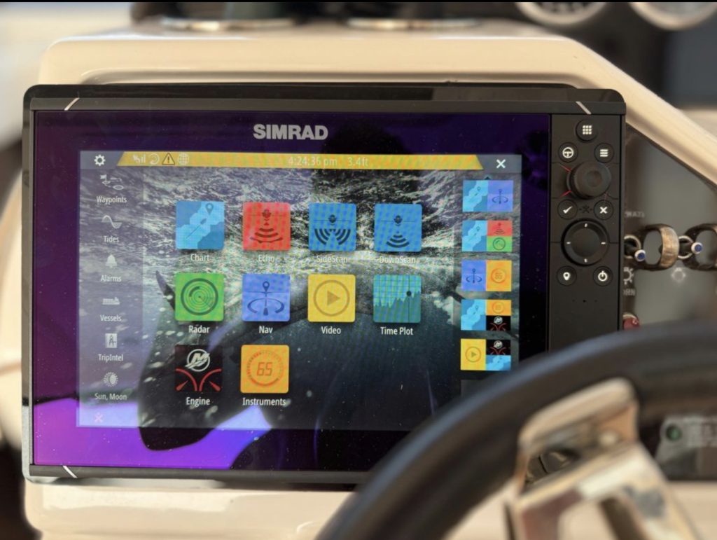 • Intuitive digital helm station with a 9″ Simrad® touchscreen, Mercury VesselView® Mobile, and full digital dash integration, monitor performance right from your smartphone via Bluetooth®.